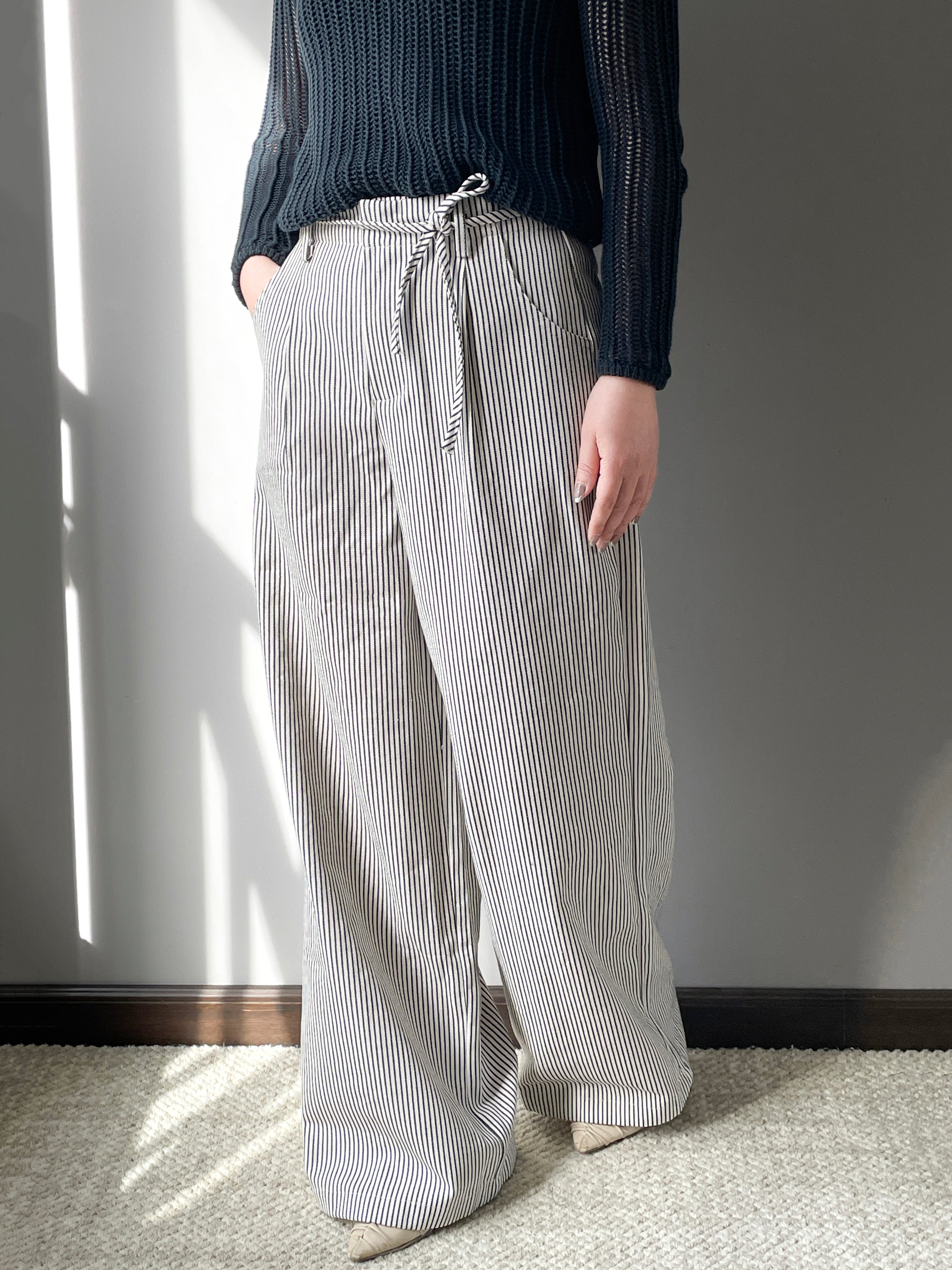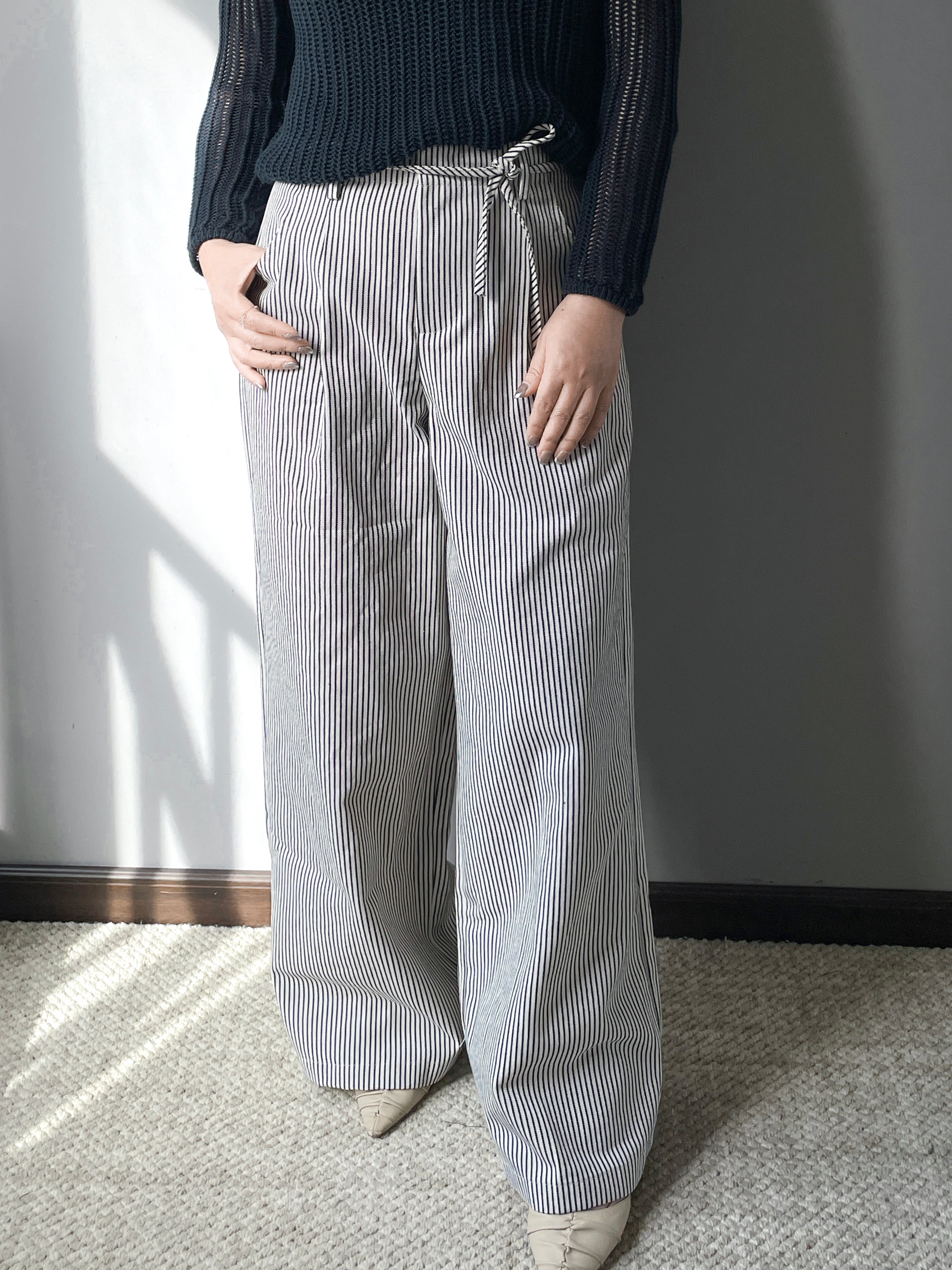 紐ベルトストライプワイドパンツ