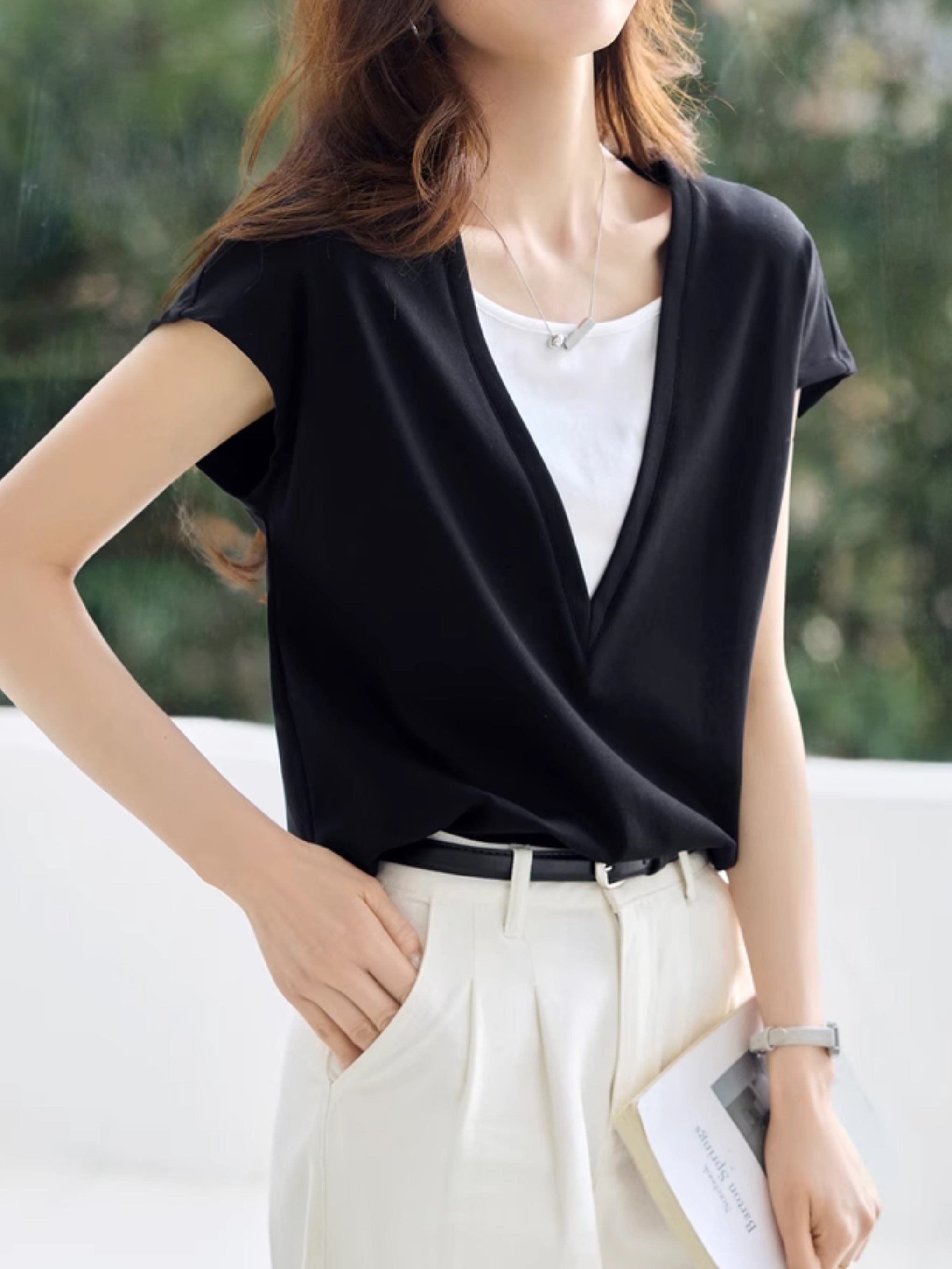 ディープVネック配色レイヤードTシャツ