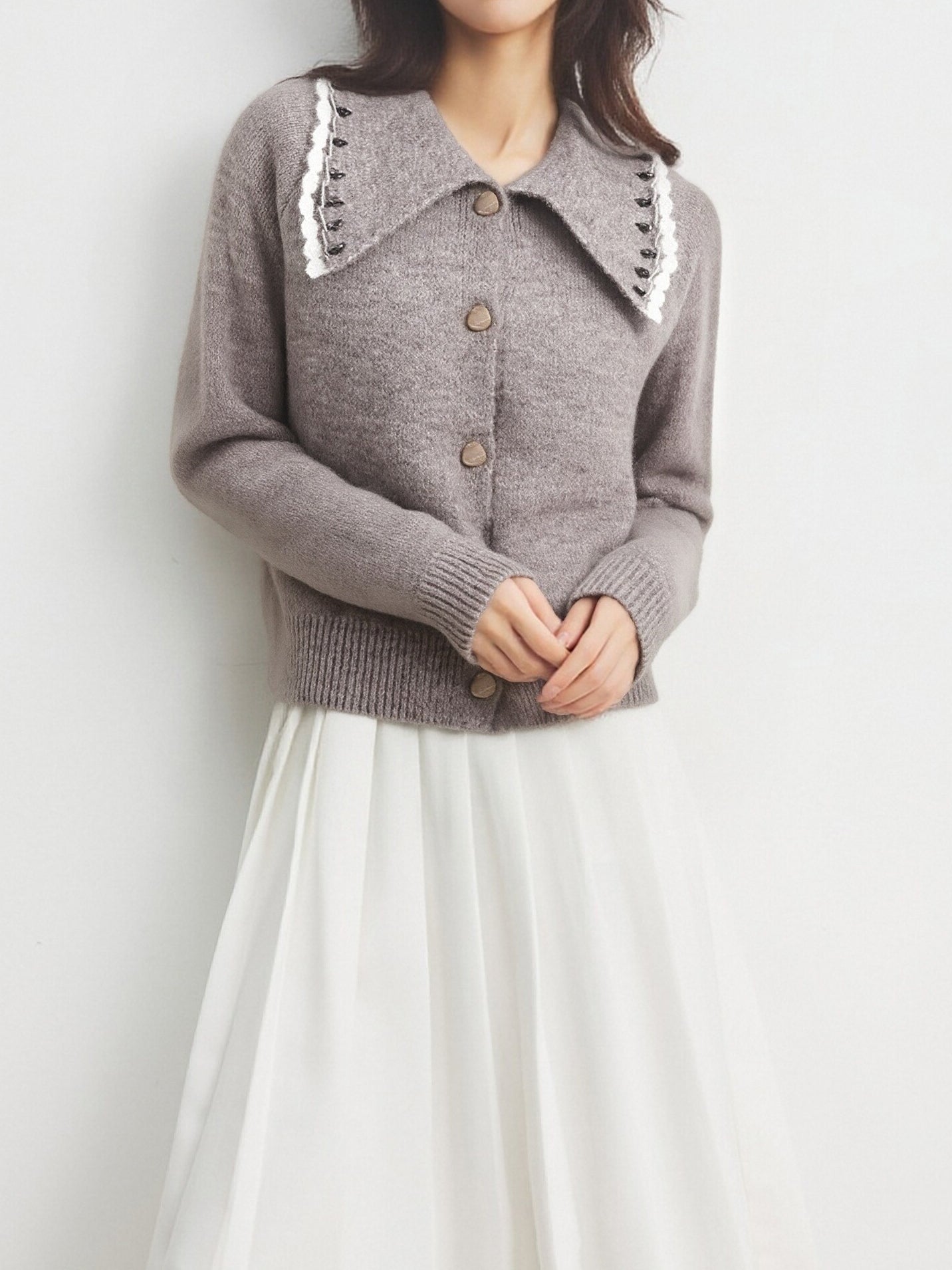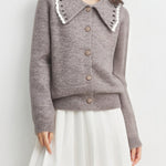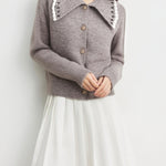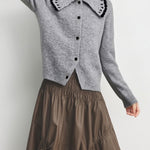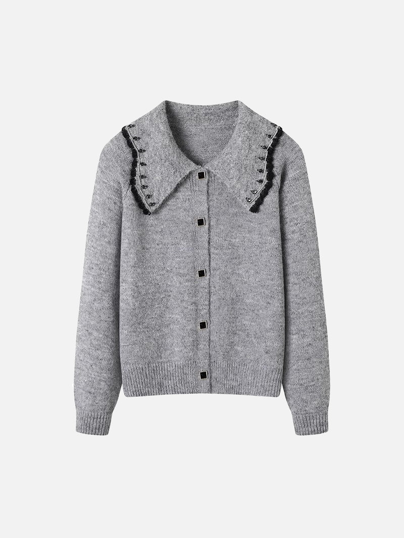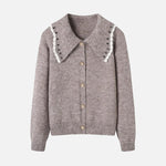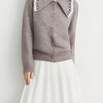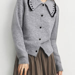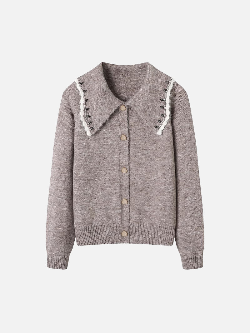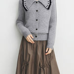 ウェーブカラーデザインがトレンドライクのニットカーディガン!