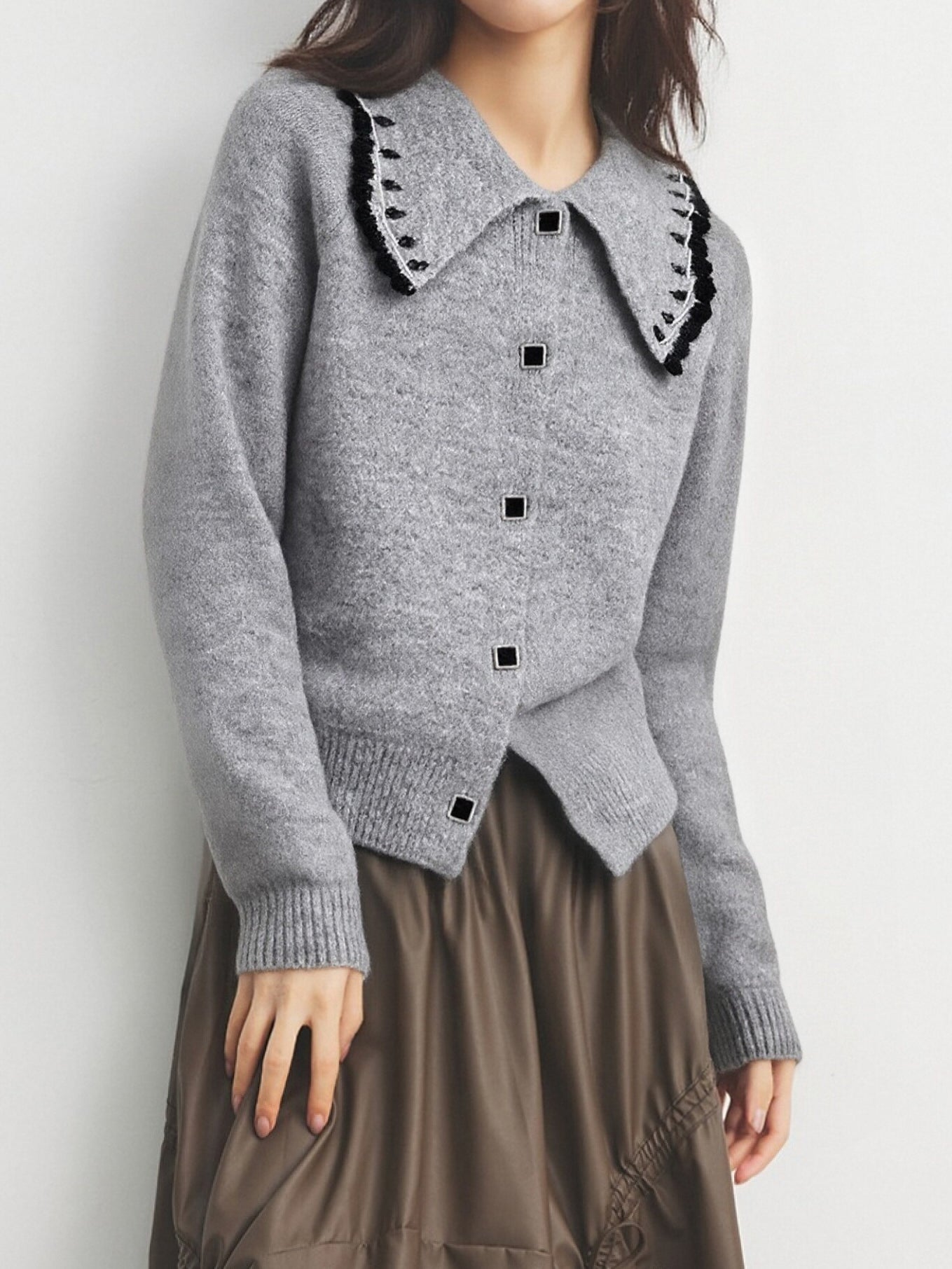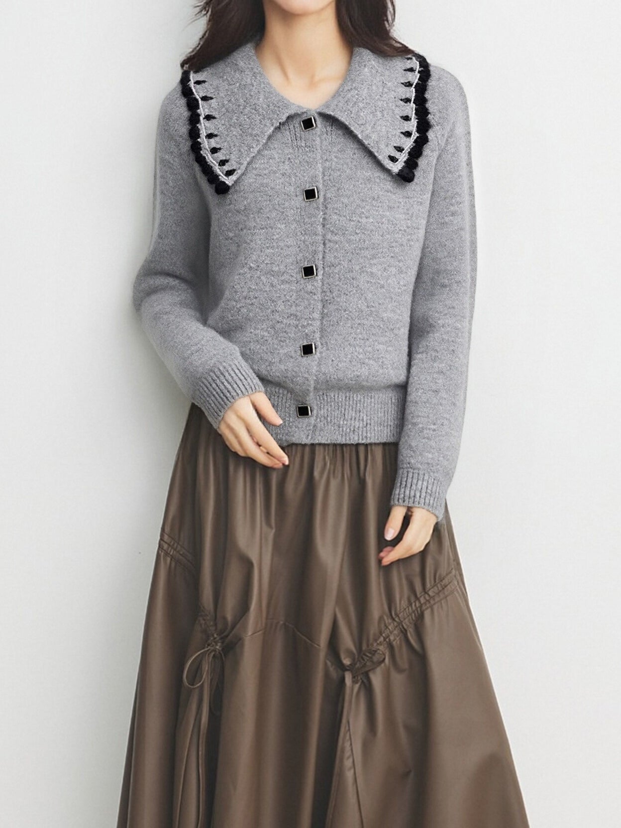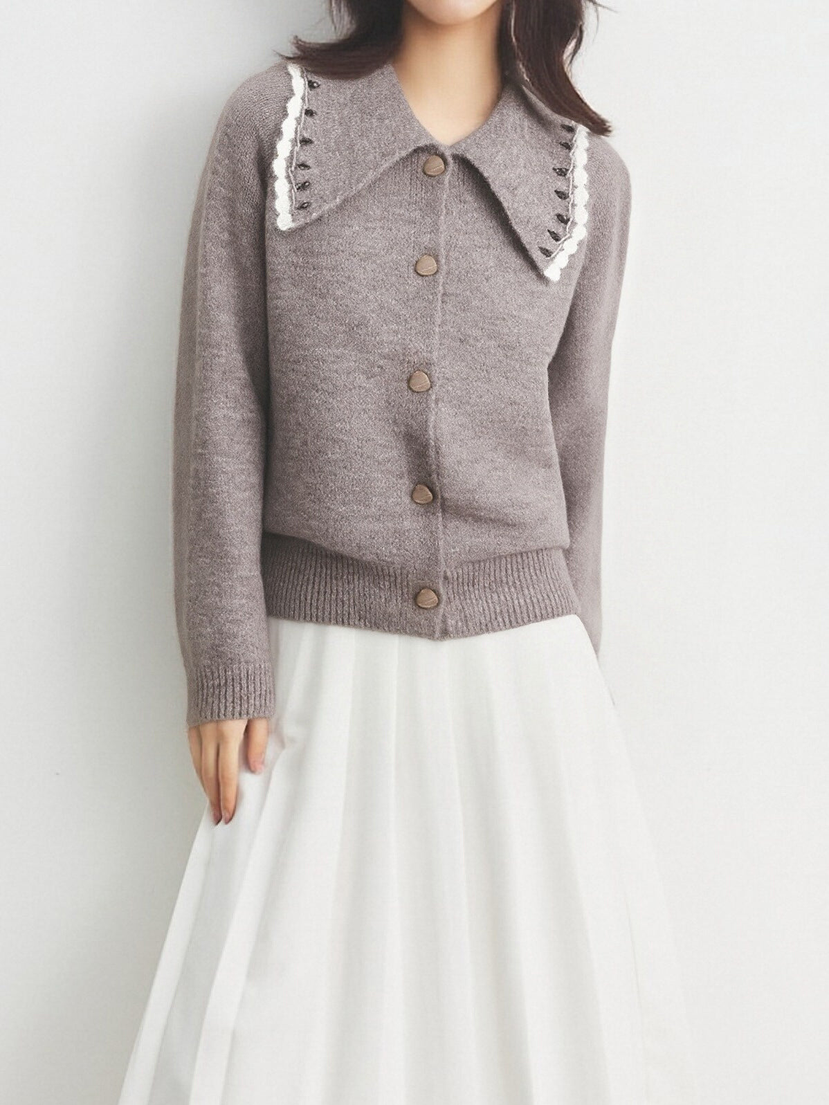 ウェーブカラーデザインがトレンドライクのニットカーディガン!