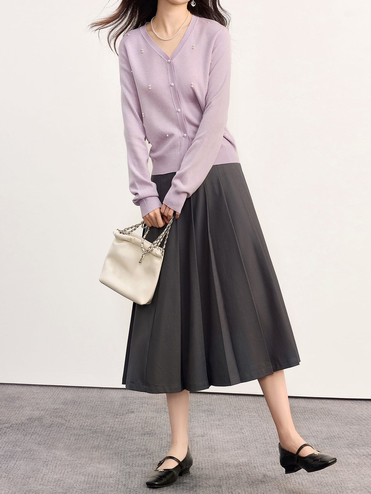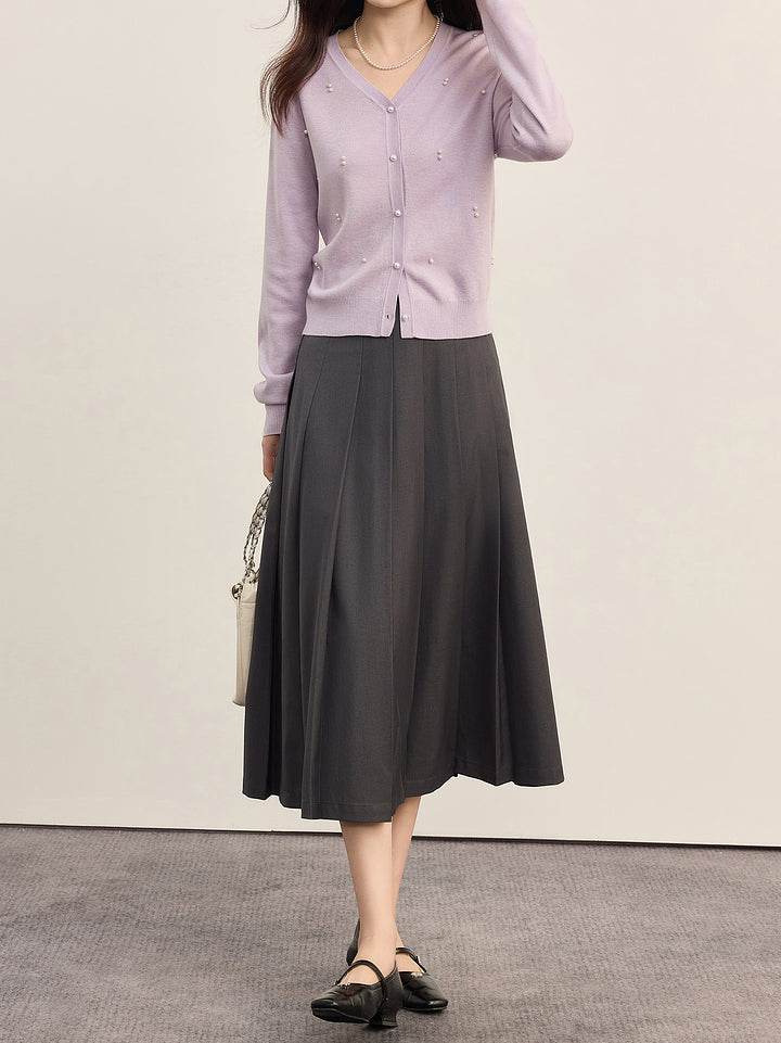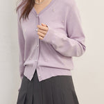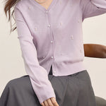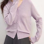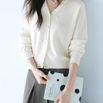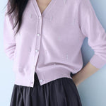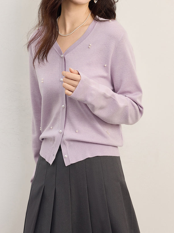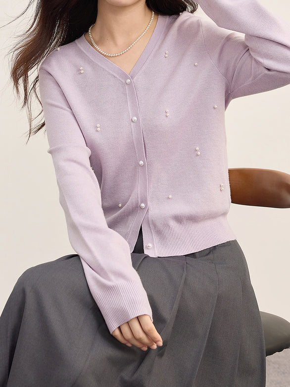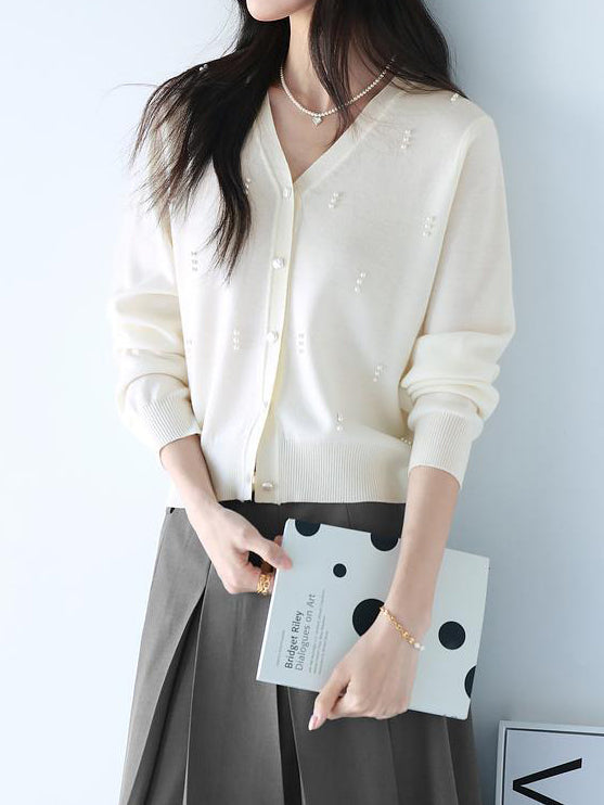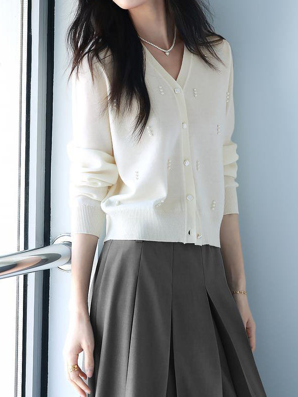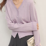 パールデザインVネックカーディガン 2色入