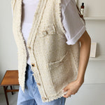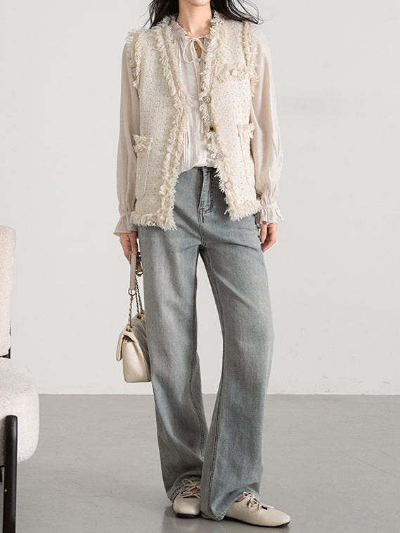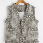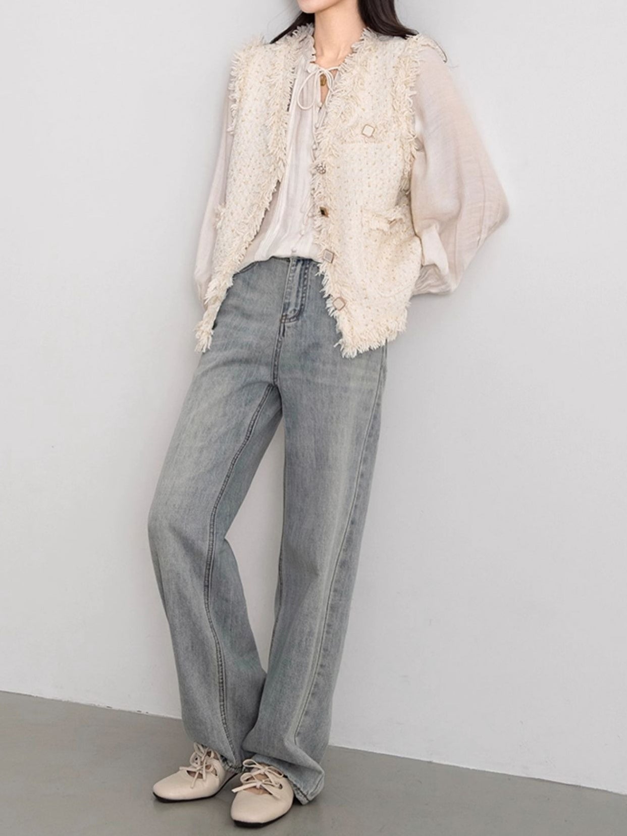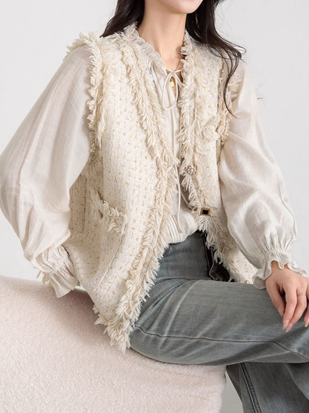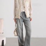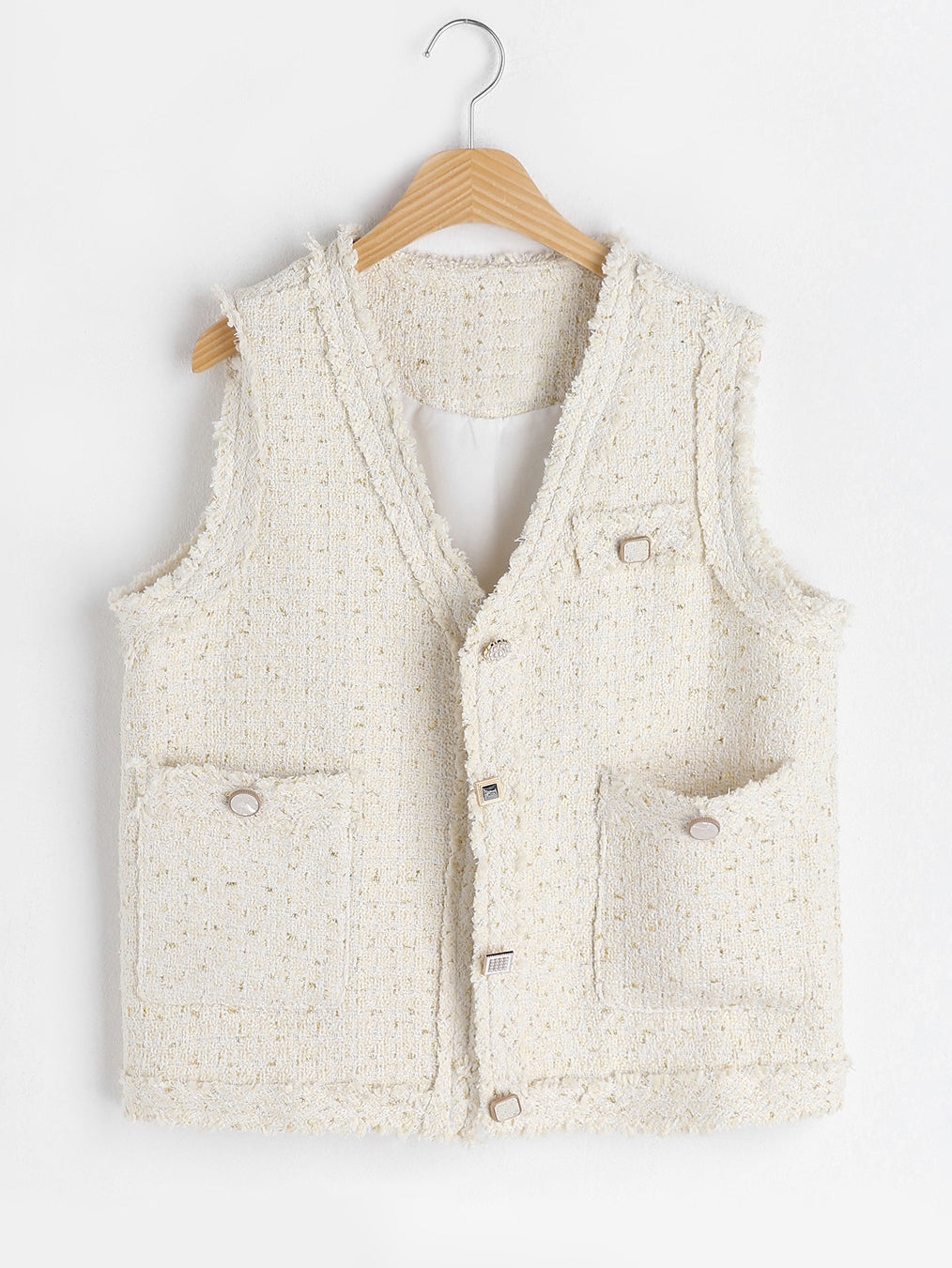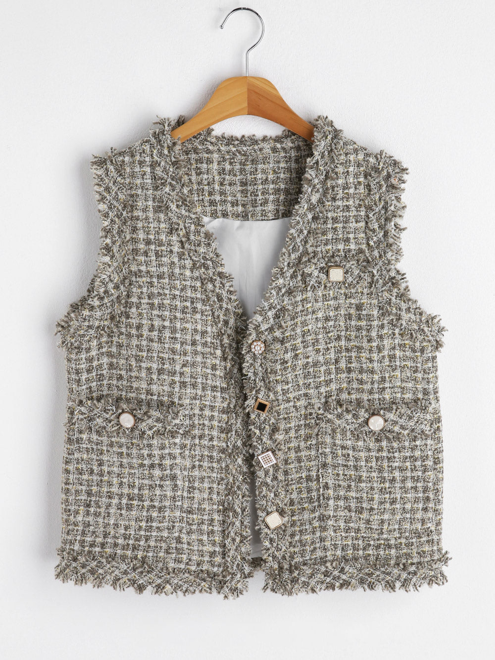 上質なツイード素材を使用し、カジュアルになりすぎない上品な仕上がりに。