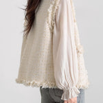 ☆襟周りや前立て、アームやポケット周りにフリンジデザインを施しました。