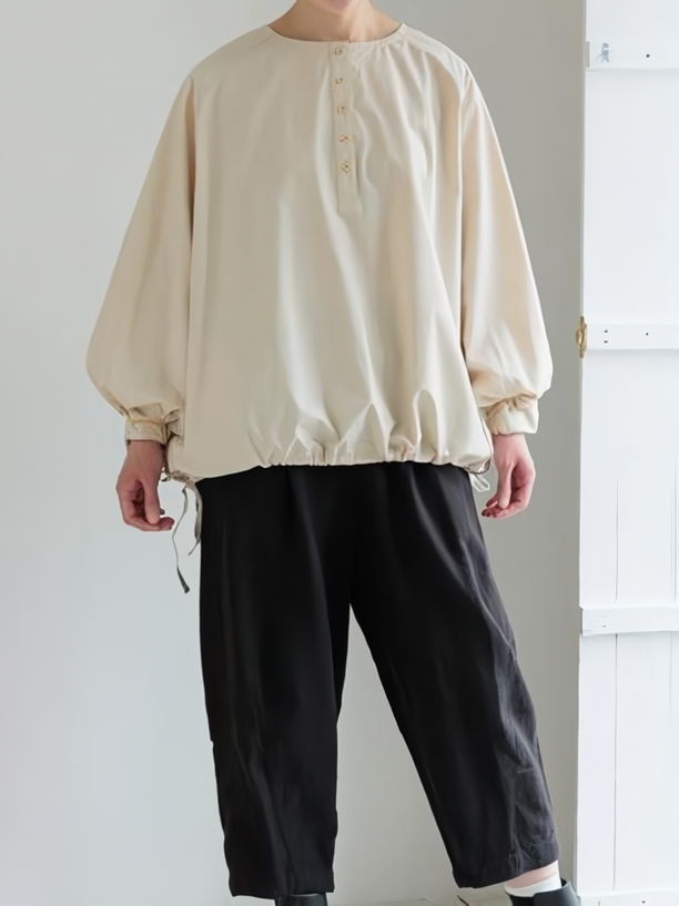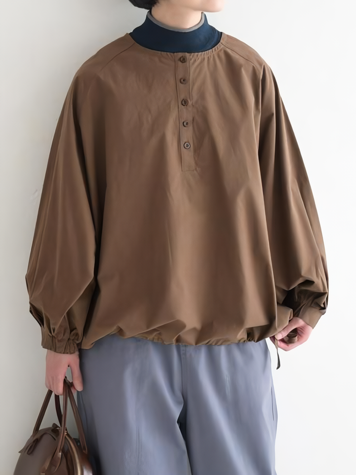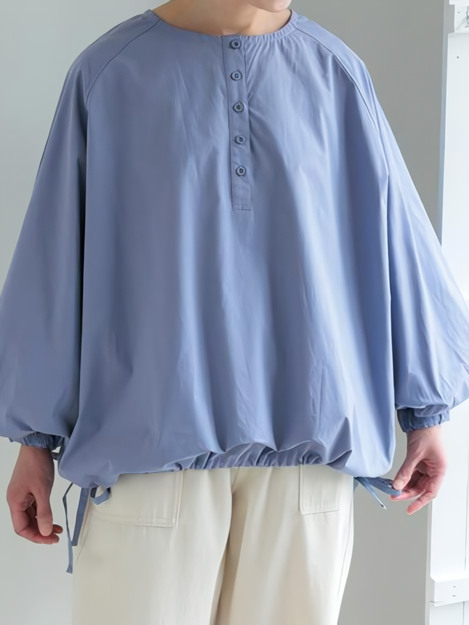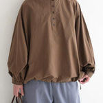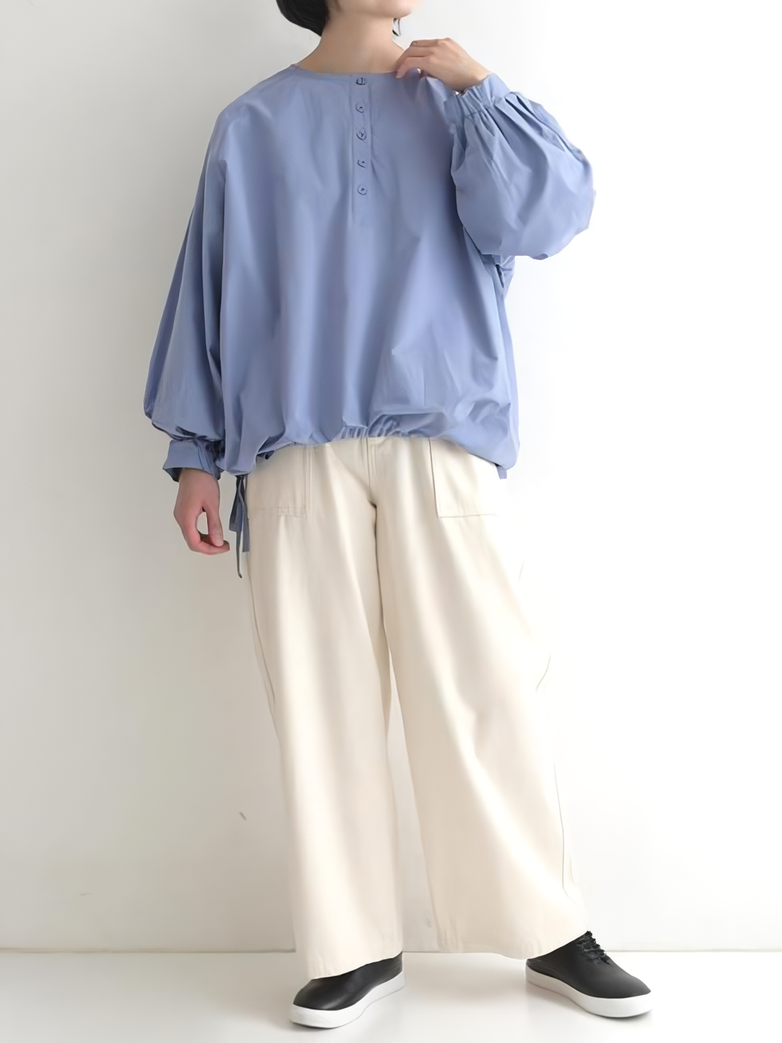 ボリューム感のあるお袖、くしゅっと裾絞りが可愛らしい、デザインの効いた2Wayブラウス。