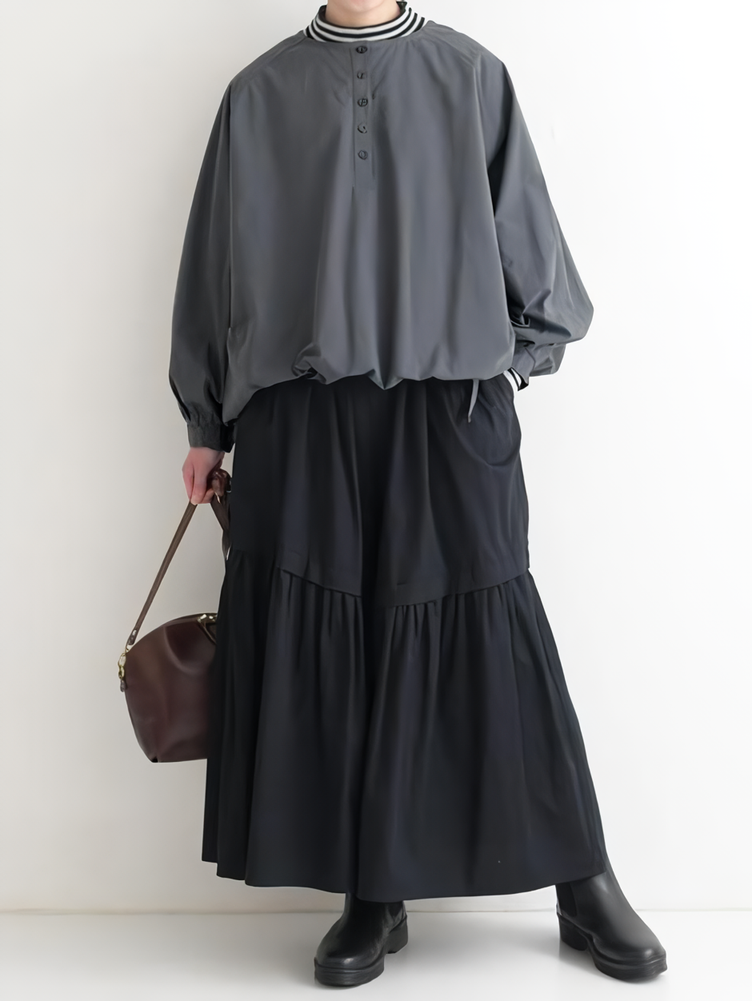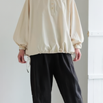 ☆裾のドロストを絞れば、まるみのあるシルエットに。