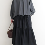 やや光沢感のあるタイプライター生地でカジュアルすぎない印象に。
