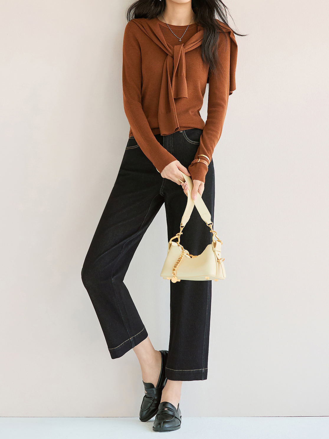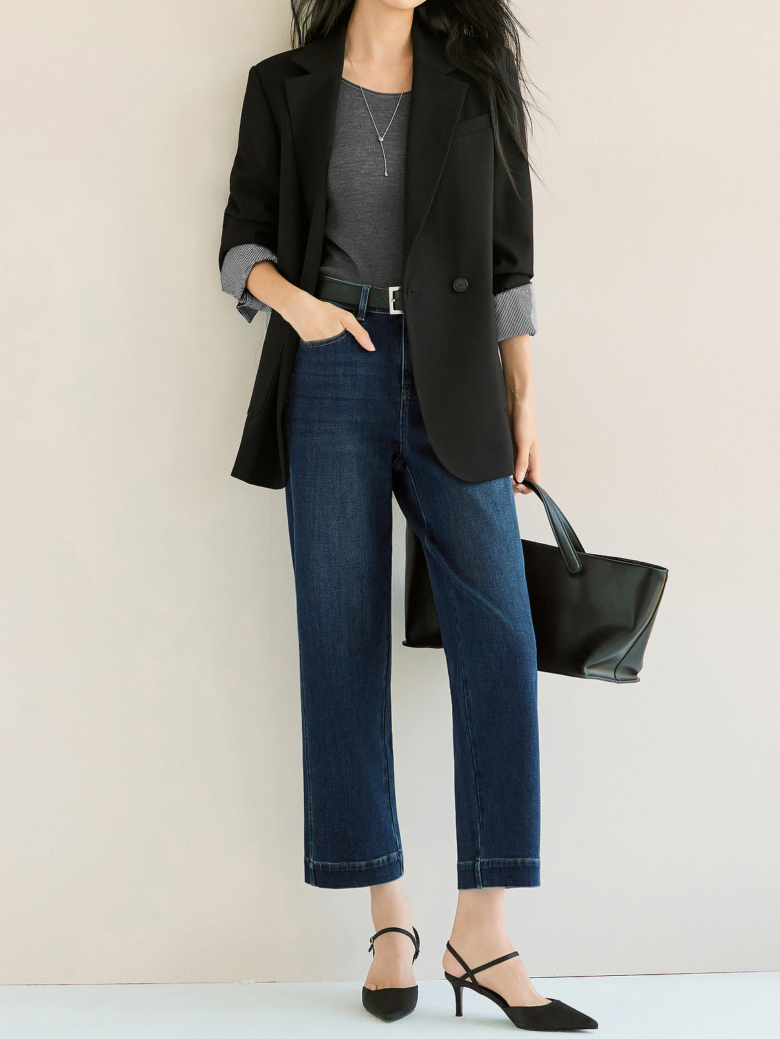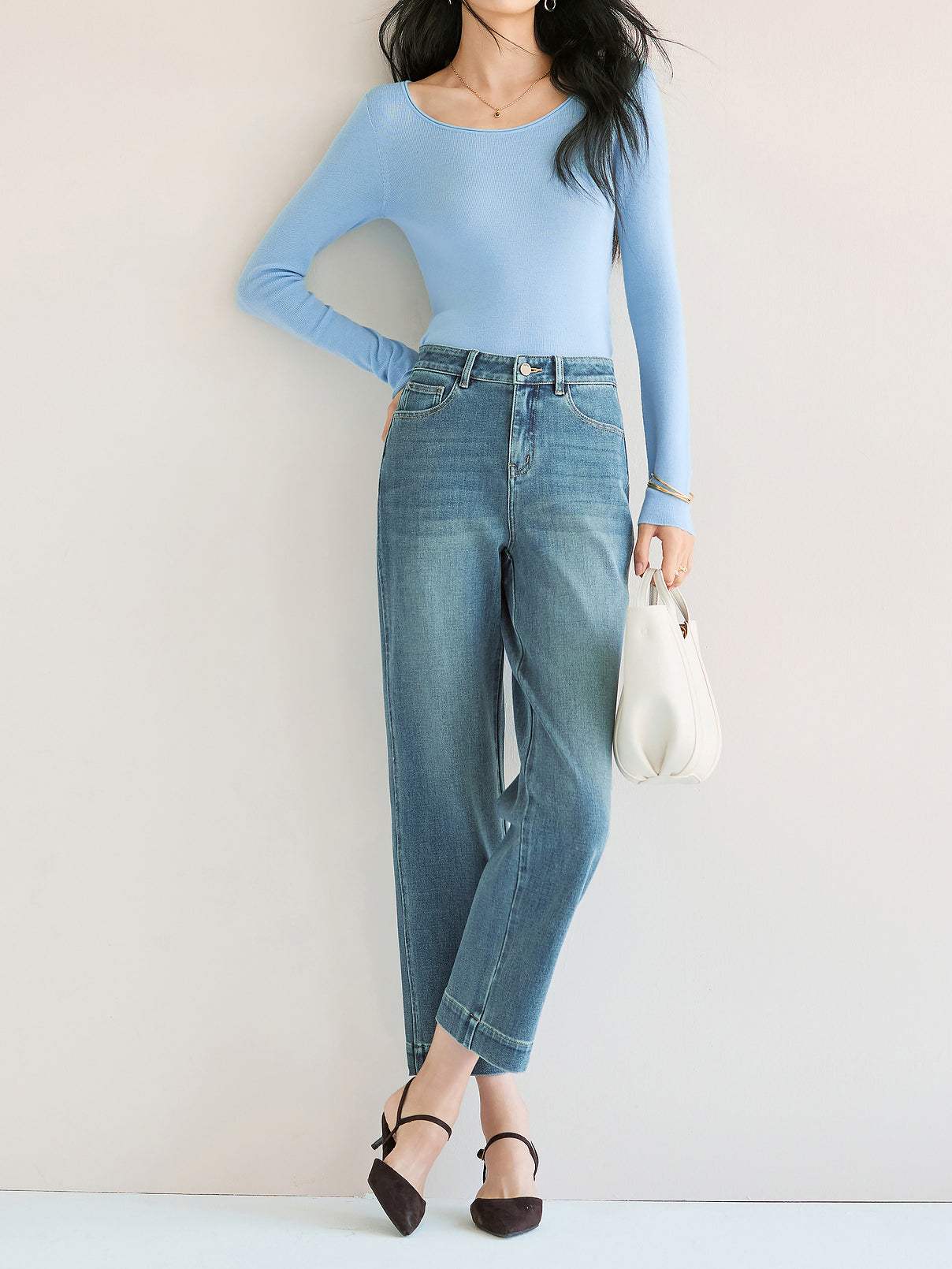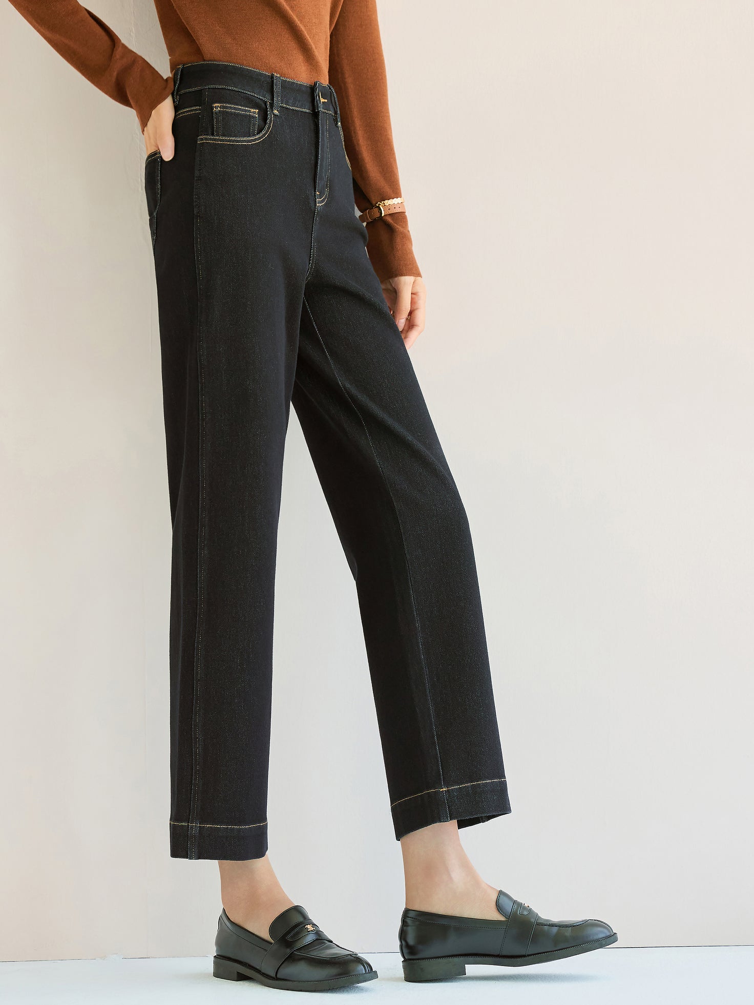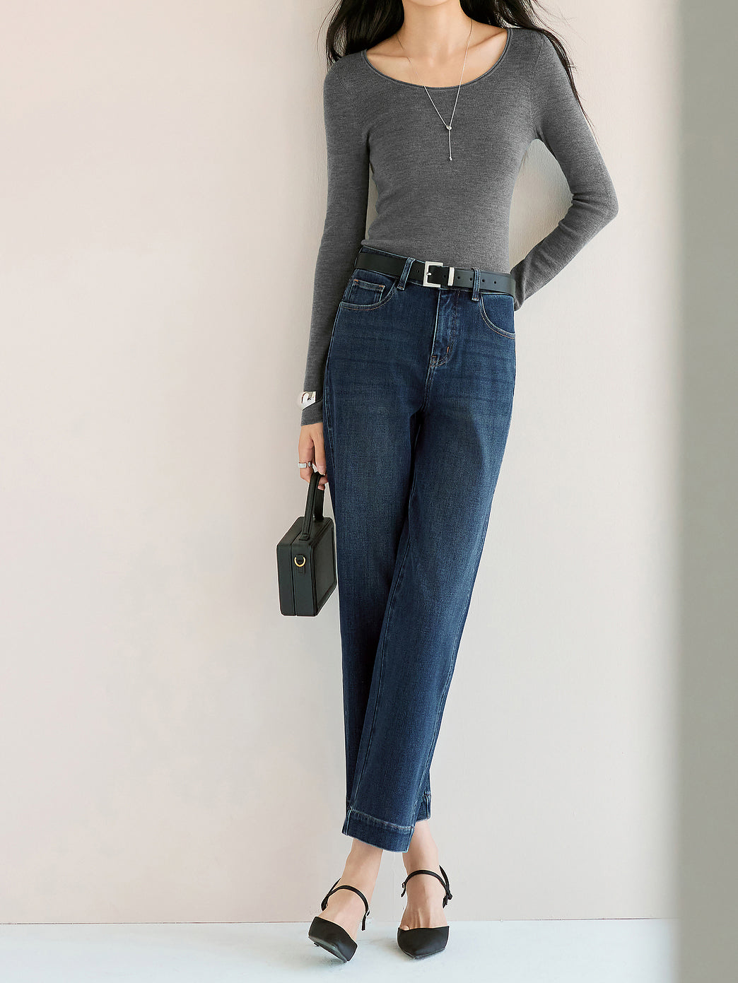 ☆レングスは九分丈に設定しており、着用すると足元にオフバランスな視覚効果を演出します。