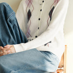 使いやすくシンプルなカーディガンにトレンドのアーガイル柄を施しました。