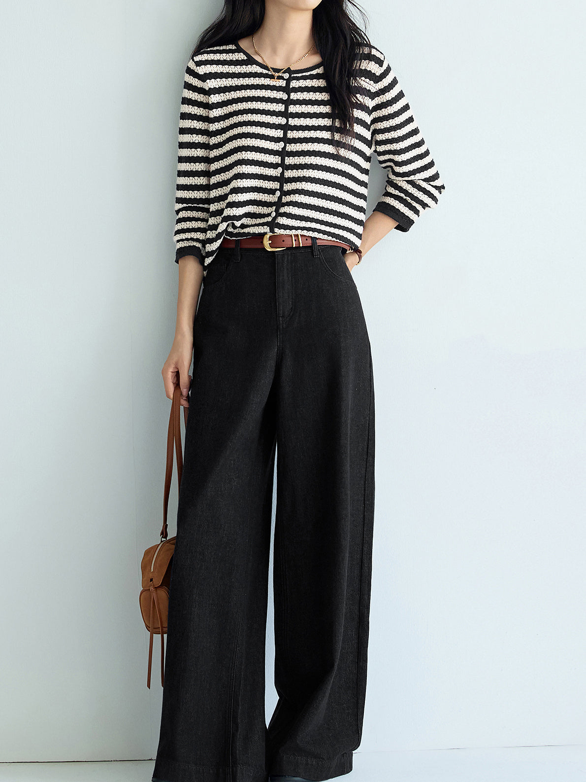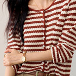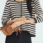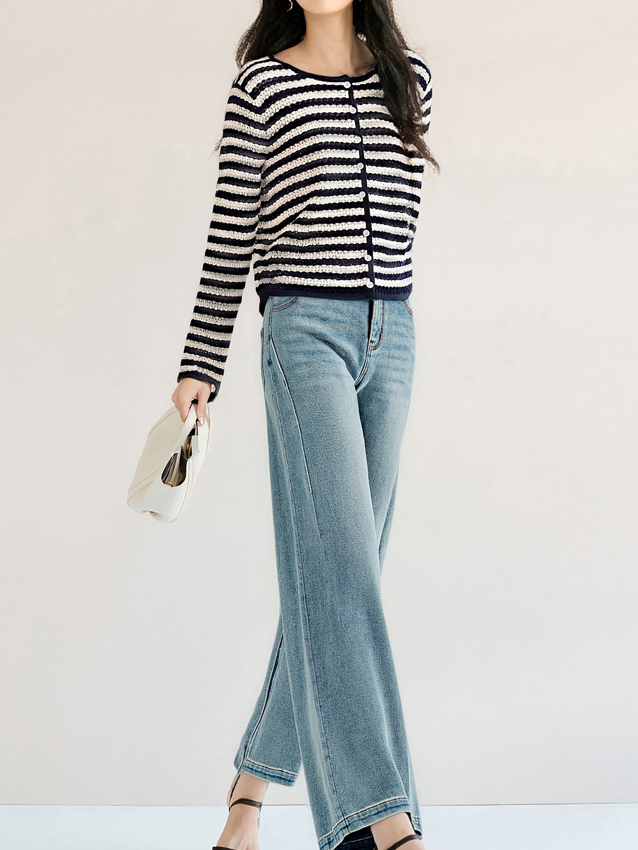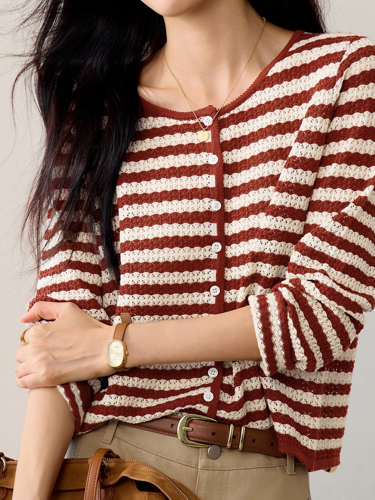 ボーダーデザインがアクセントのクルーネックカーディガン。