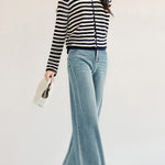 ・ボトムはデニムパンツを合わせたら大人マリンスタイルの完成です。