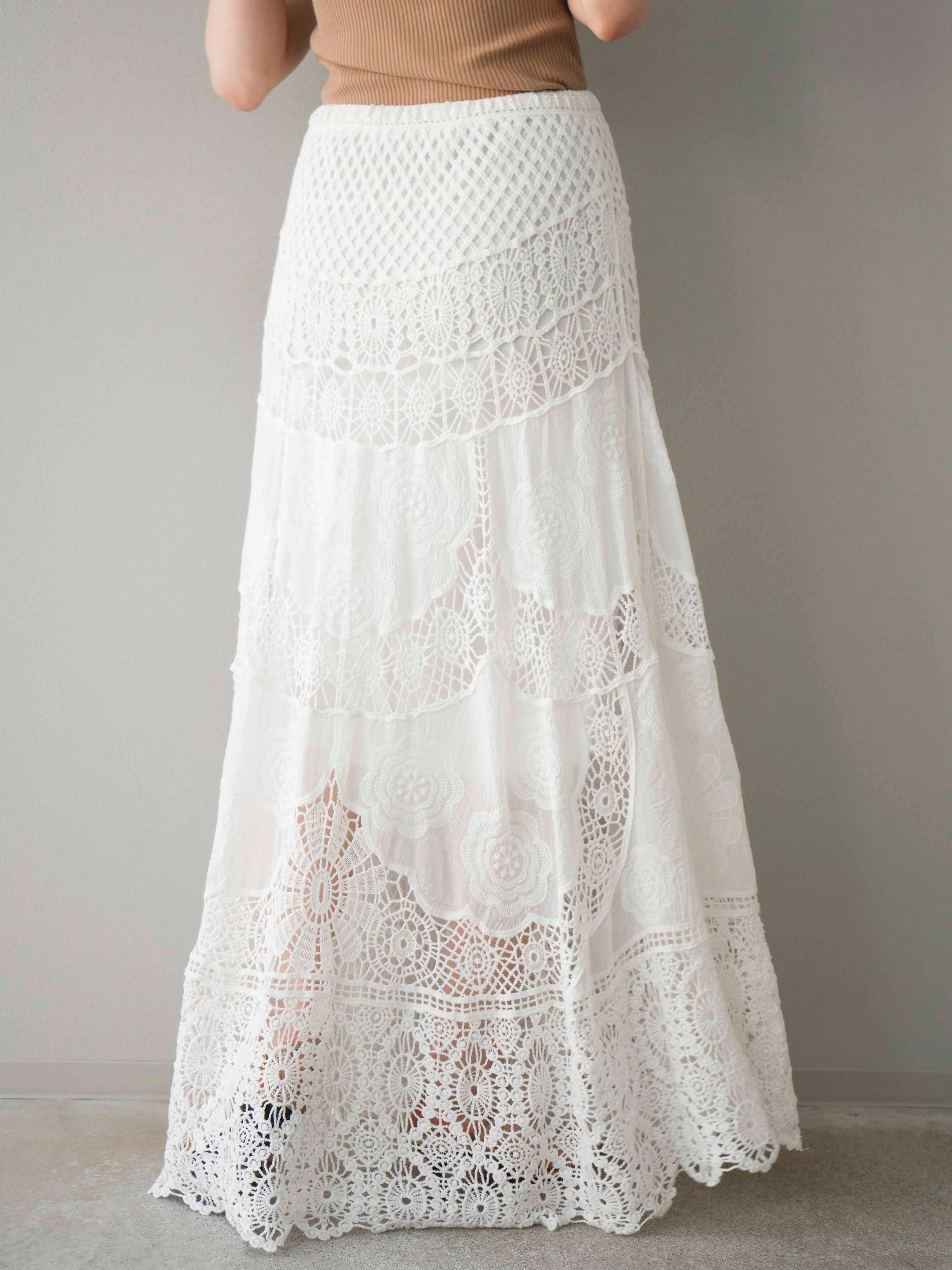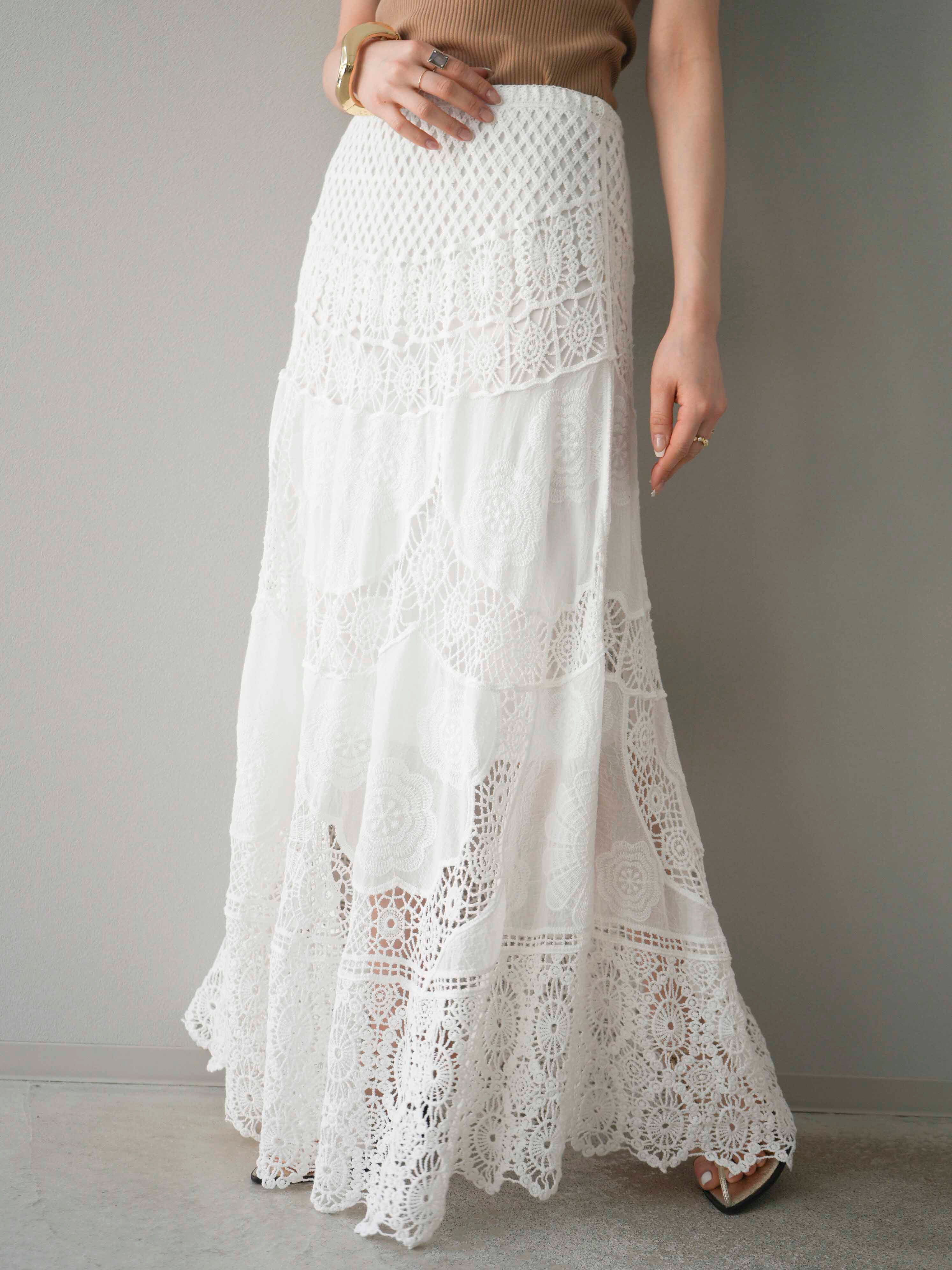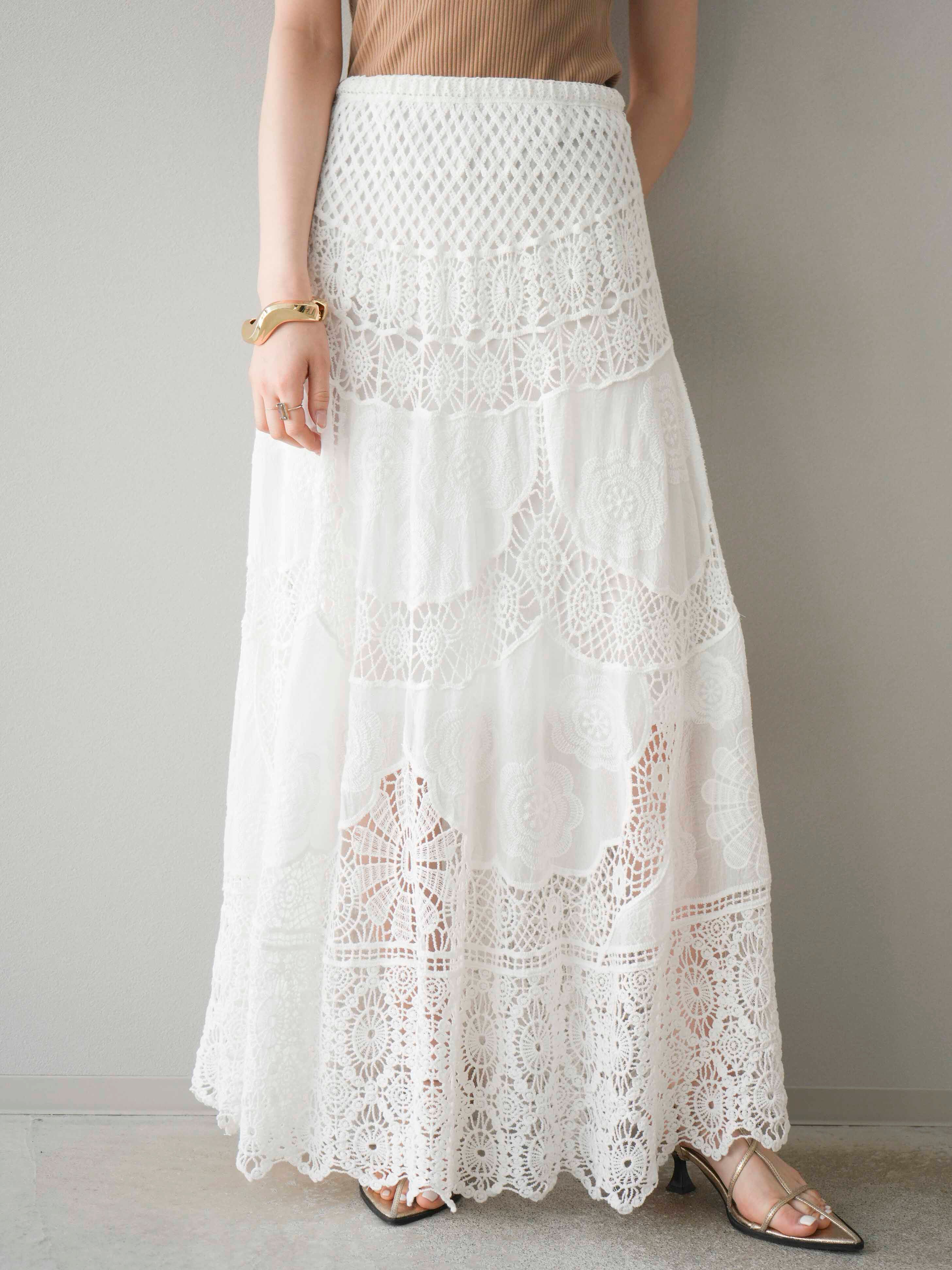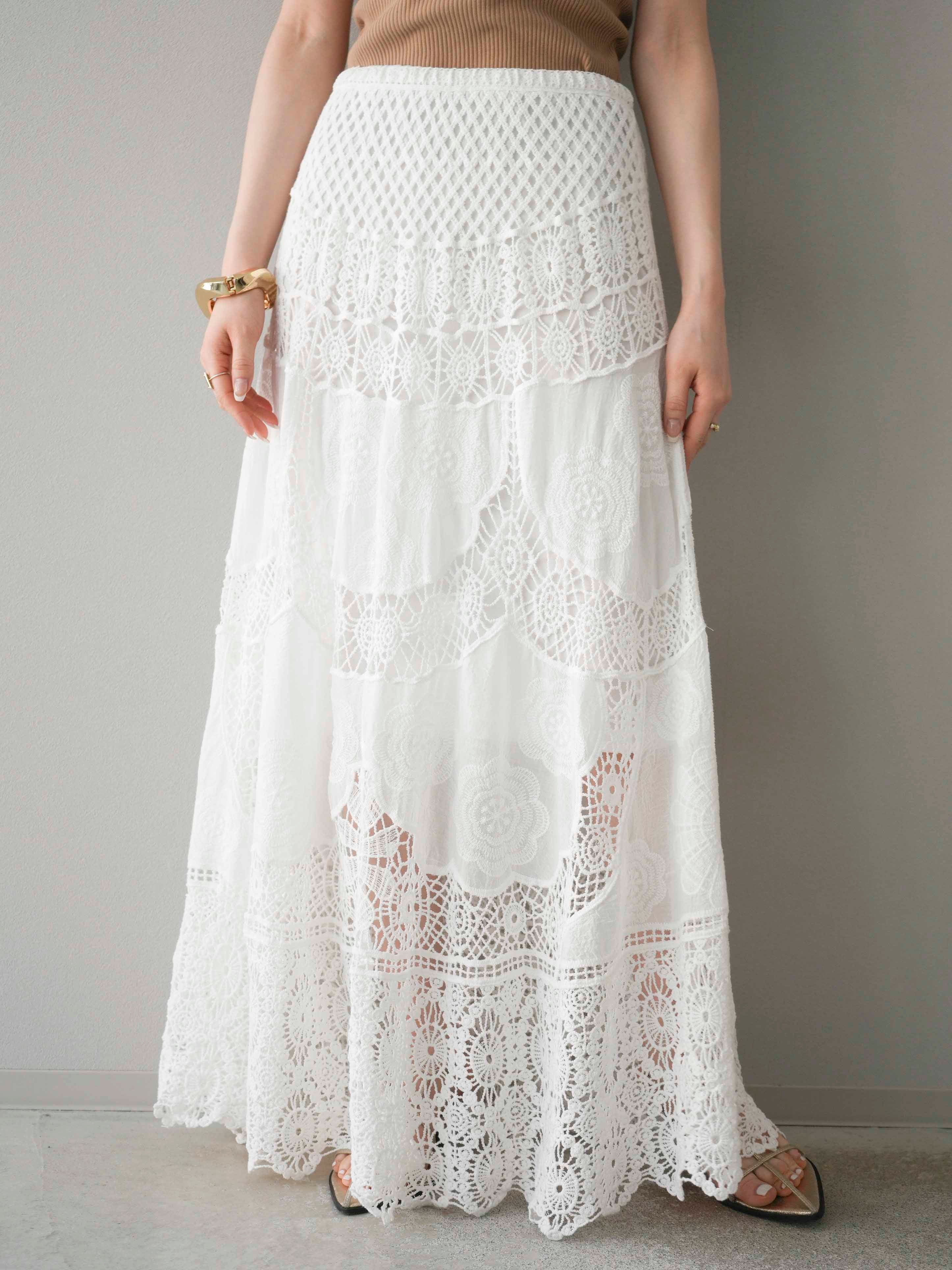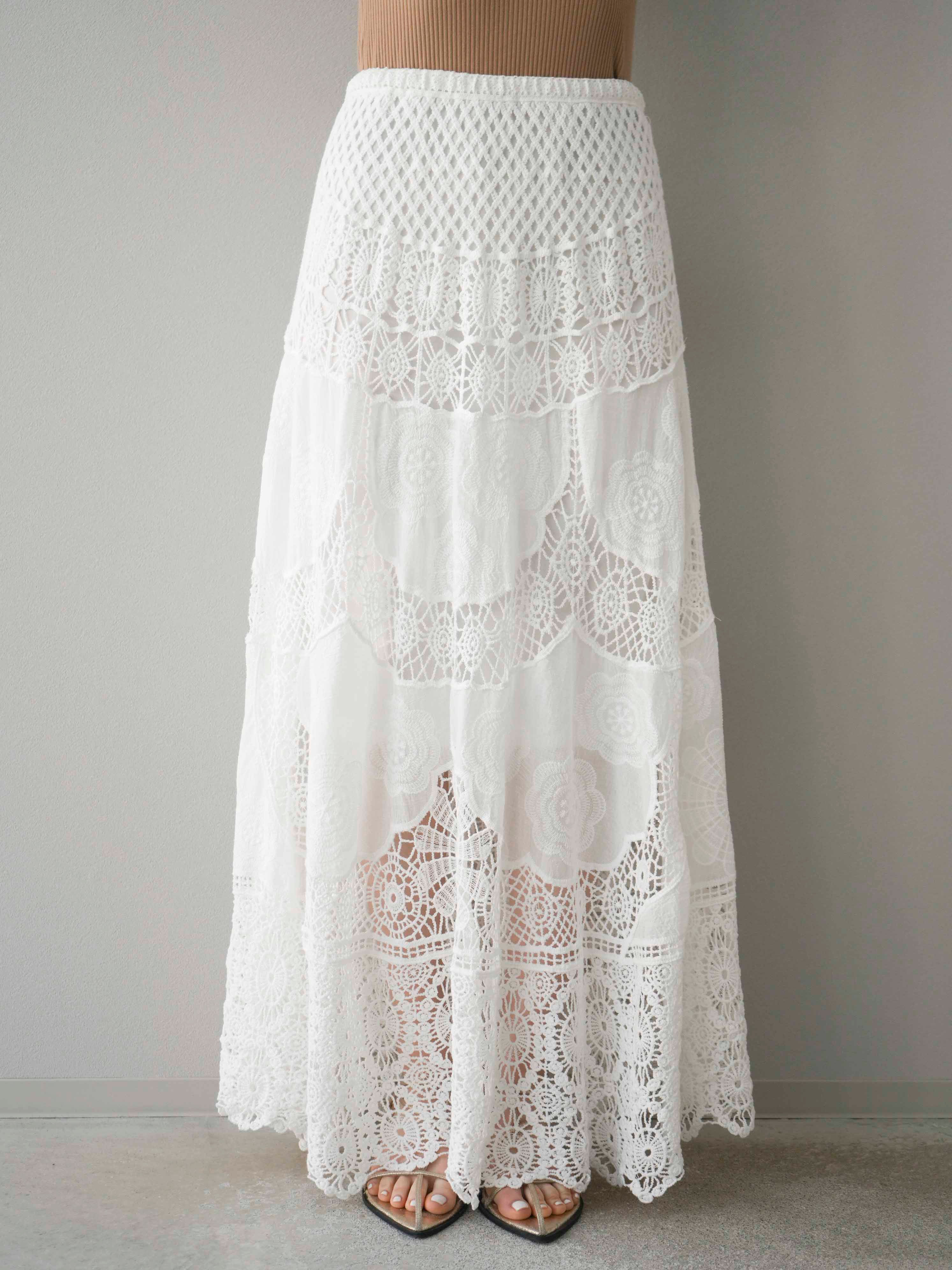 トレンド感あふれるクロシェレースを贅沢に使用したマキシスカート。