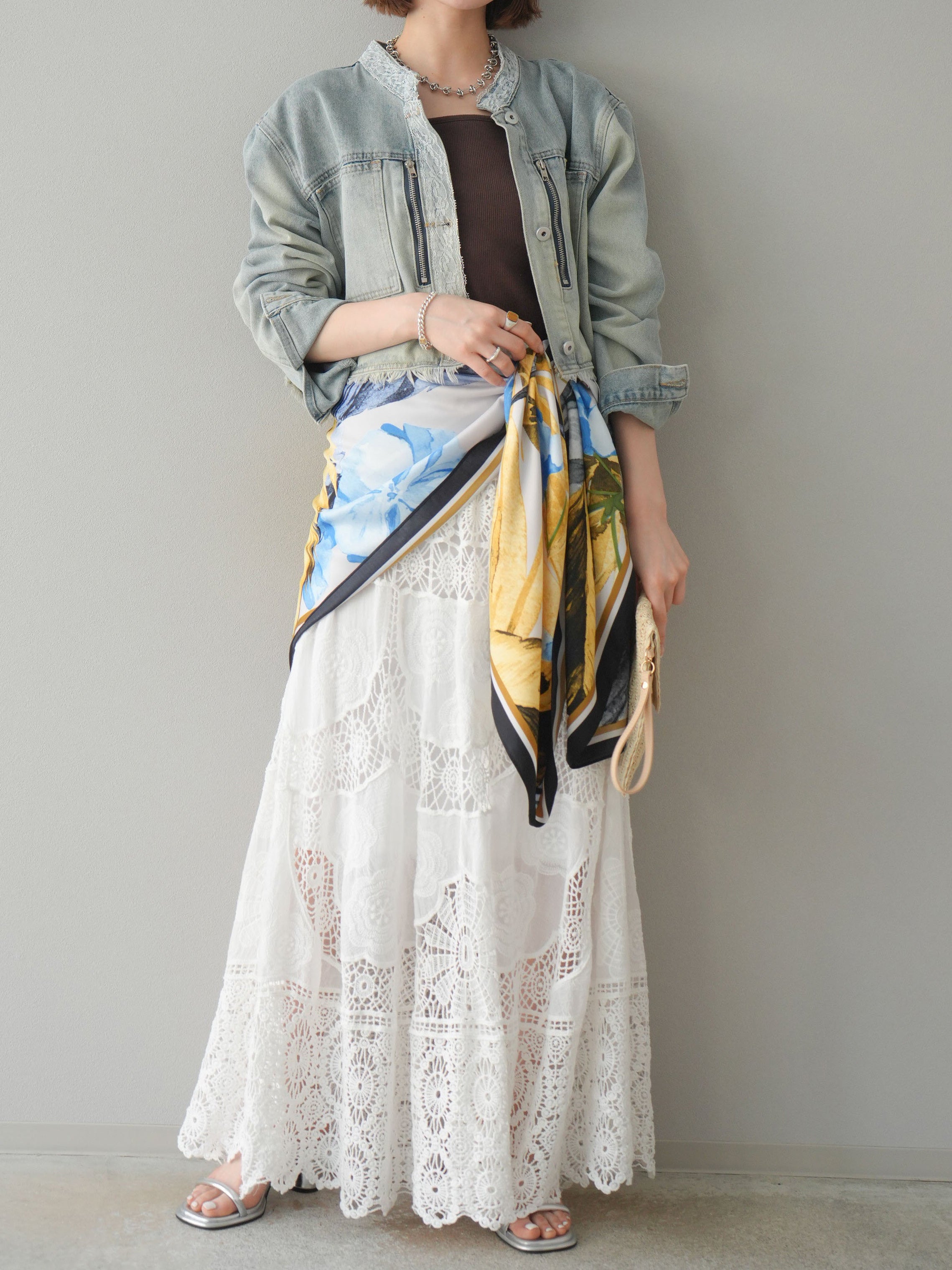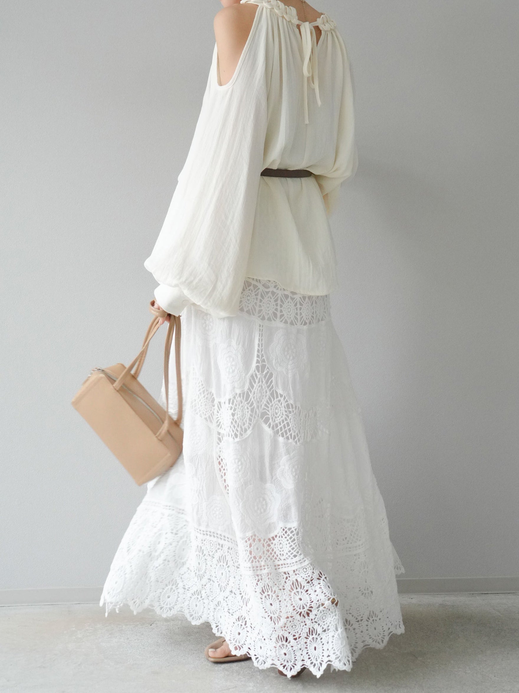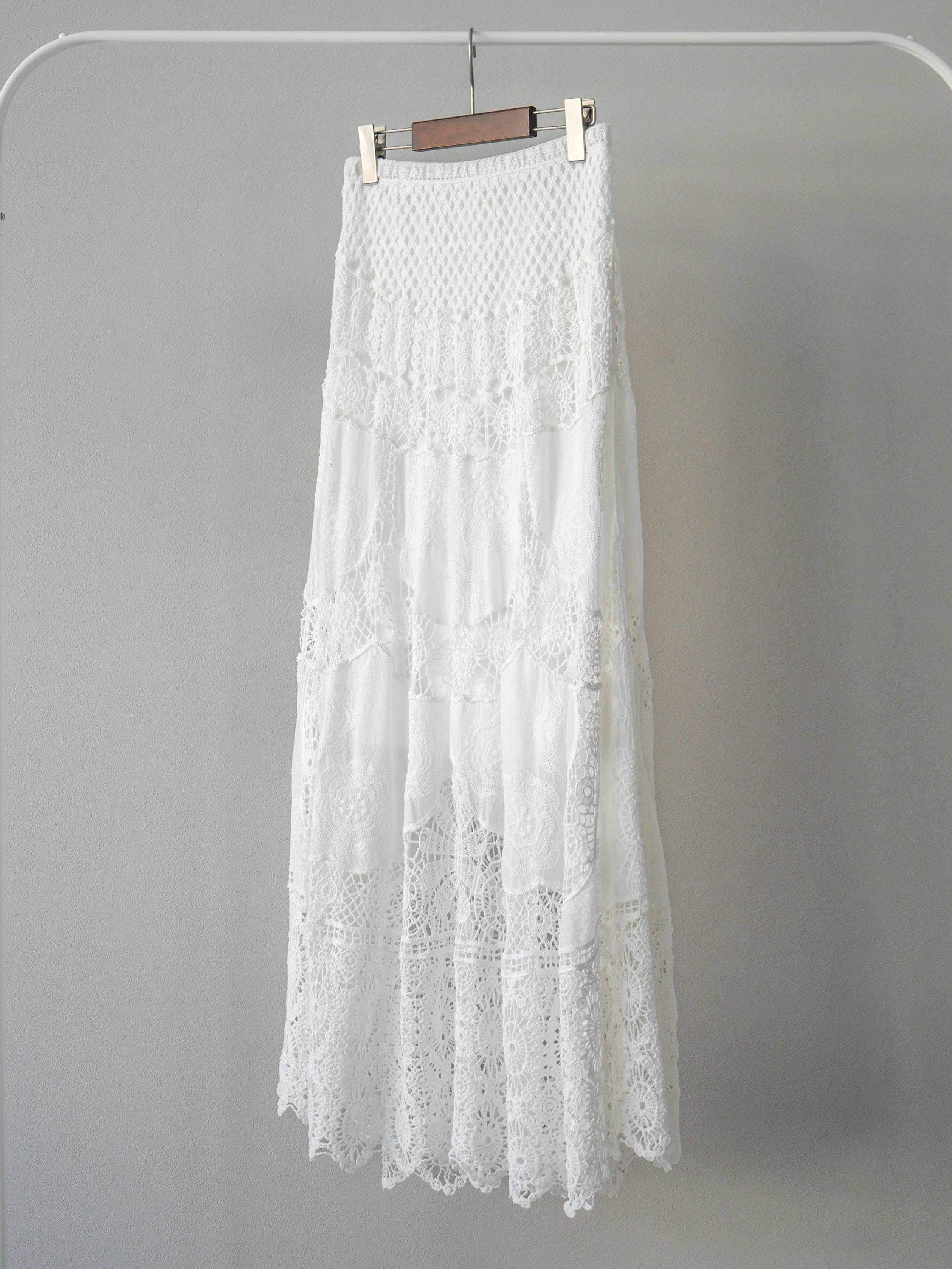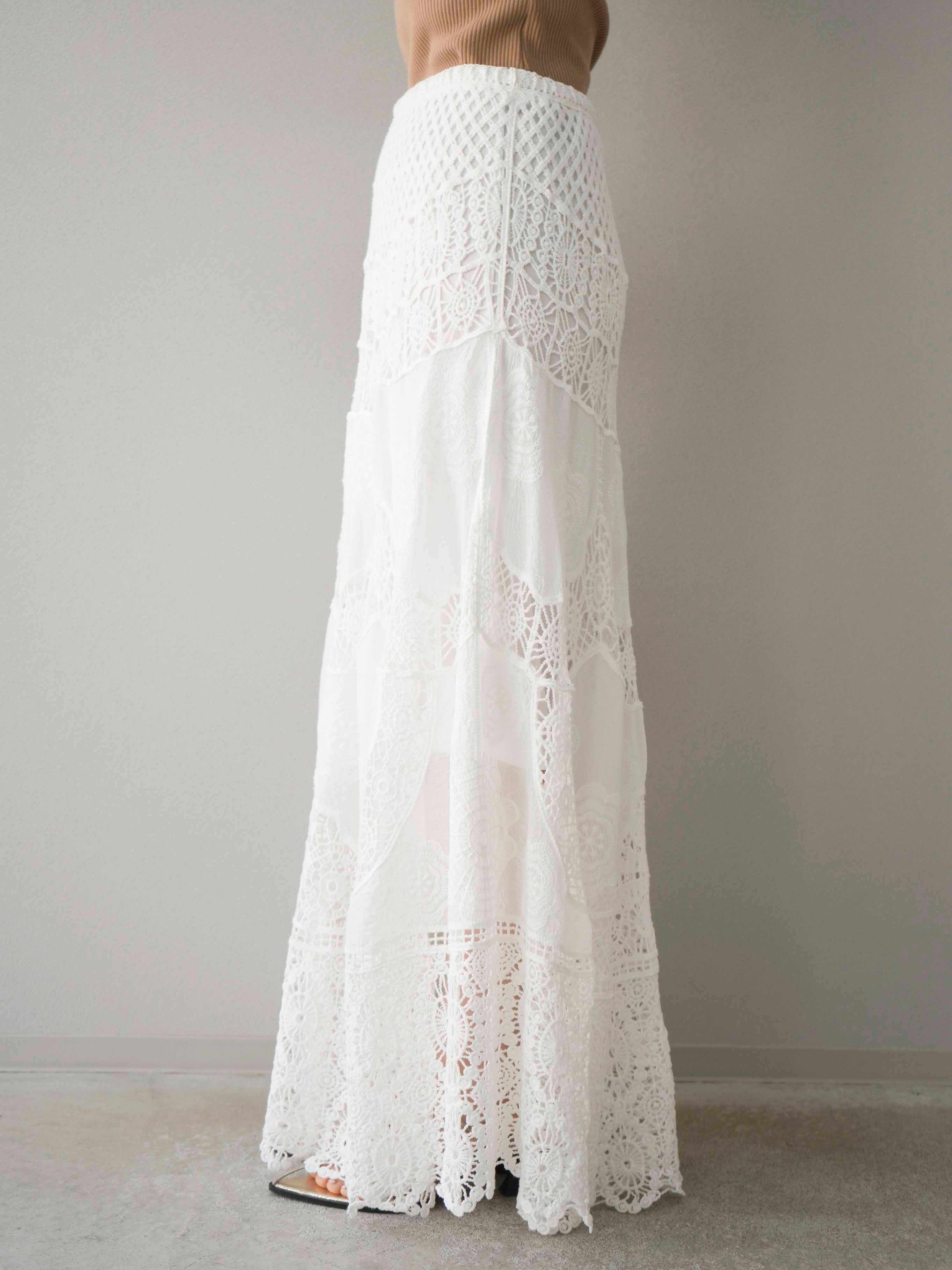 トレンド感あふれるクロシェレースを贅沢に使用したマキシスカート。