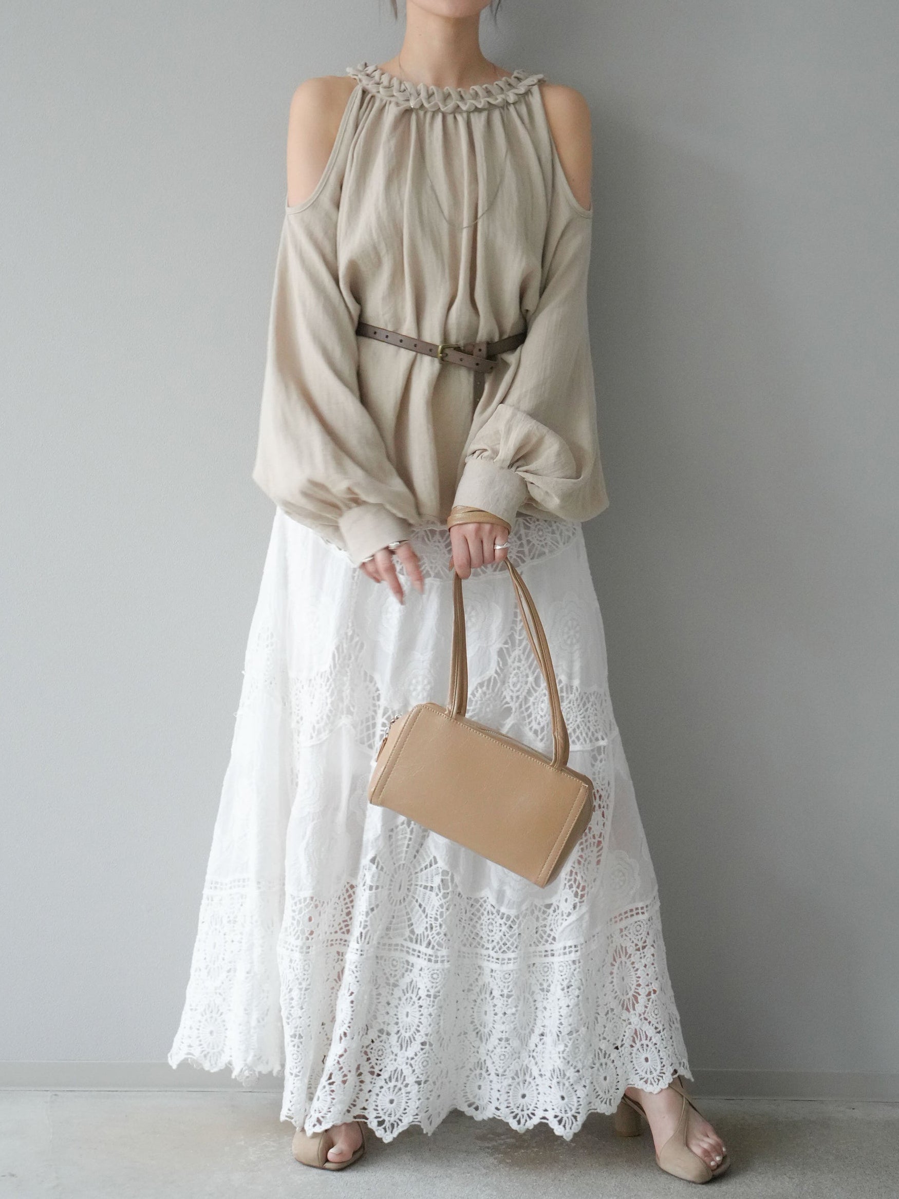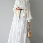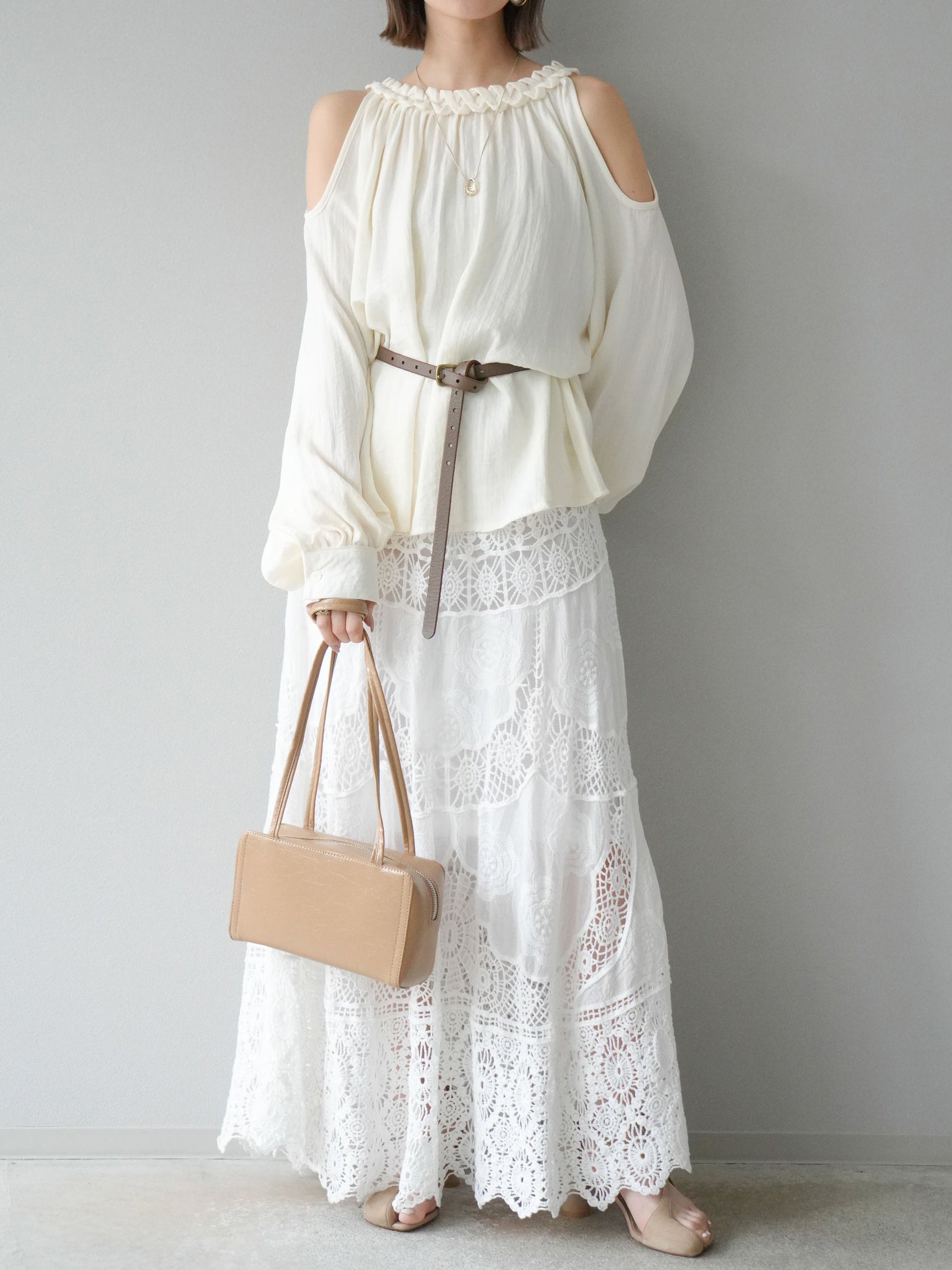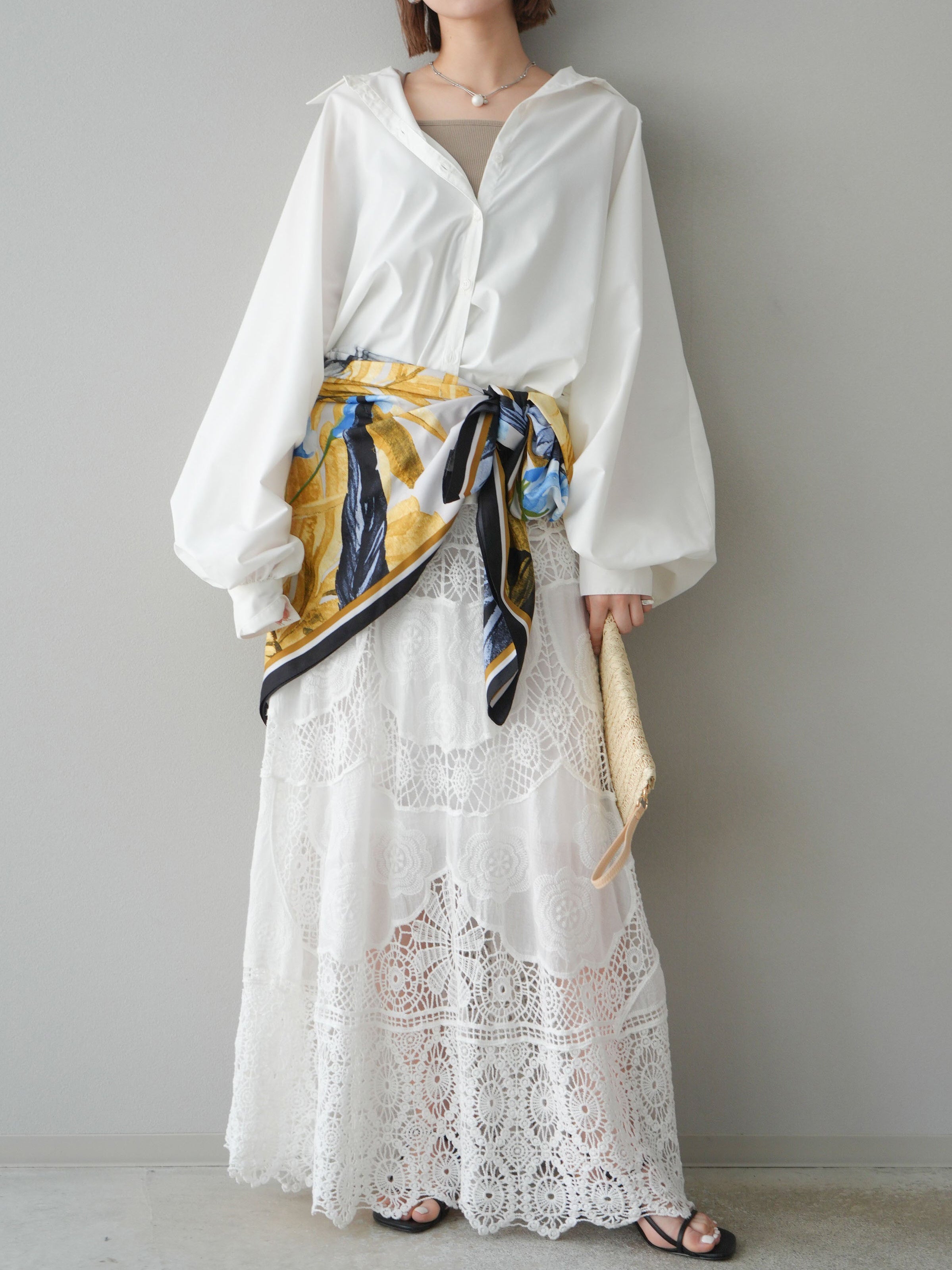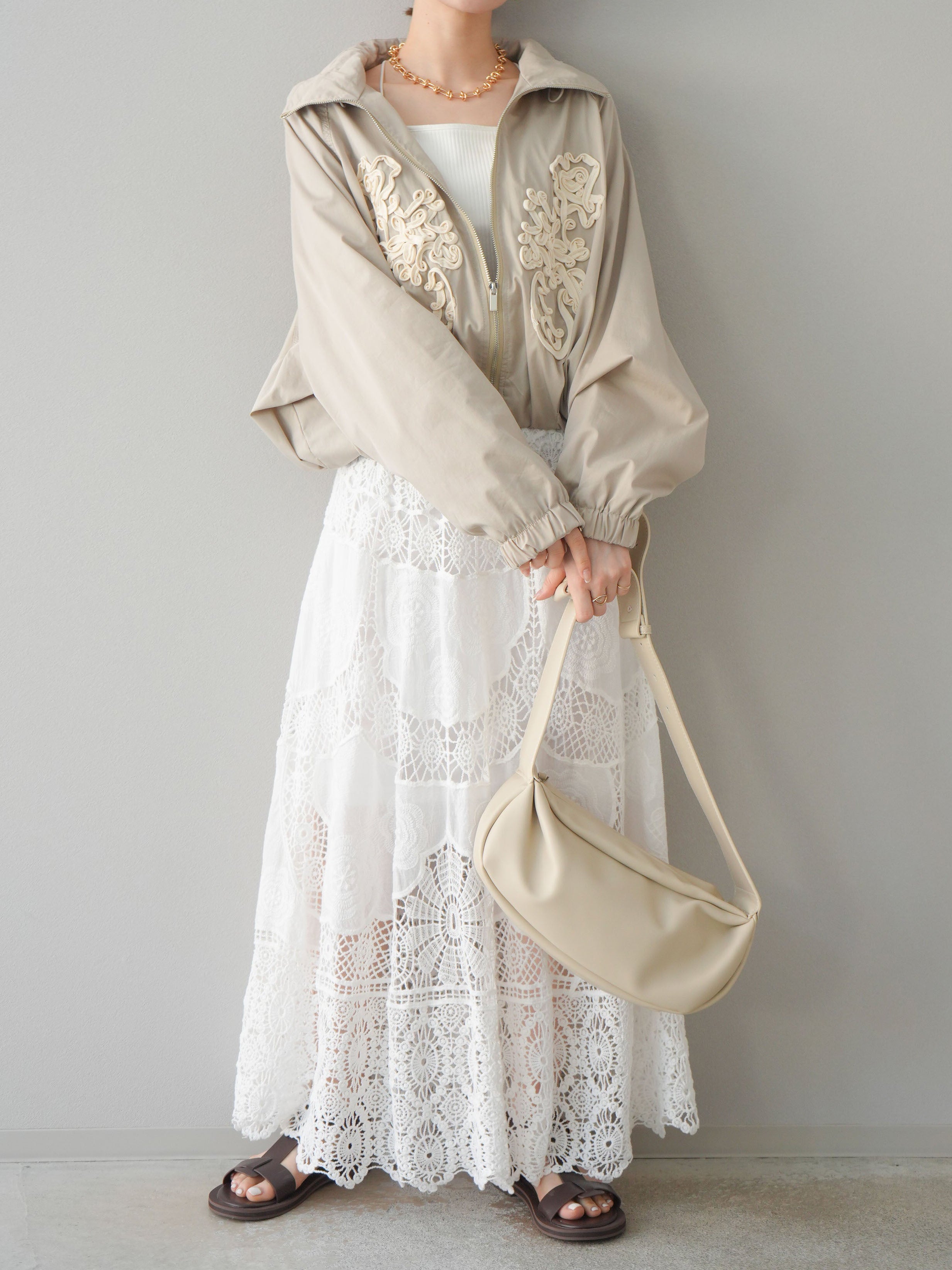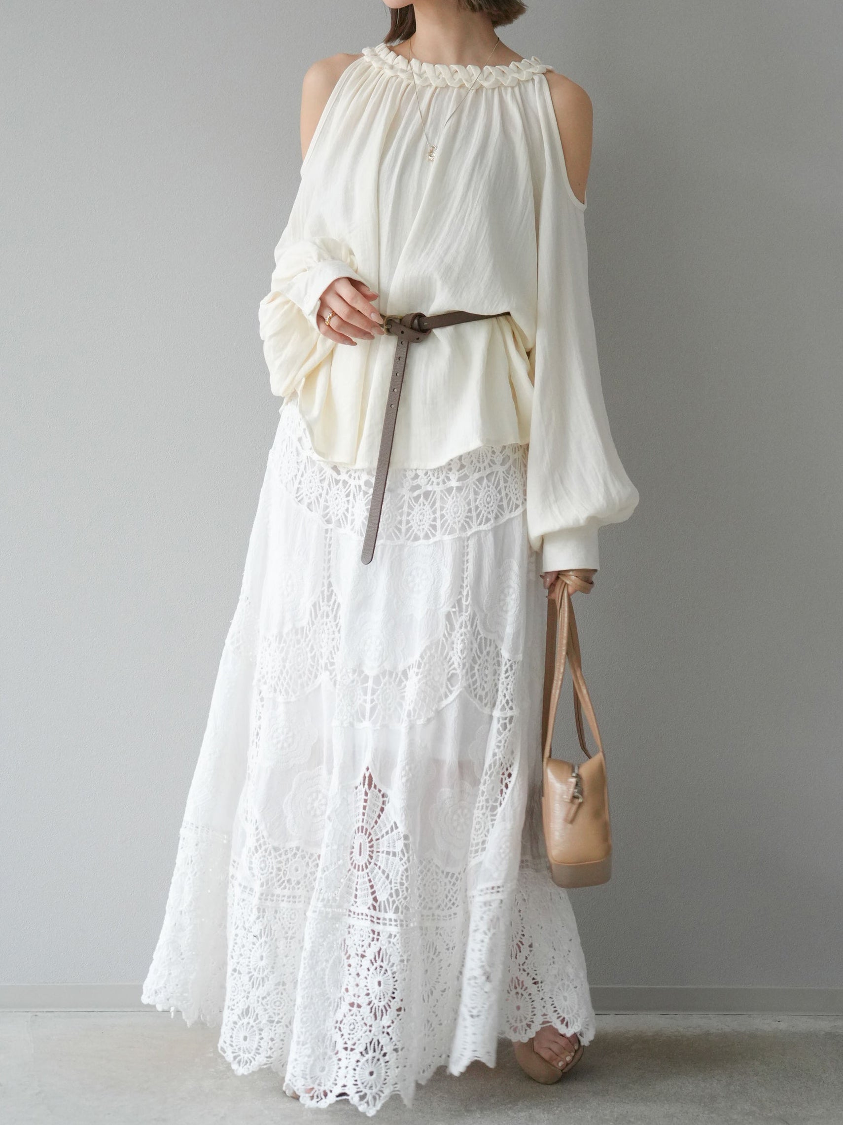 トレンド感あふれるクロシェレースを贅沢に使用したマキシスカート。