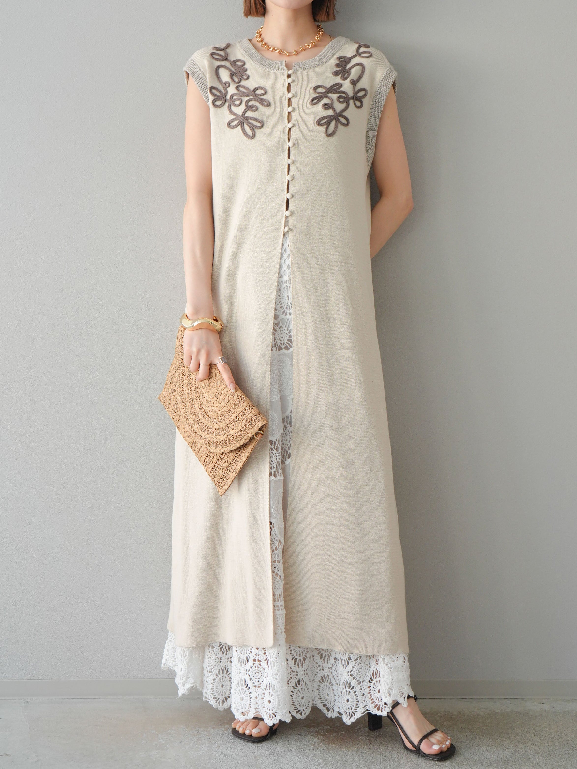 繊細なクロシェ編みが軽やかさを演出し、膝下からの透け感がコーデに抜け感をプラス。