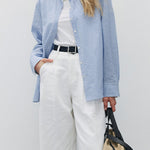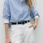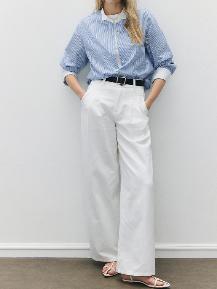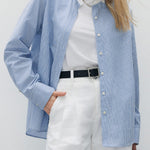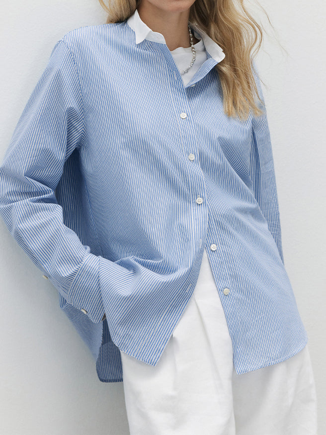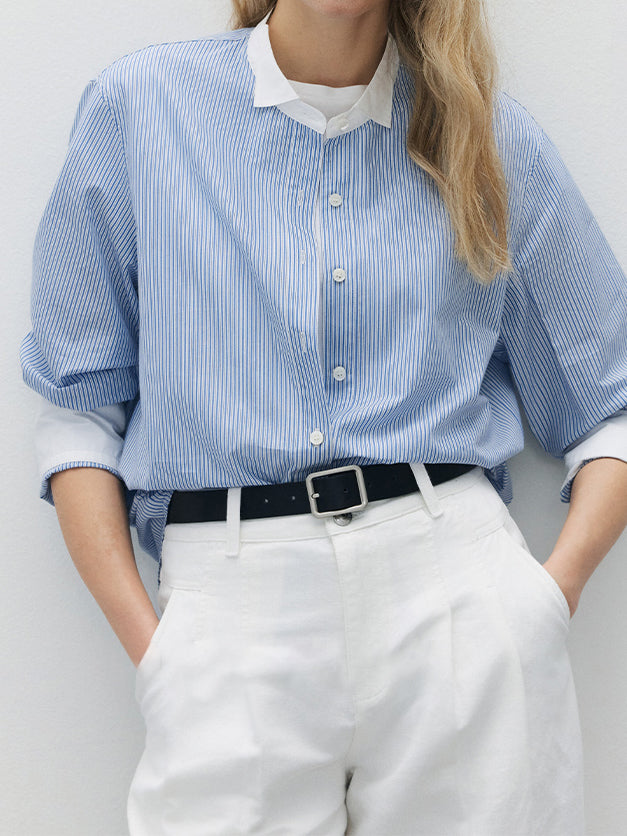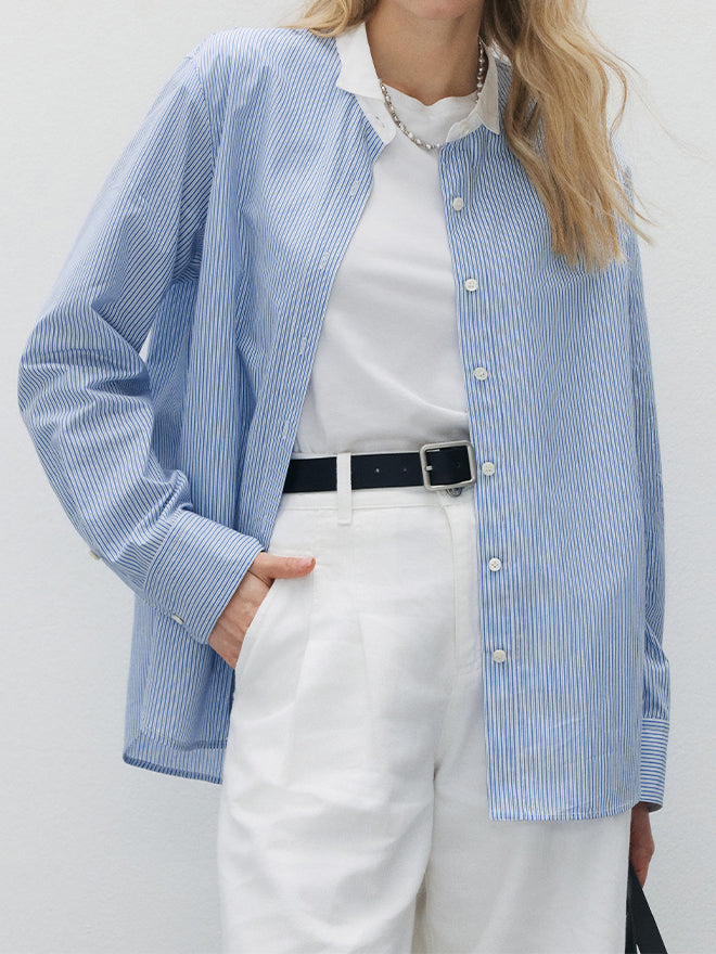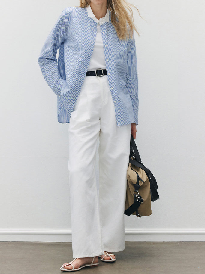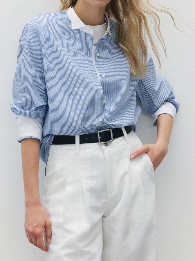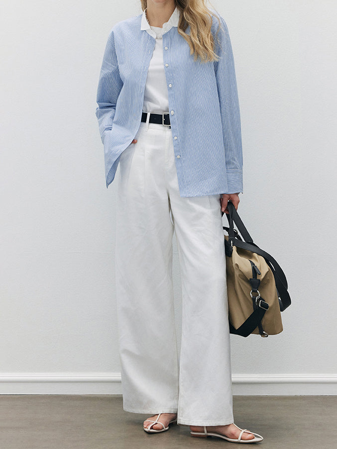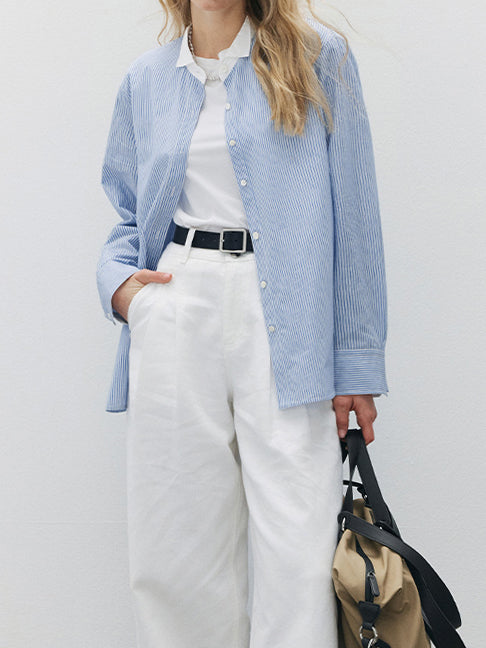 サラッといつでもどこでも着れるベーシックなストライプシャツ。