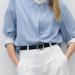 ダブルカラーデザインストライプシャツ