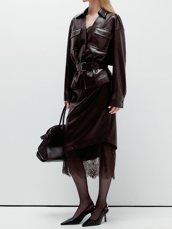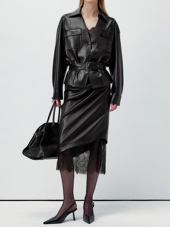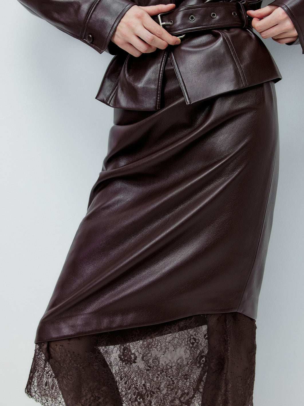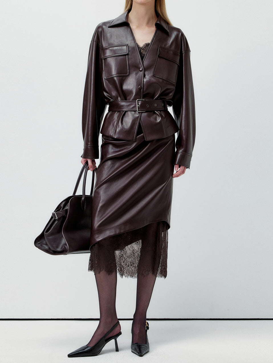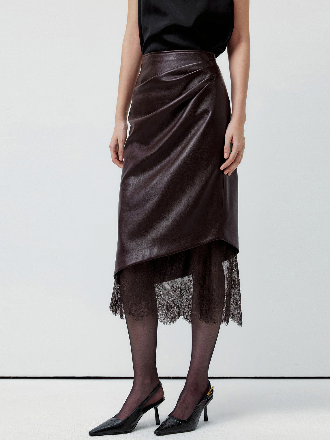 クールな印象のレザーと、フェミニンな印象のレースのバランスが唯一無二で、コーディネートのアクセントに。
