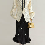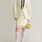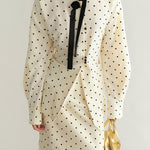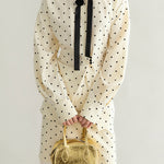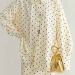 小さ過ぎないドットが華奢見えして女性らしいスタイリングに仕上がり、控えめな印象でコーデに取り入れやすいです。