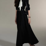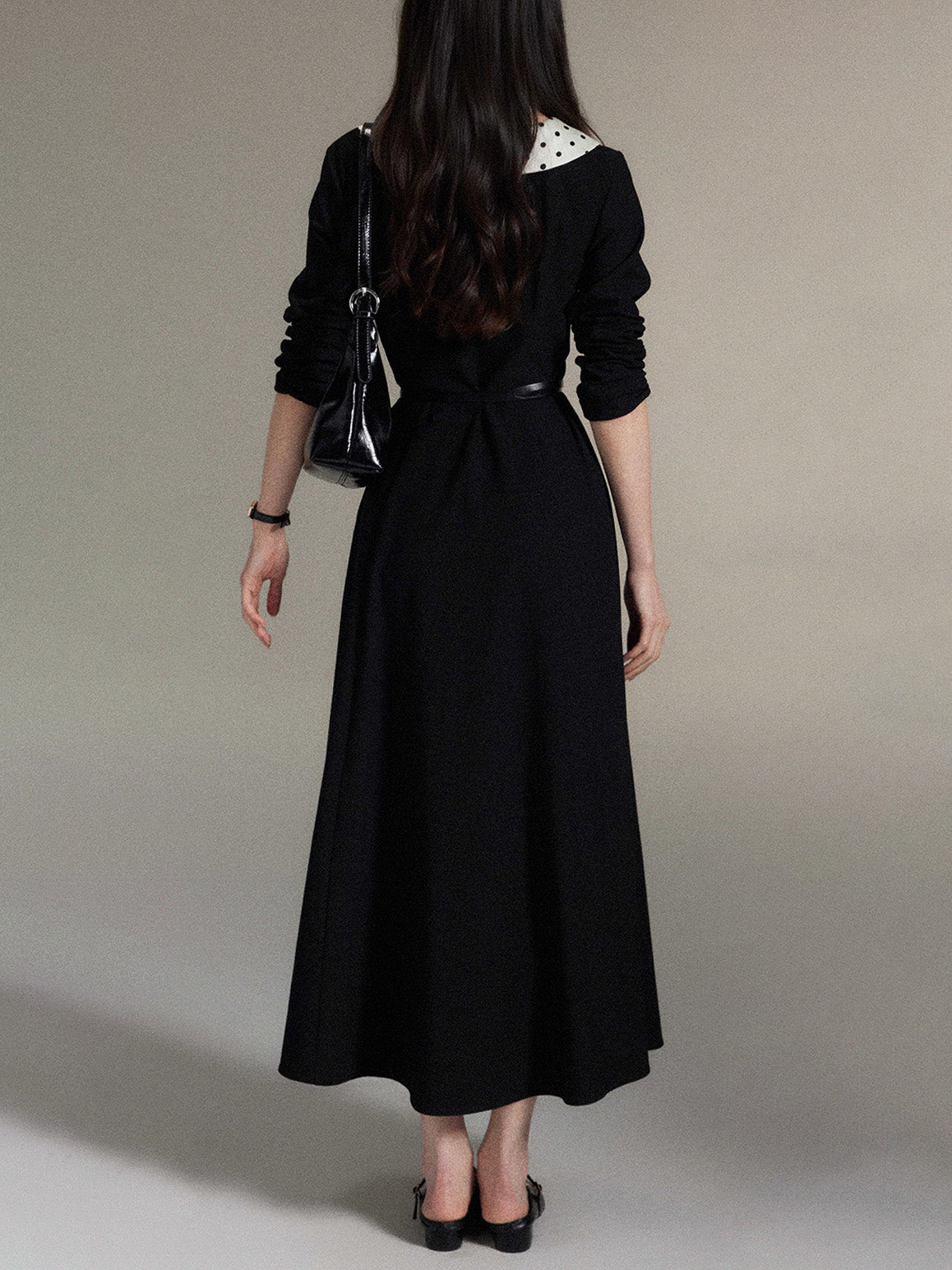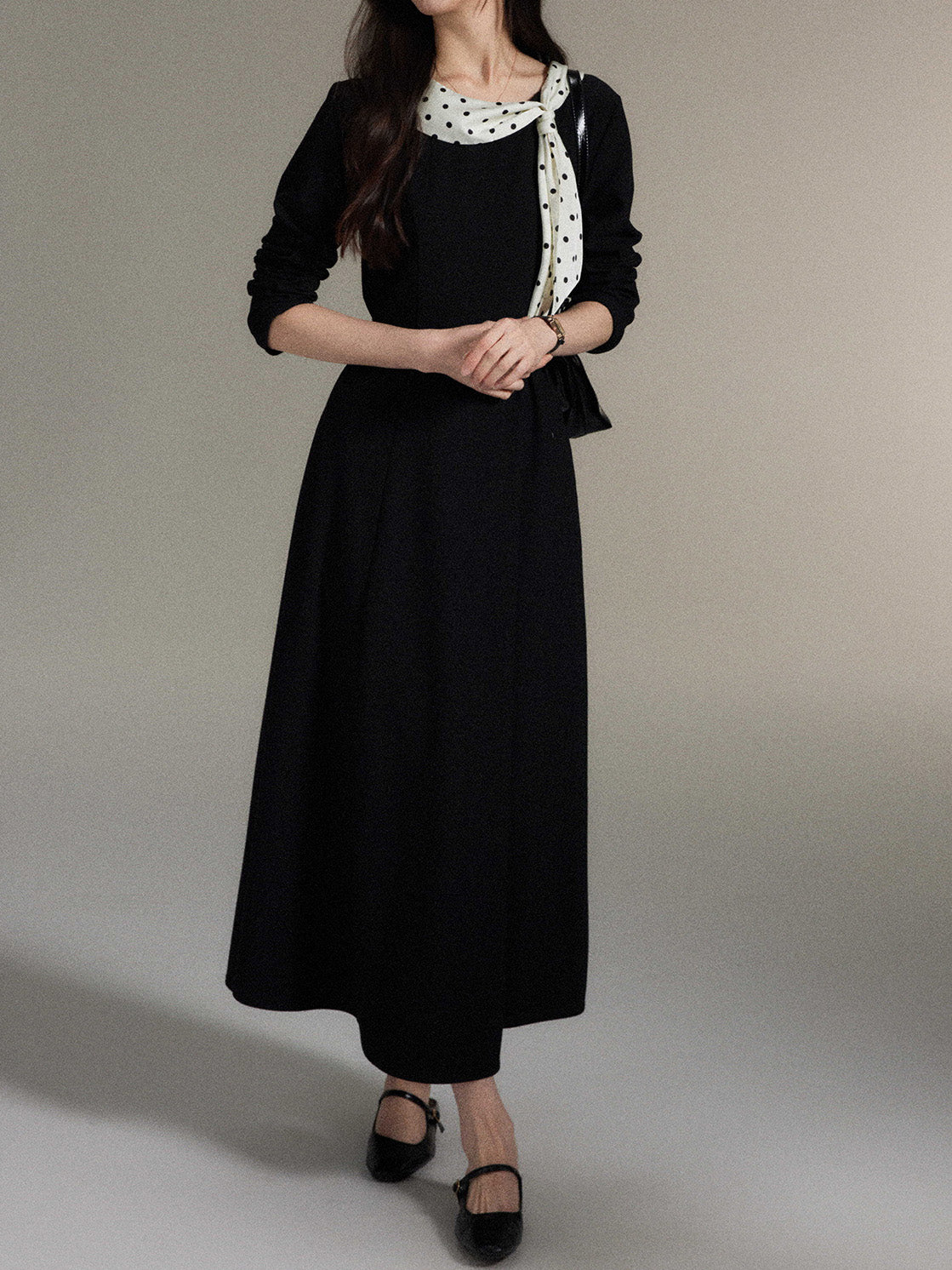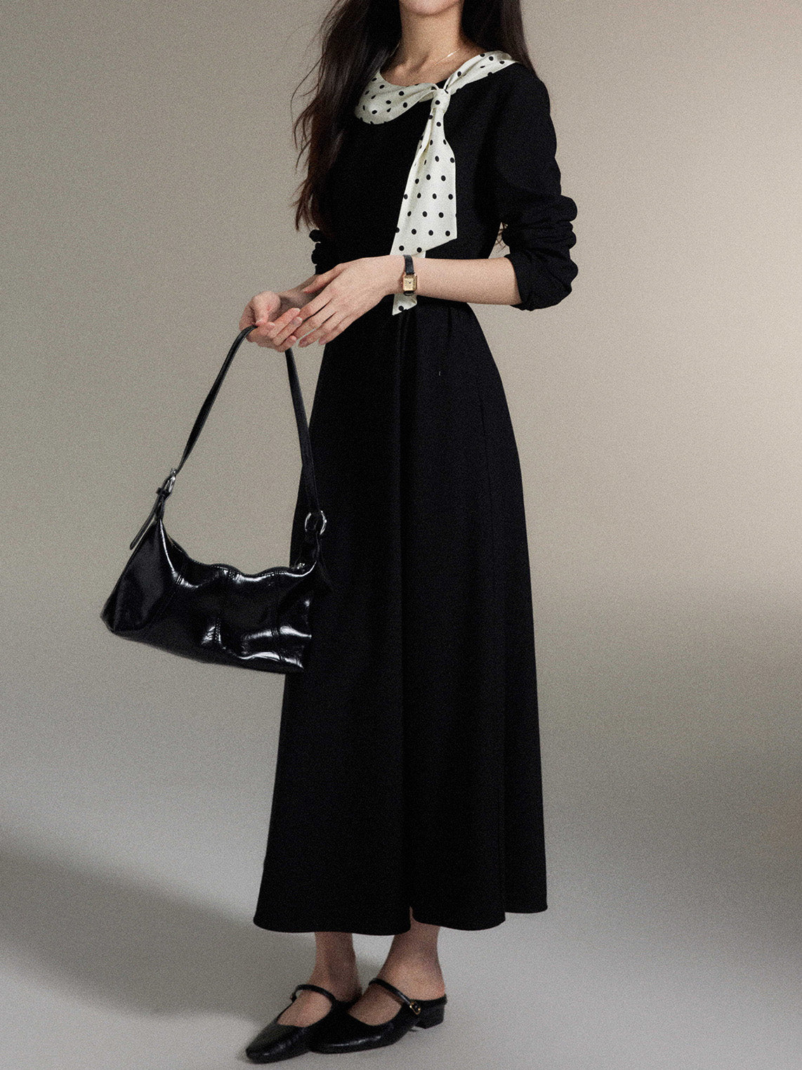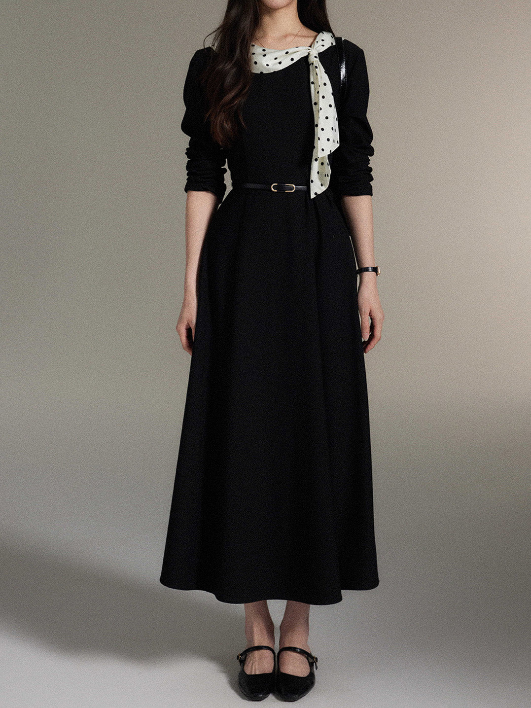 存在感のあるドットスカーフが付いていて、キチンとした印象のワンピース。