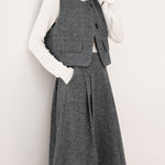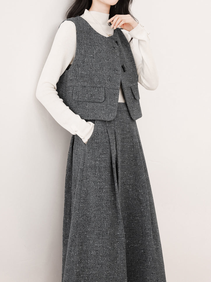 ツイードフラップポケットショートジレ<セットアップ可能>