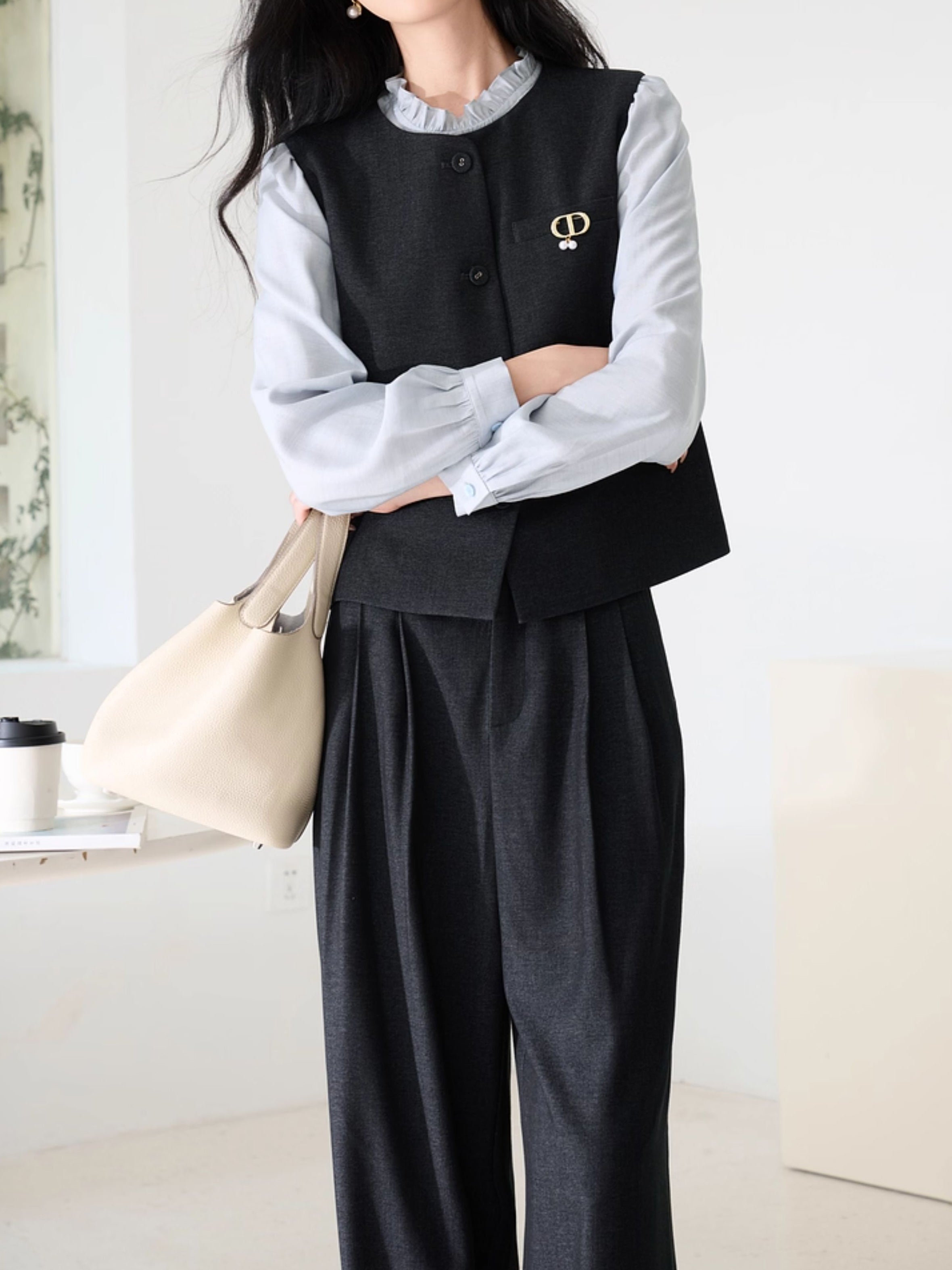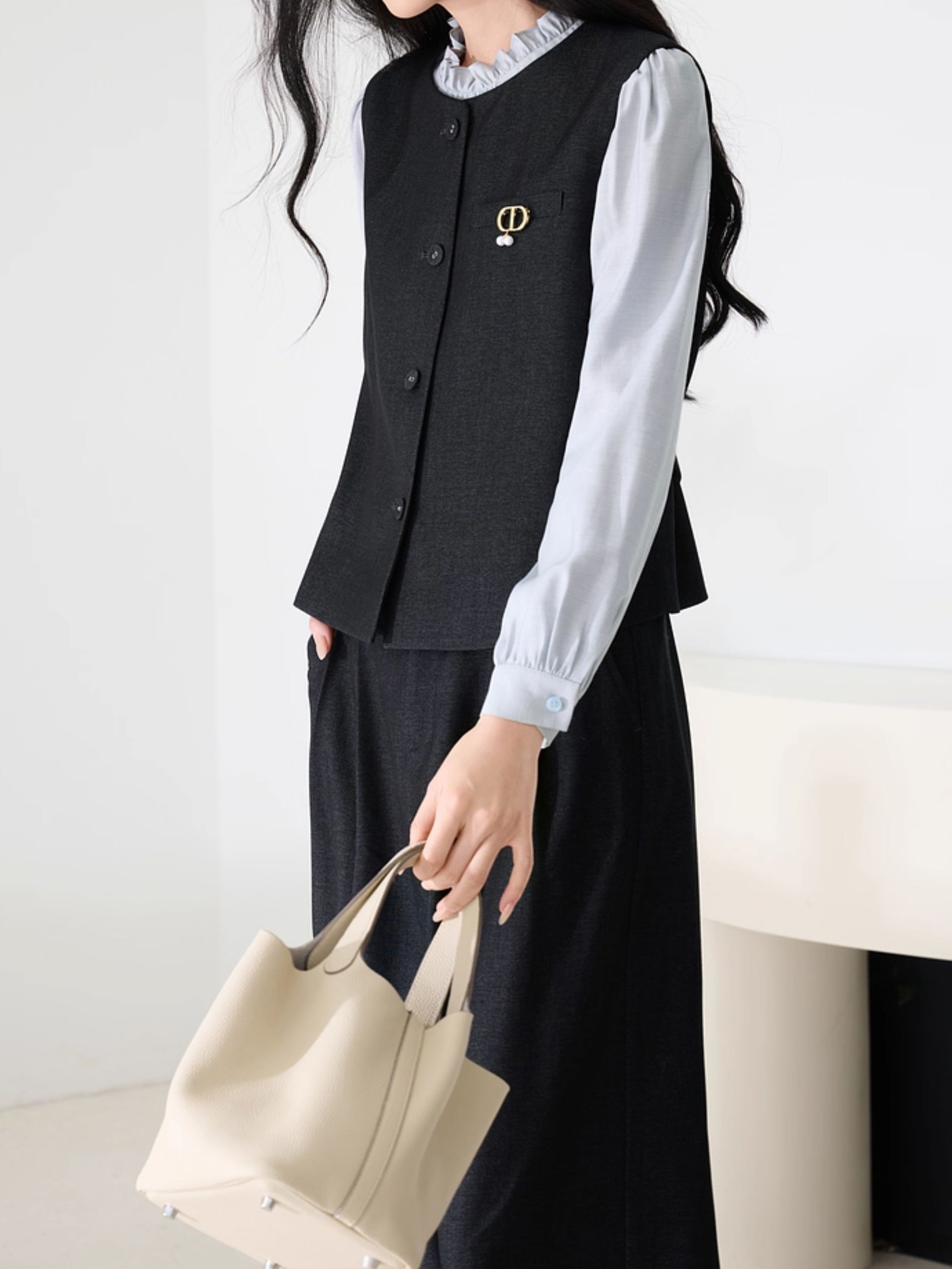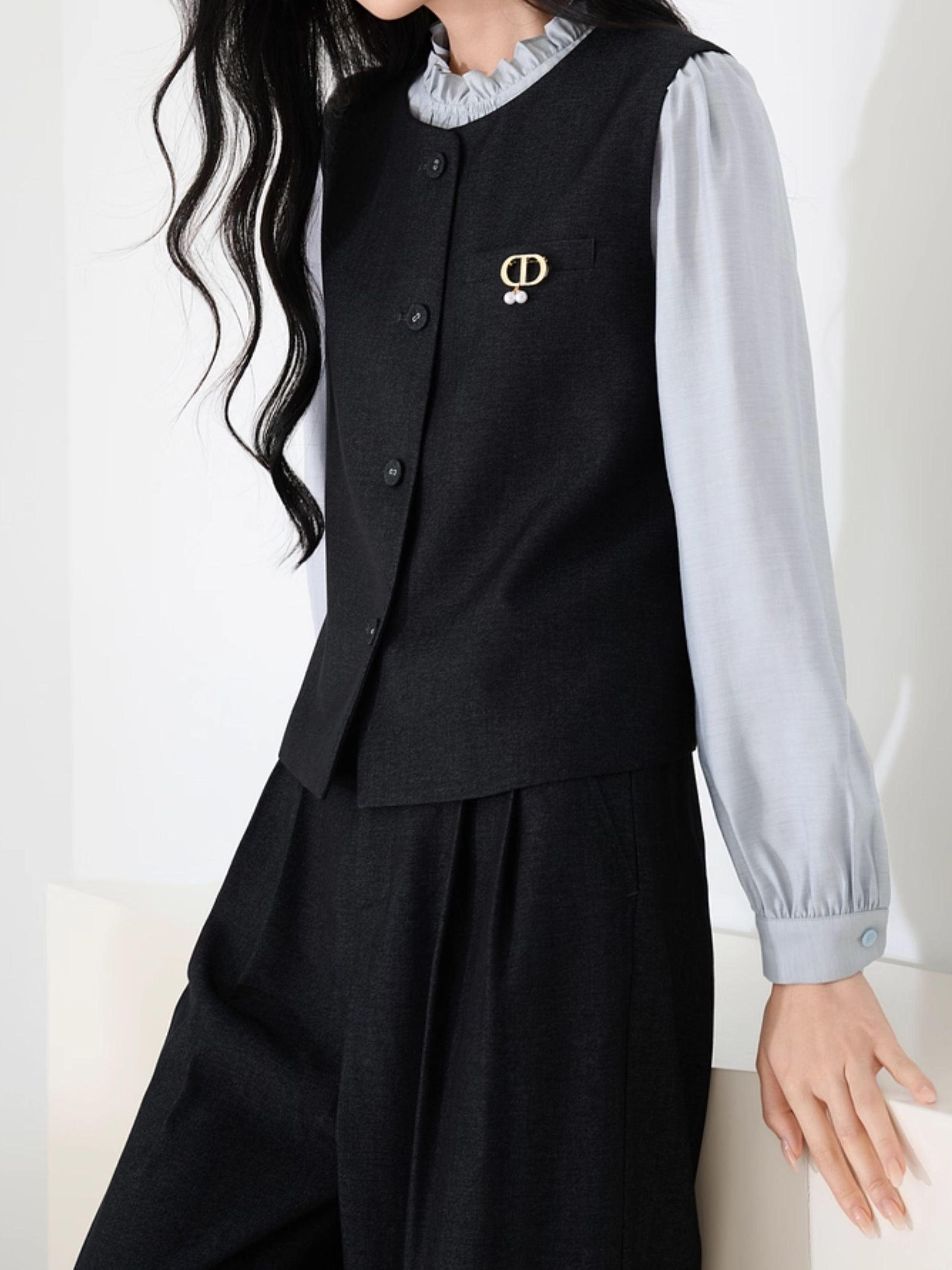 きれいめなシンプルデザインでデイリーにもオフィスカジュアルにも活躍するジレ。