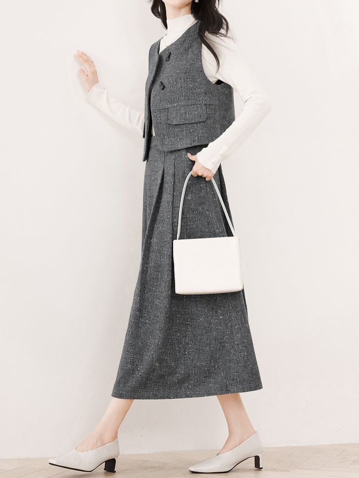 ツイードタックフレアスカート<セットアップ可能>