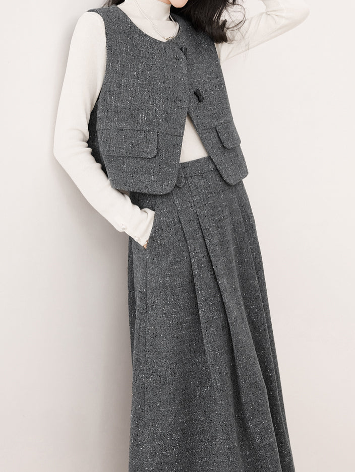 ツイードフラップポケットショートジレ<セットアップ可能>