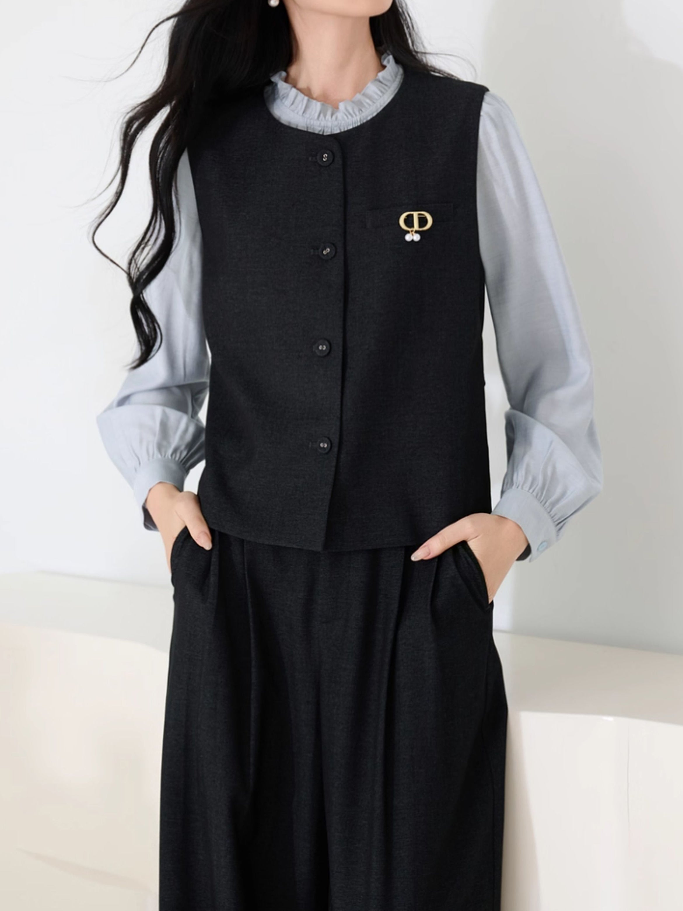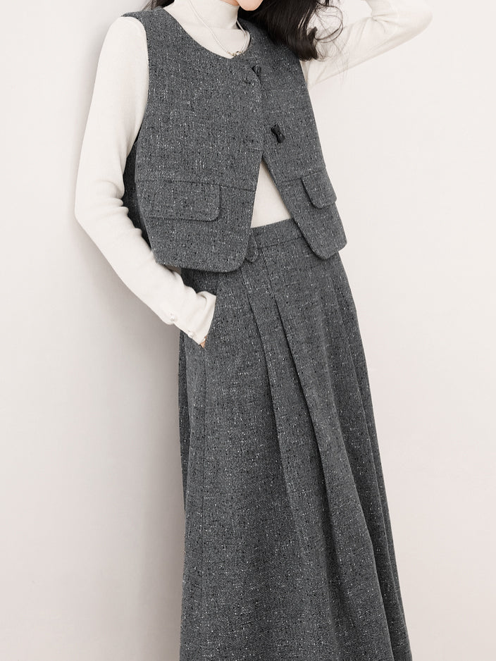 ツイードフラップポケットショートジレ<セットアップ可能>
