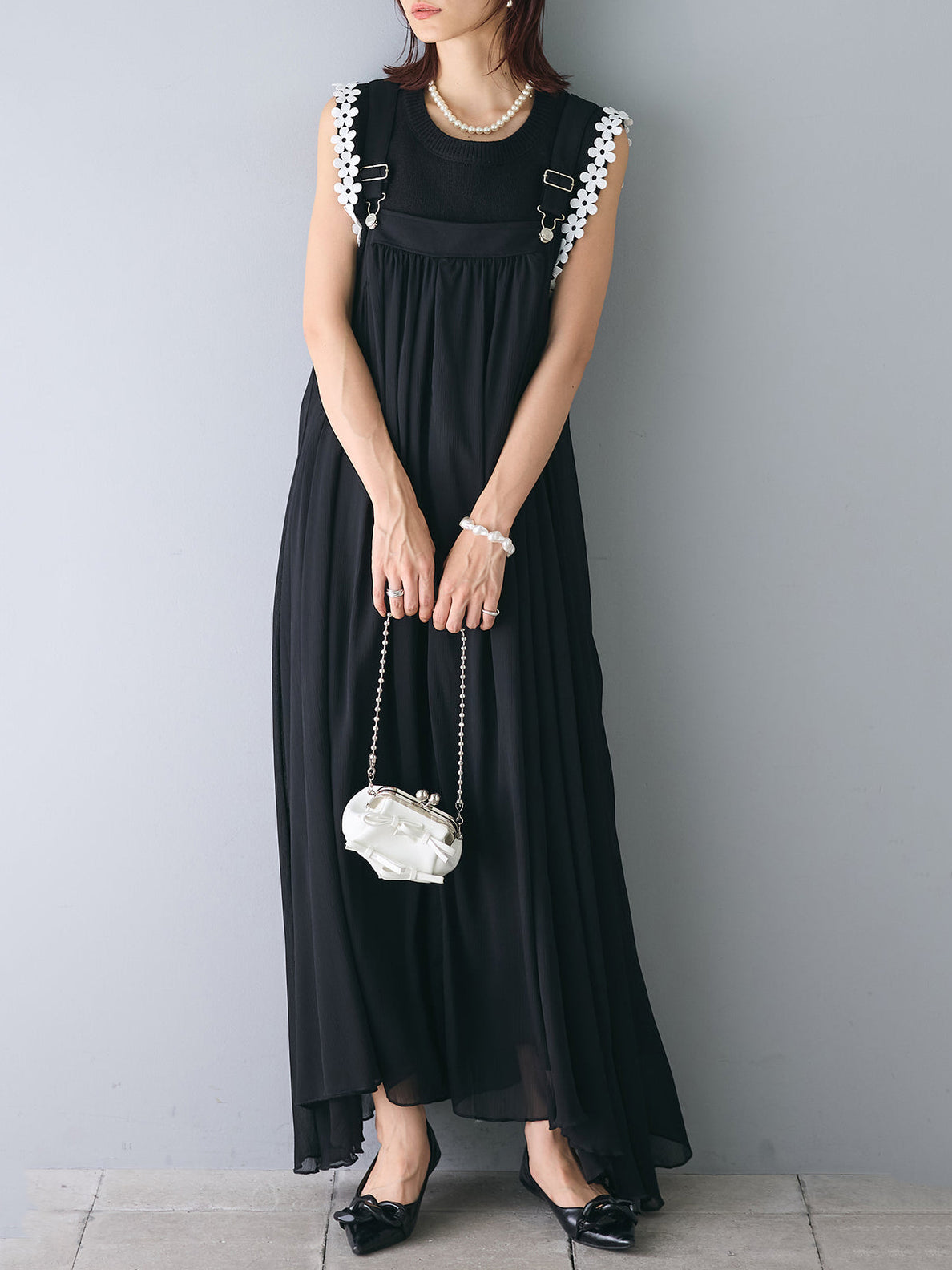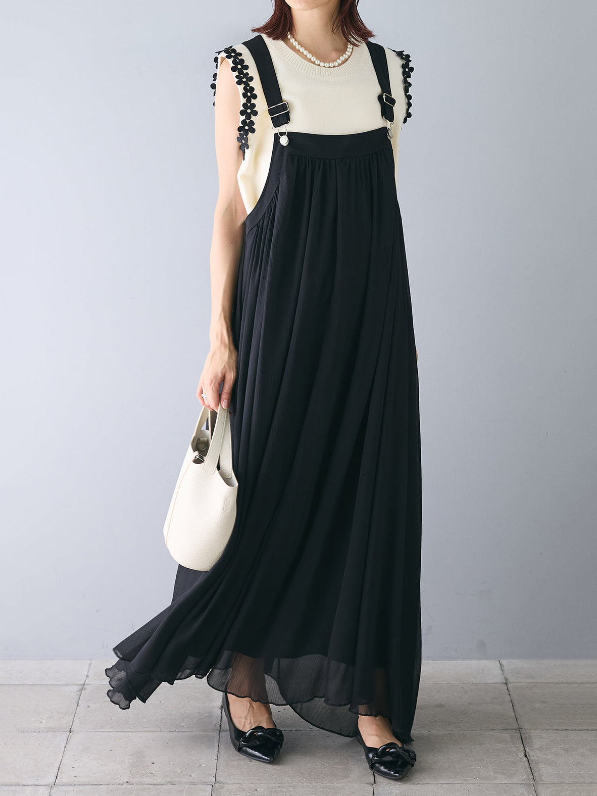 フラワーモチーフショルダーニット 2色入