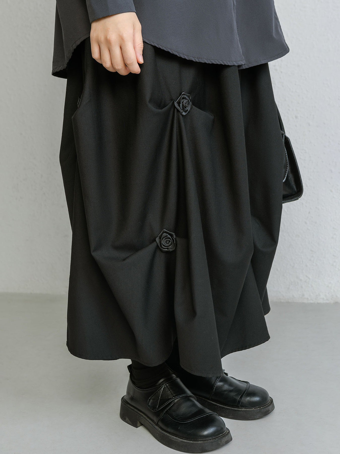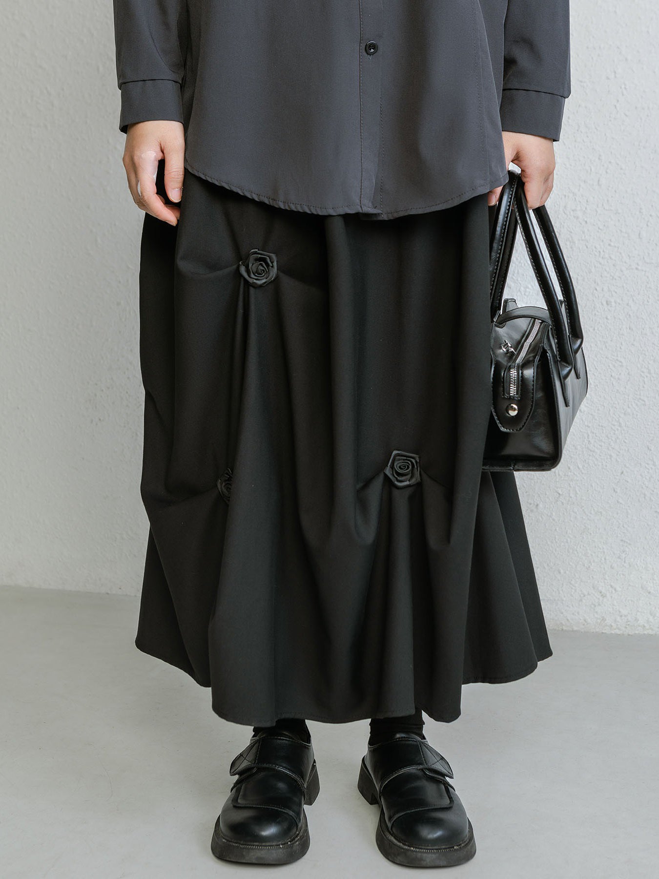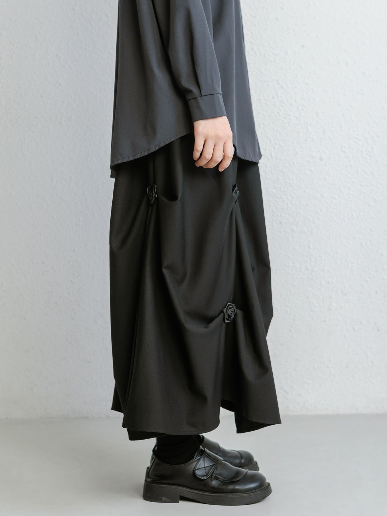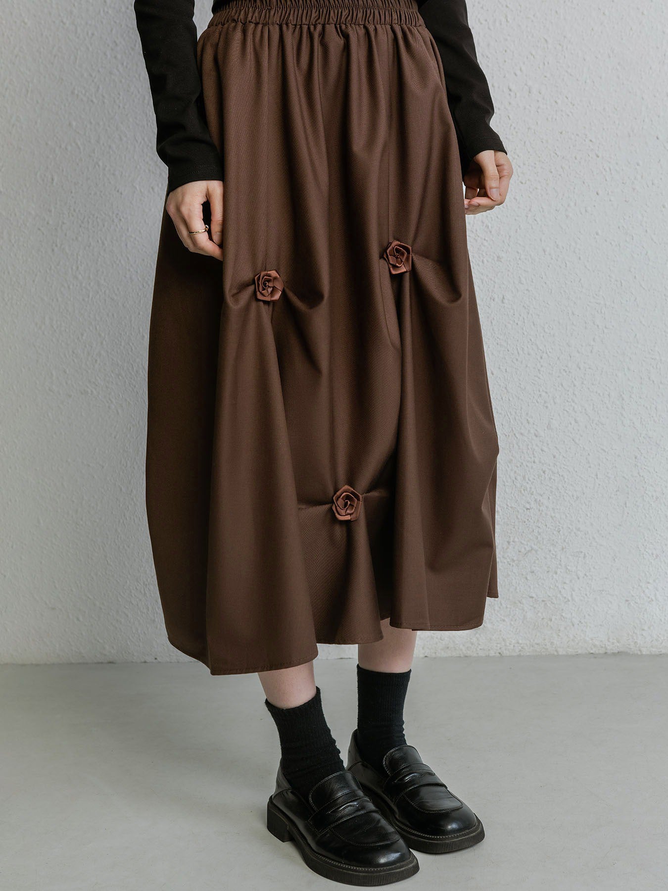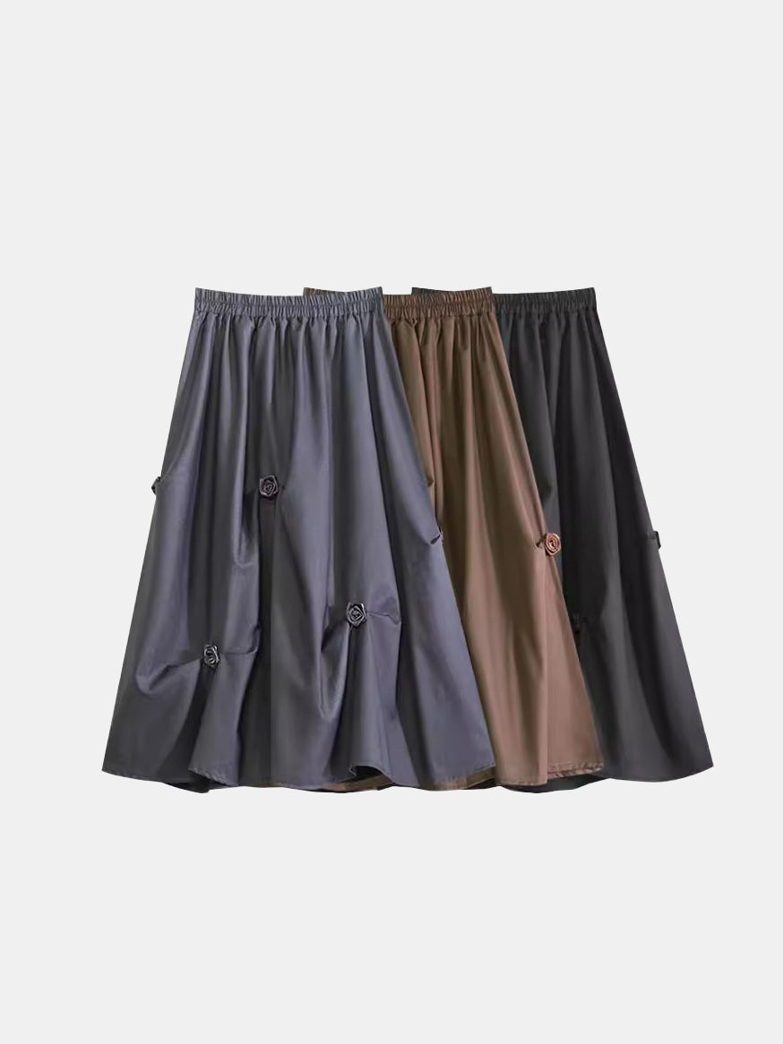 フラワー付きギャザースカート 3色入