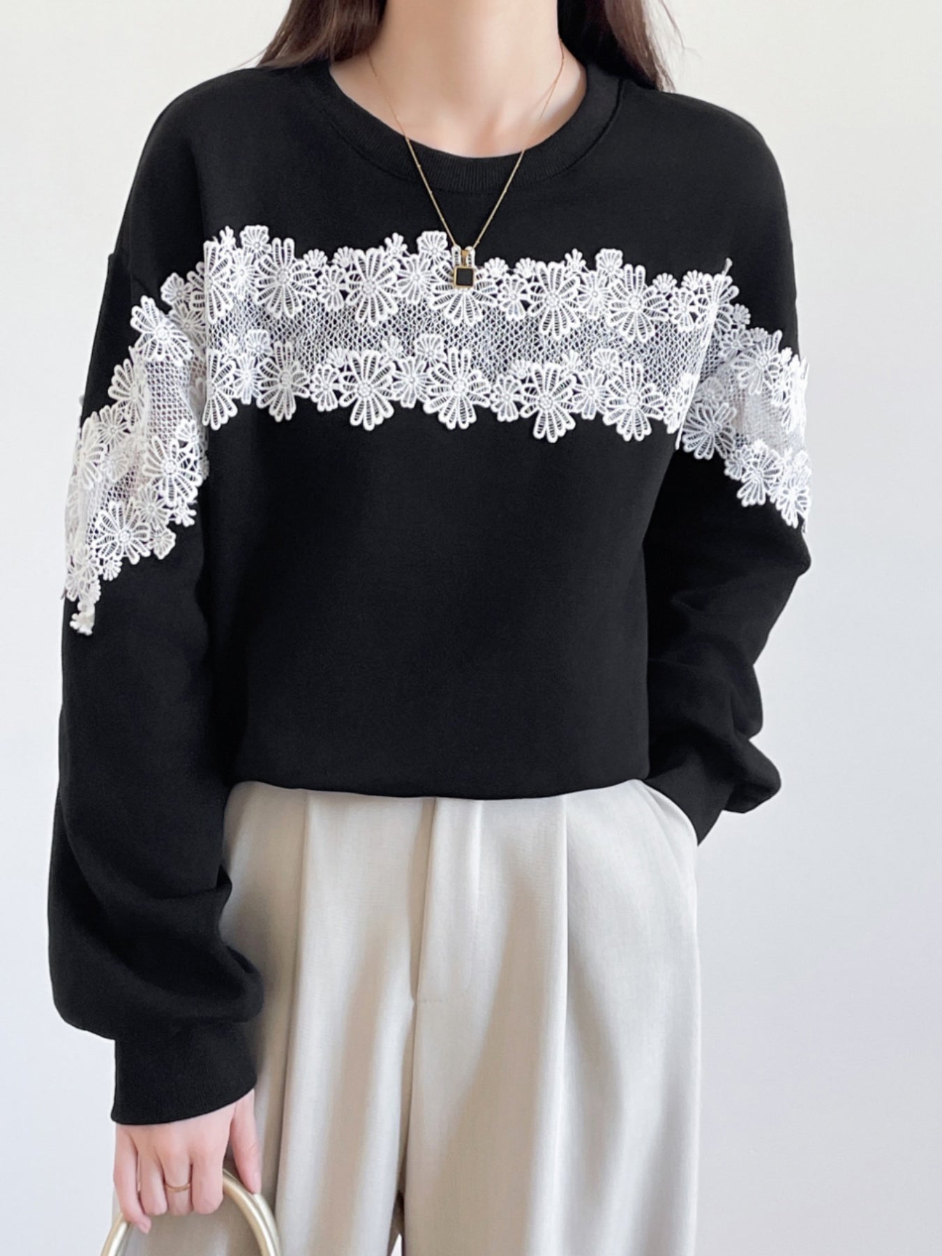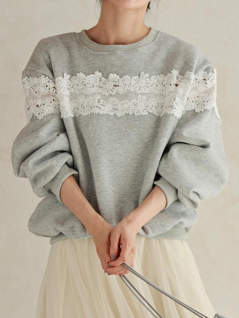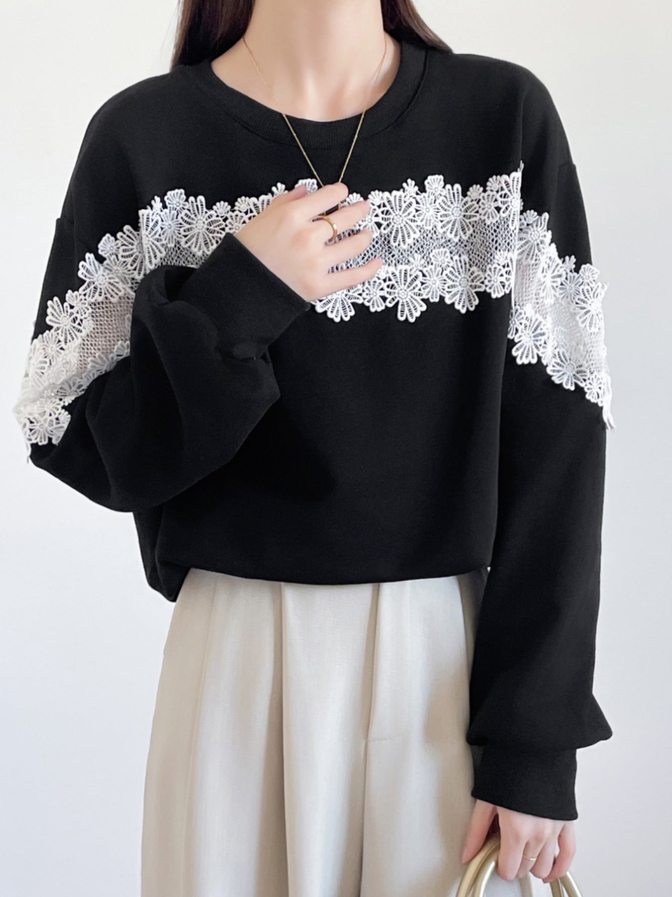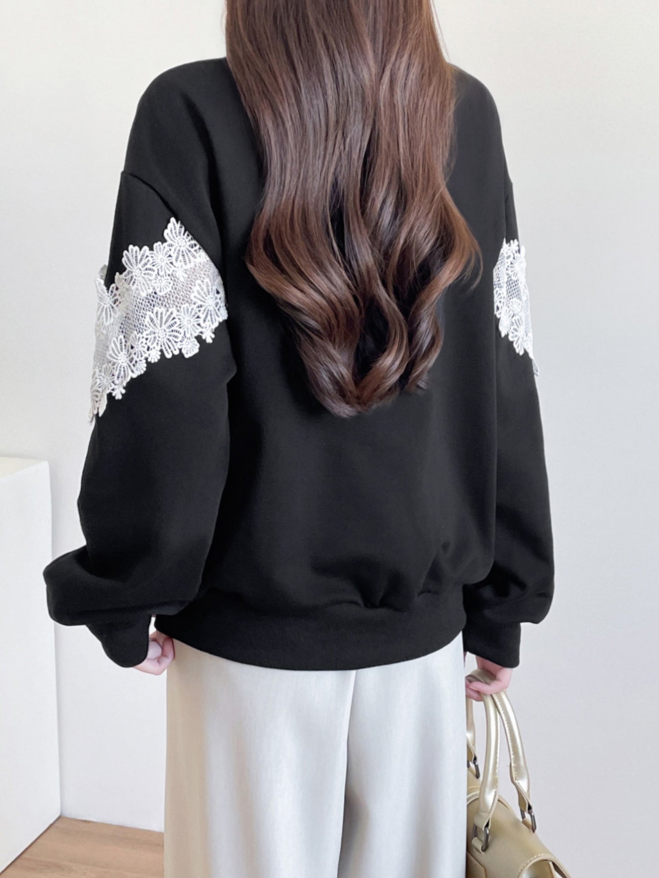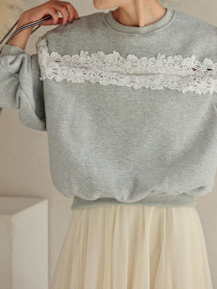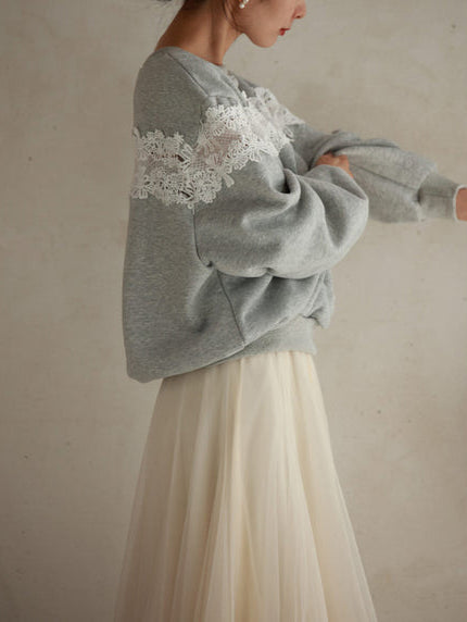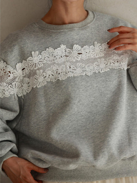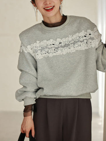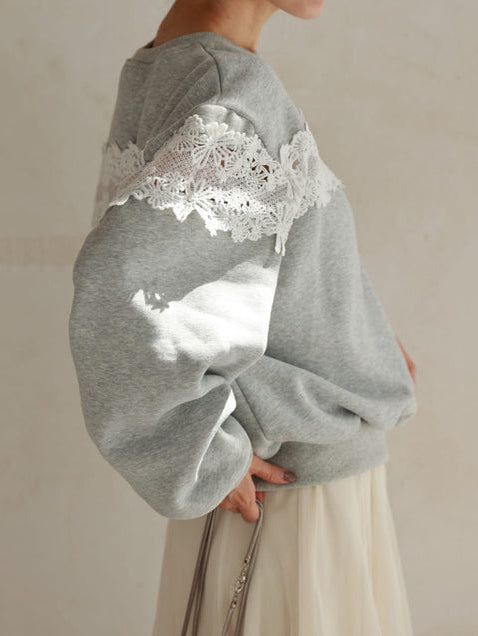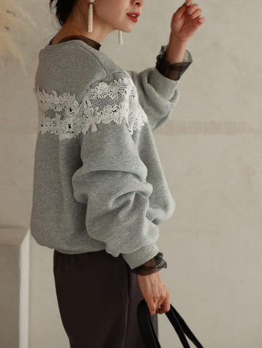 レースからちらっと除く肌がヘルシーで女性らしいスウェット。