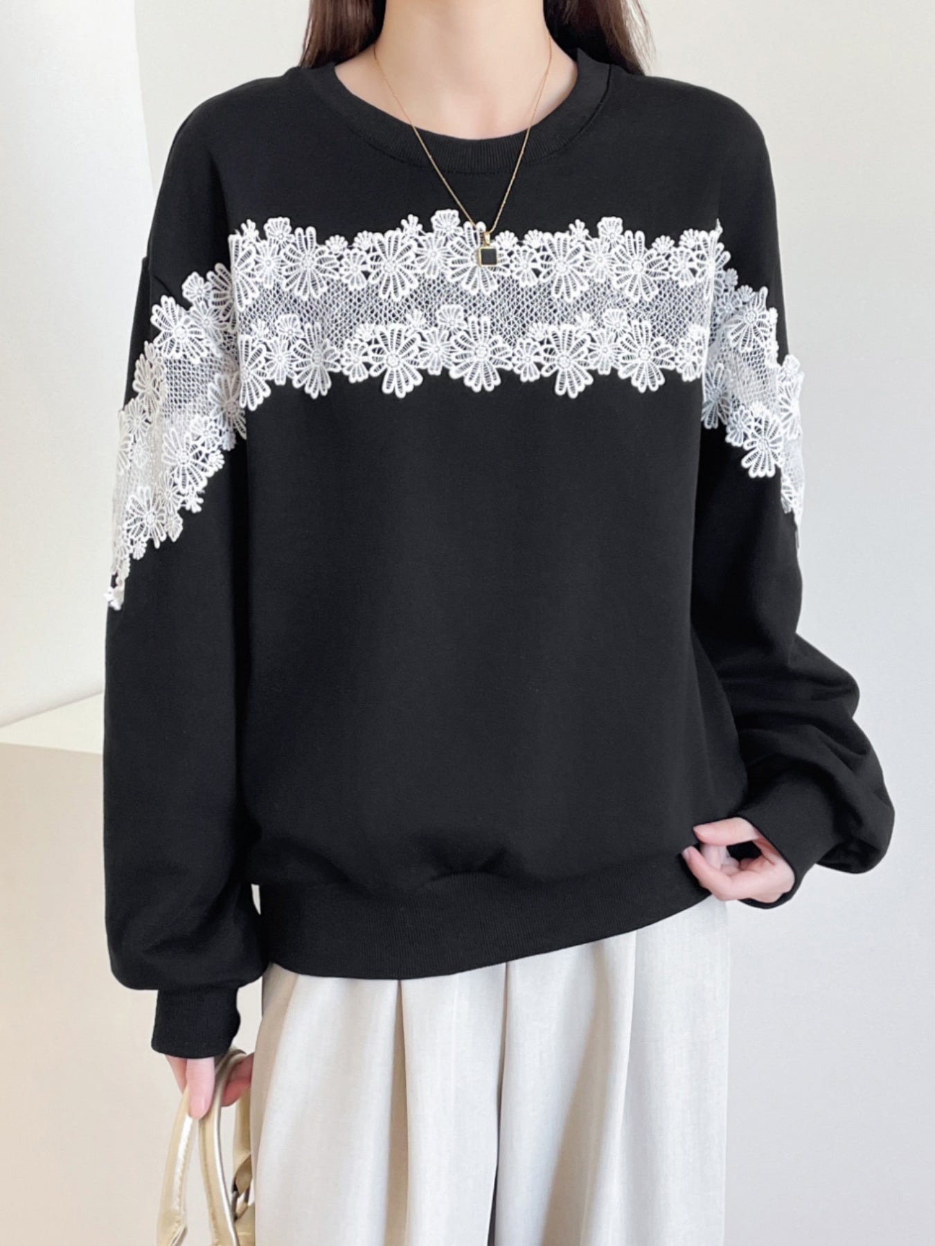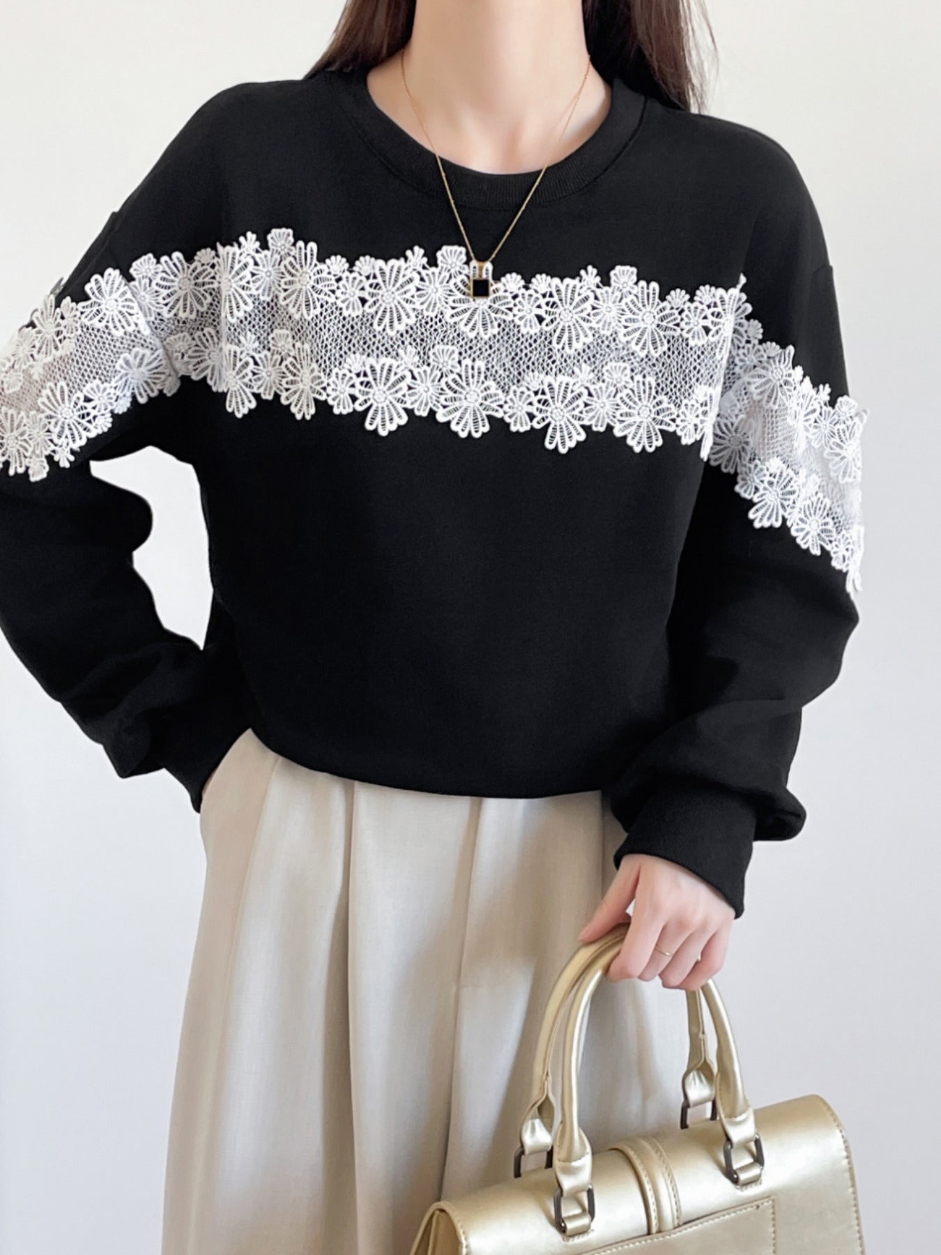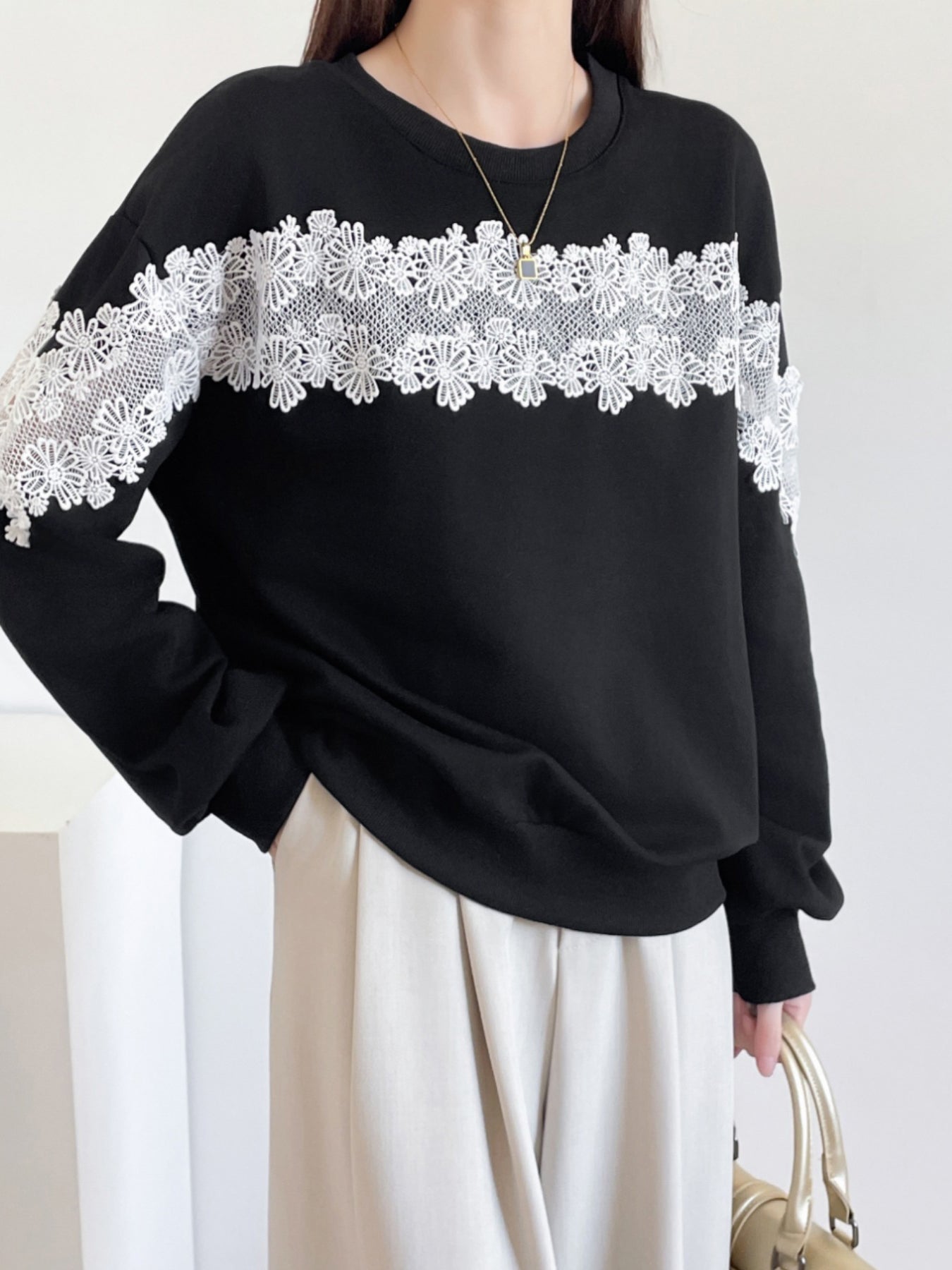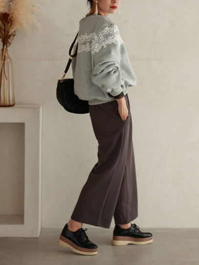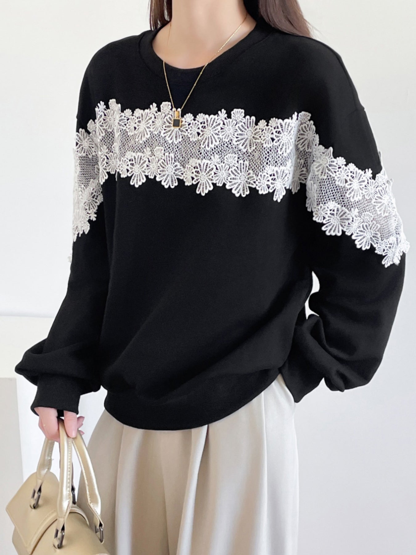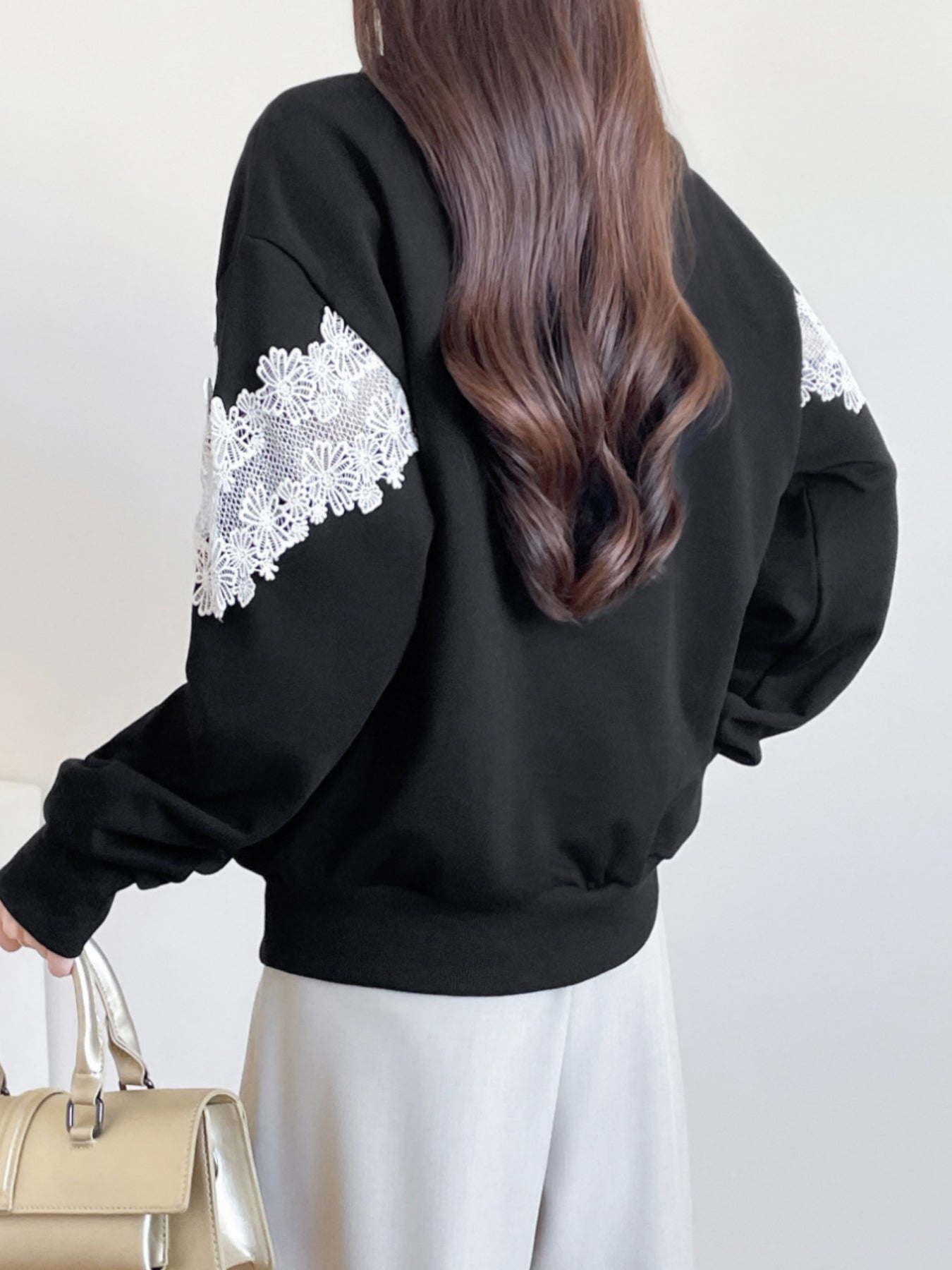レースからちらっと除く肌がヘルシーで女性らしいスウェット。