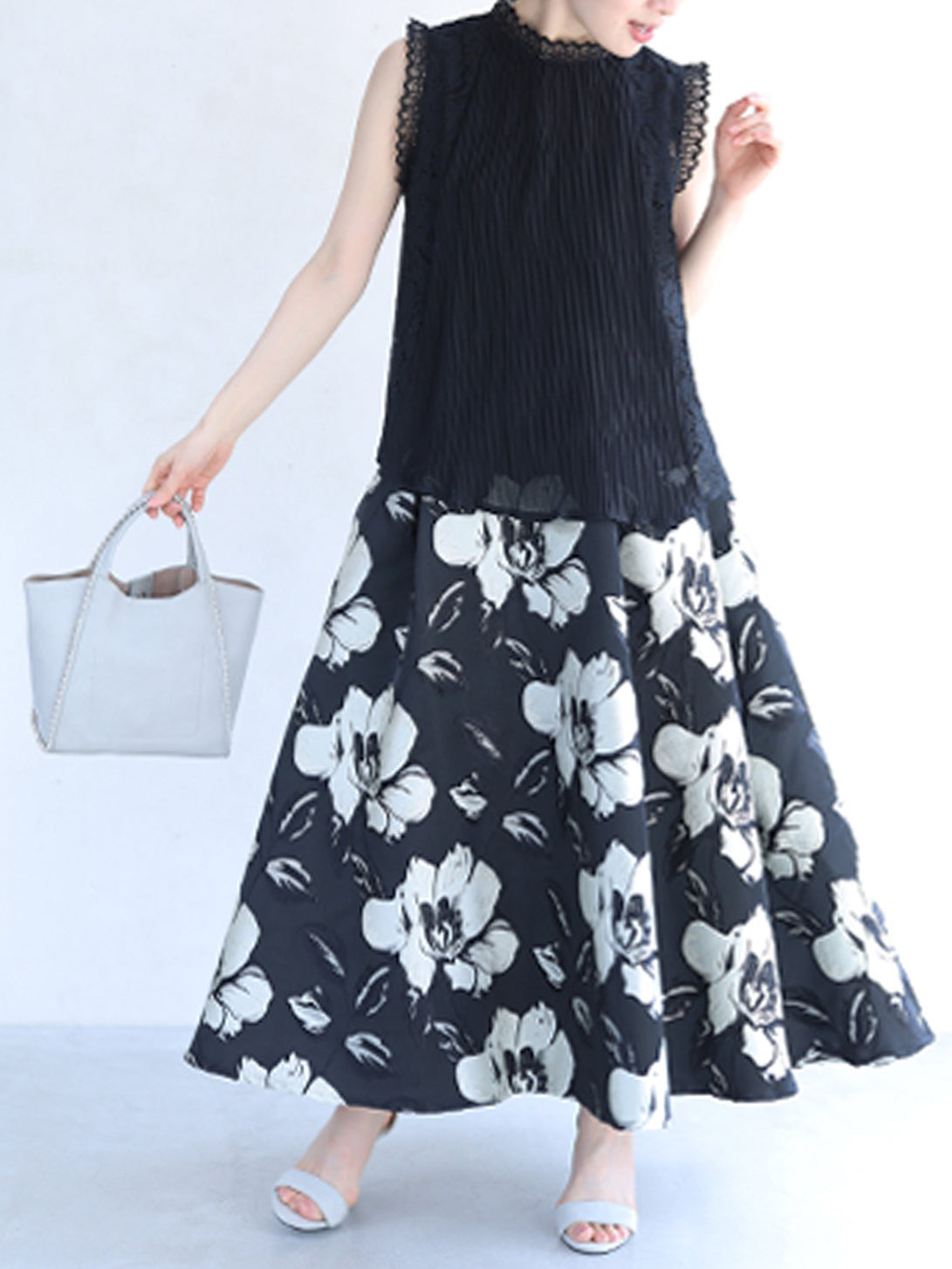 ☆真ん中部分は縦ラインのプリーツ仕様なので縦長効果を生みスッキリとみせてくれます。