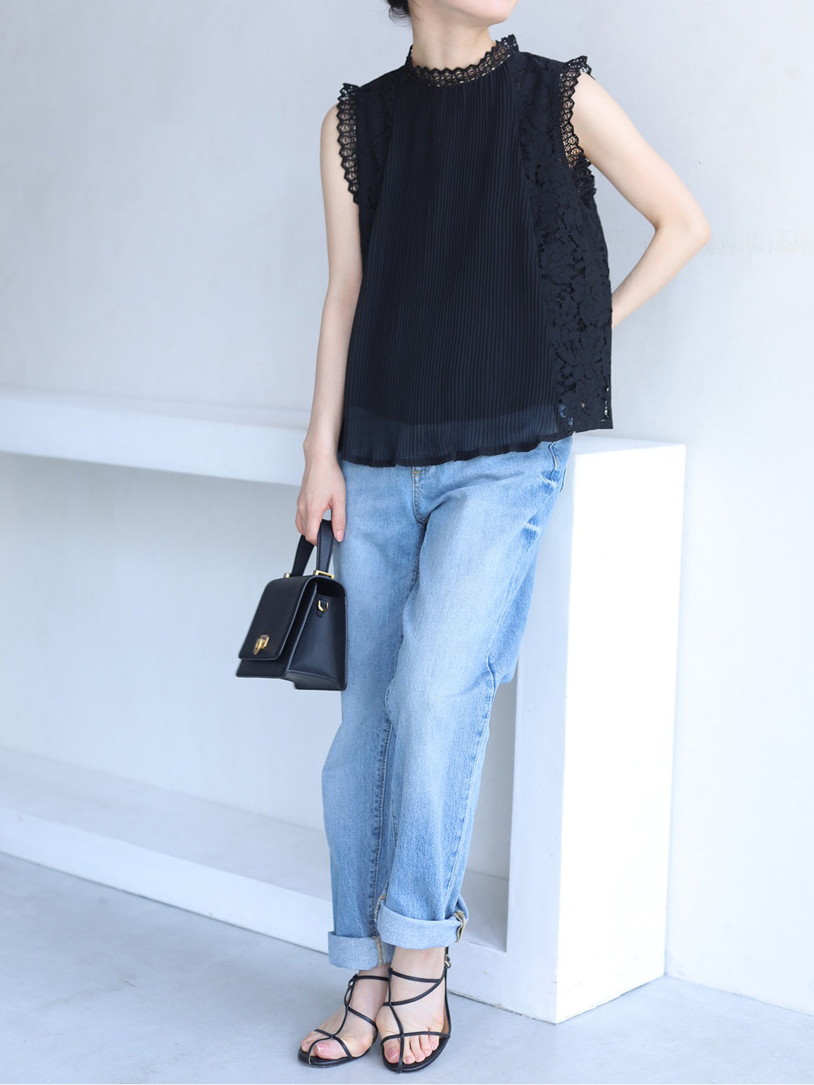 全て解消しました!首元、袖口はレースで露出をカモフラージュし、脇肉もしっかりガード。