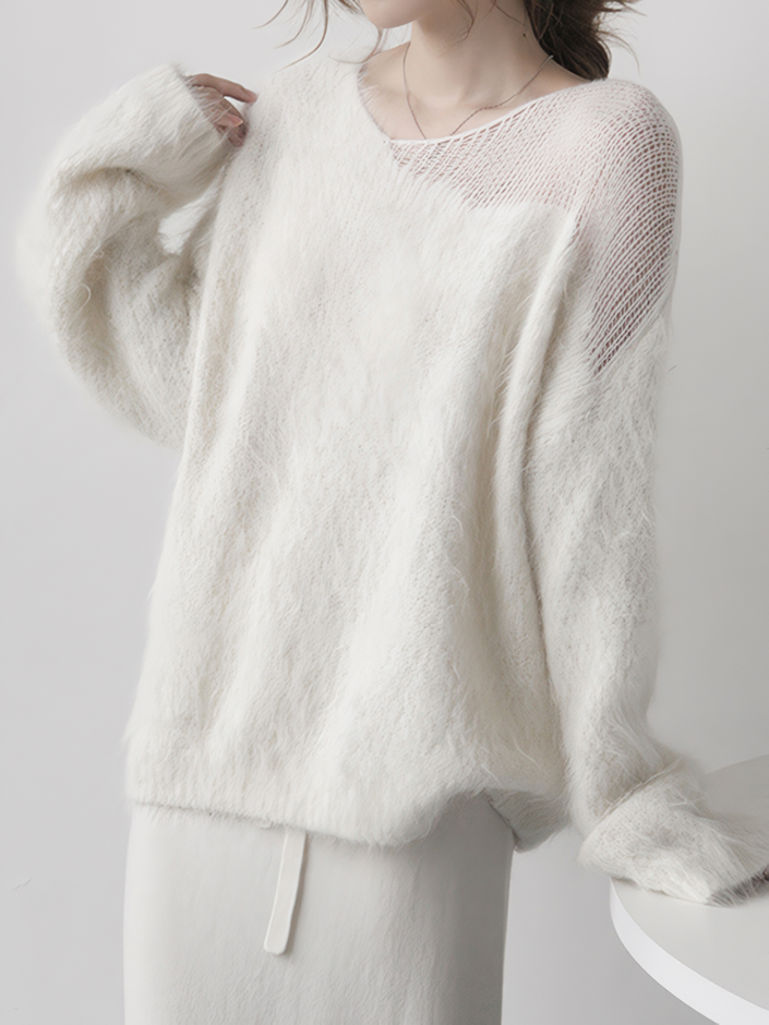 ふんわりと優しいさとゆるっとしたシルエットで、着るだけで季節感漂う大人のフェミニンニット。