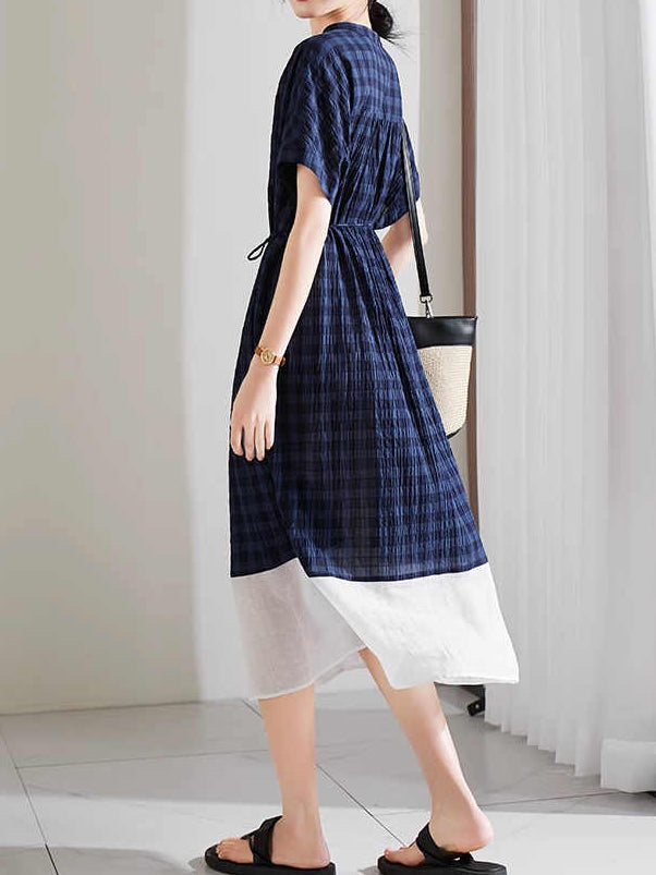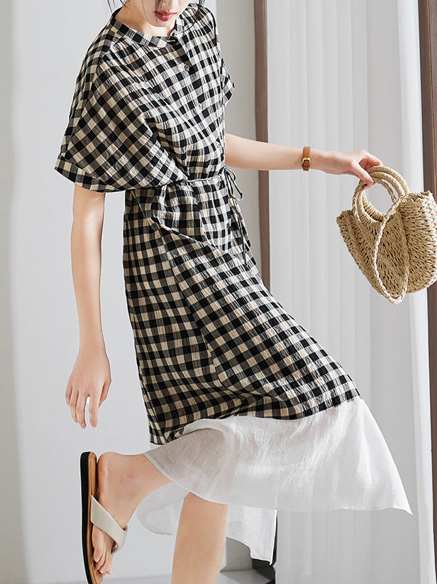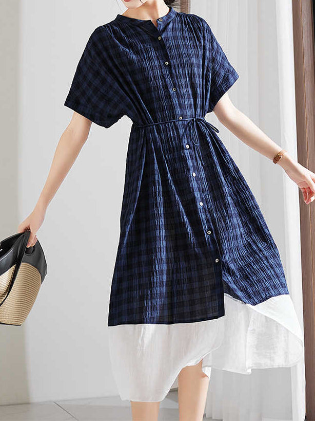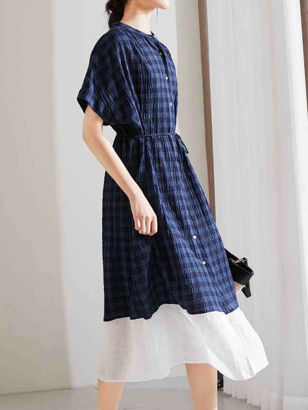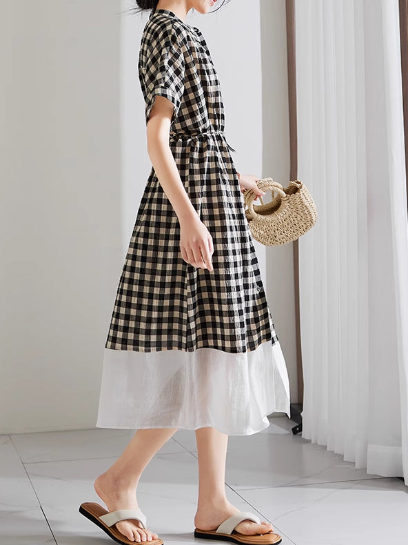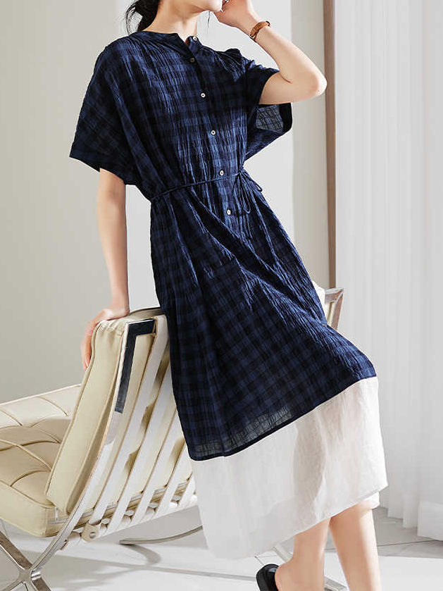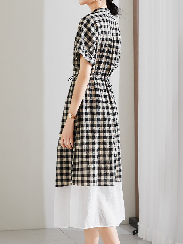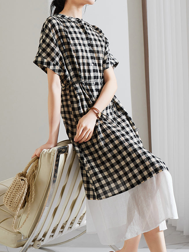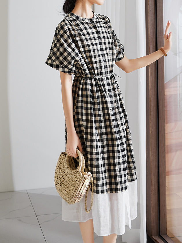 クラシカルなチェック柄に、バンドカラーが程よいきちんと感をプラスしたワンピース。