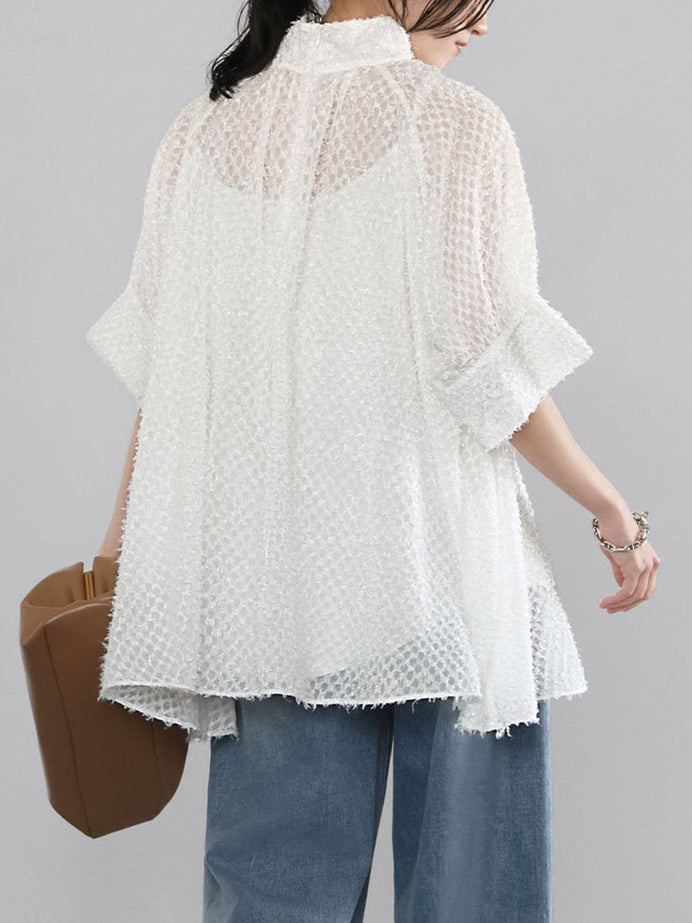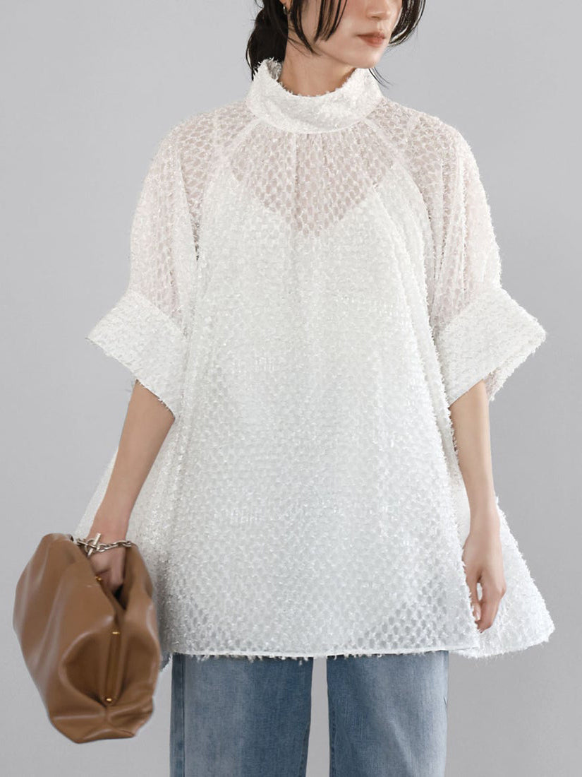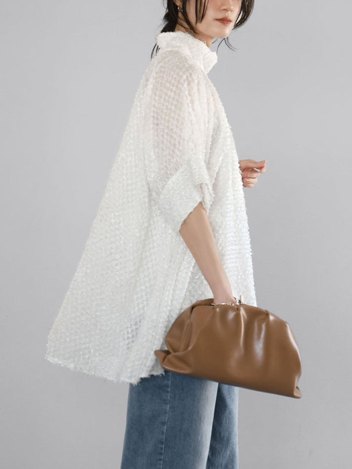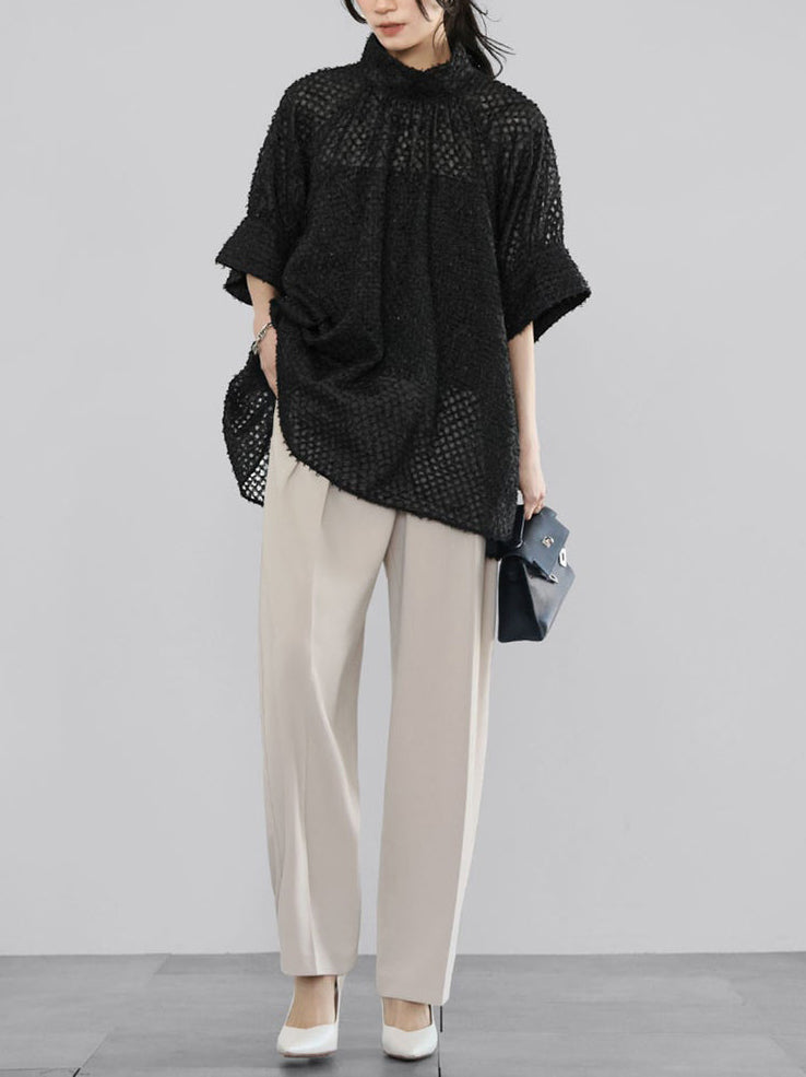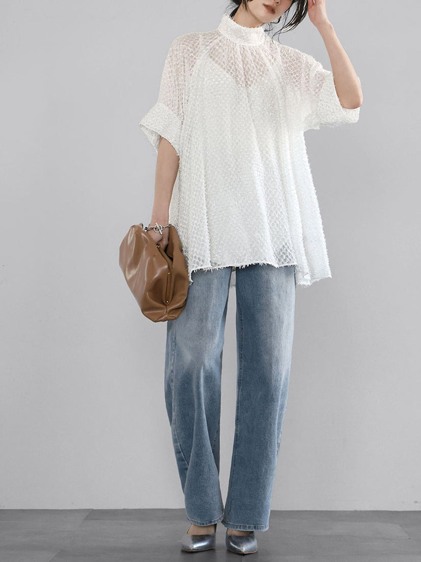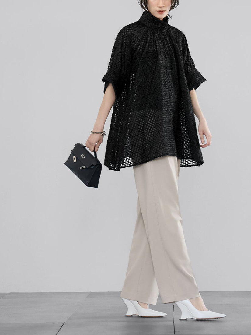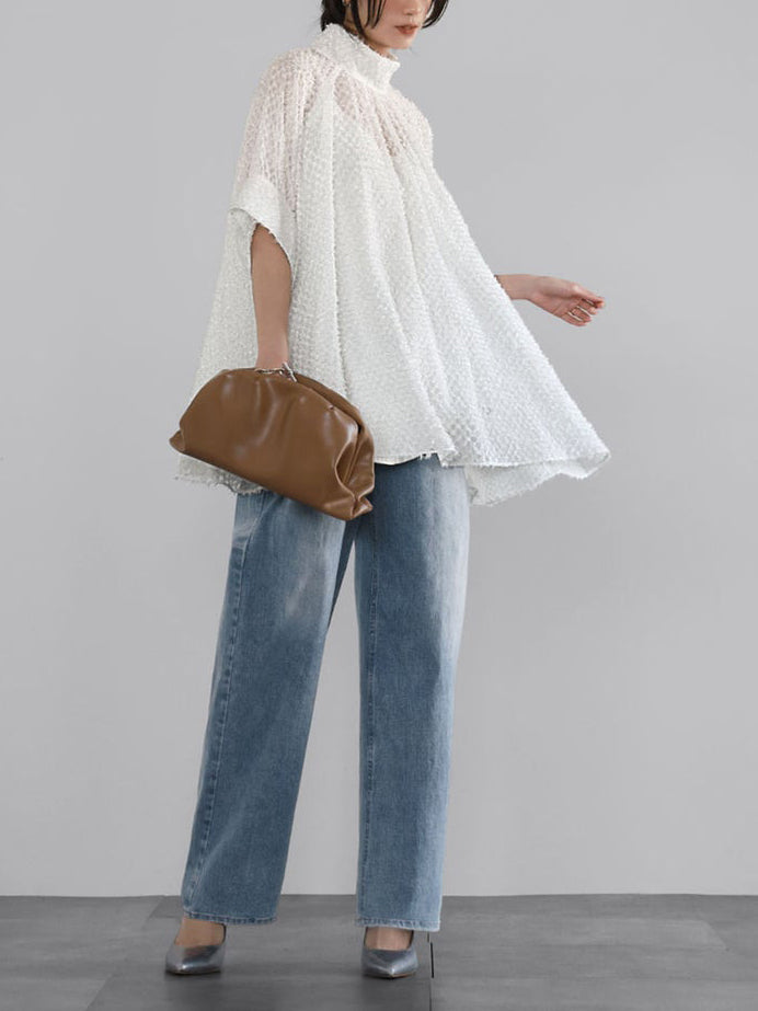 シアー感のある生地でワントーンコーデでも抜け感のあるスタイルをお楽しみいただけます。