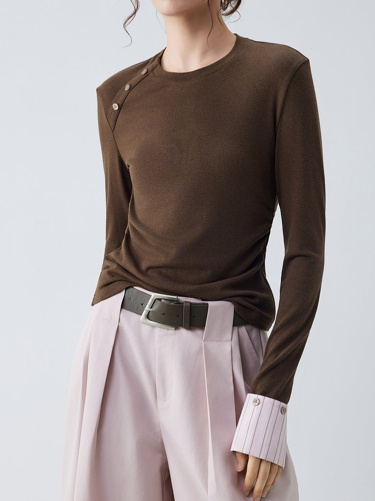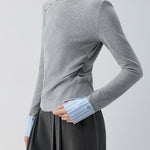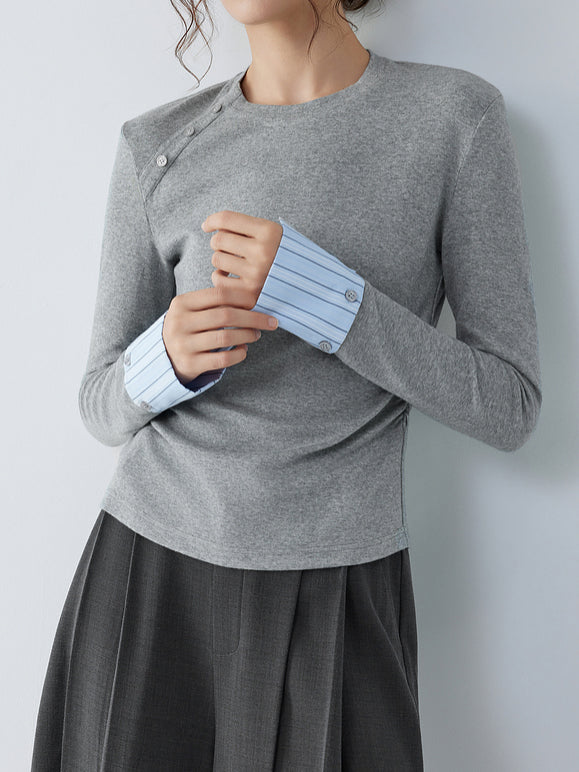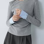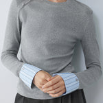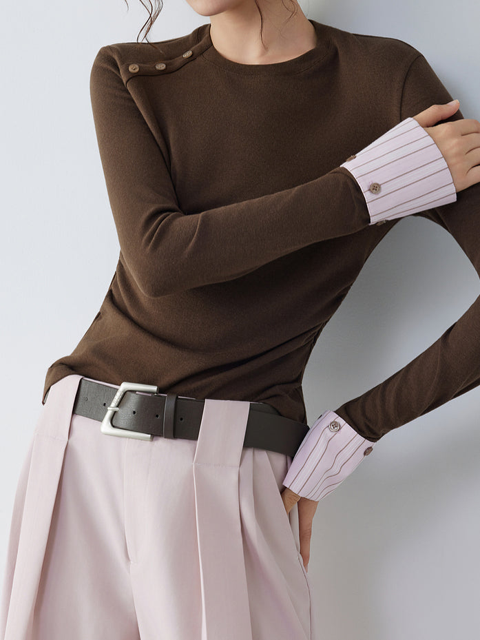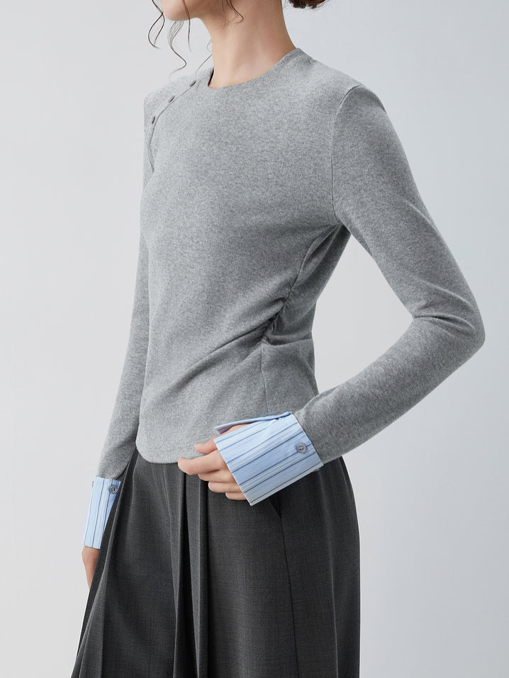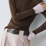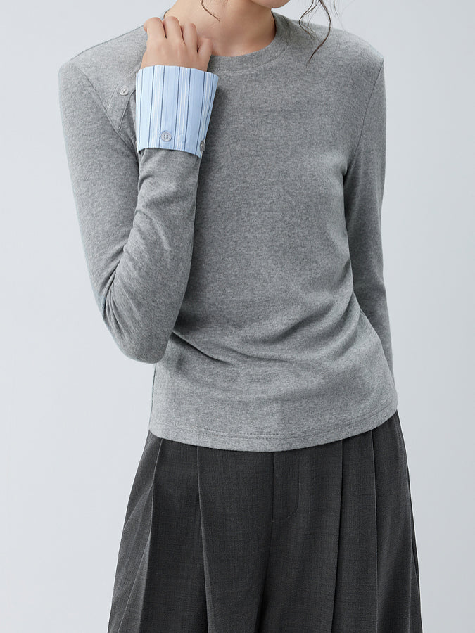 袖口にストライプカフスを施され、シャツの要素を加えた雰囲気をアレンジします。