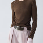 アシンメトリーの目を引くデザインで着映え間違いなしカットソー。