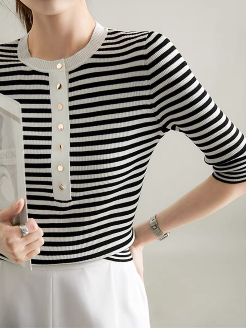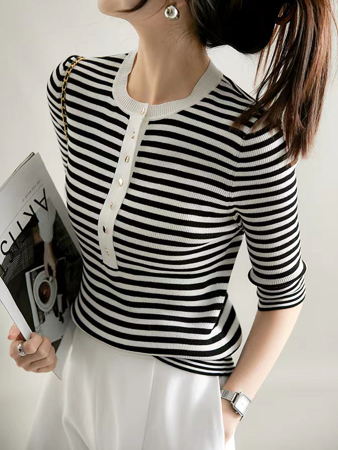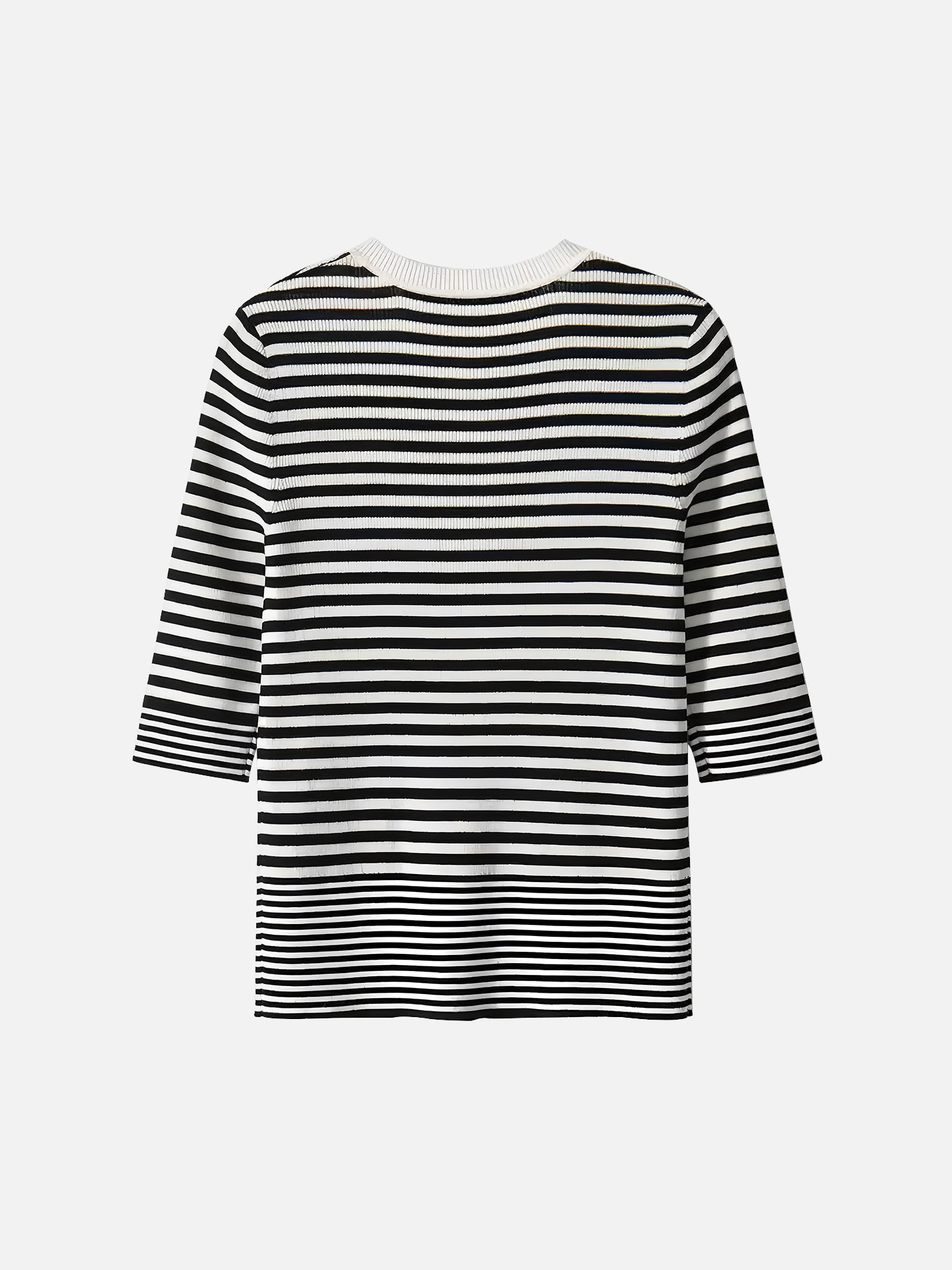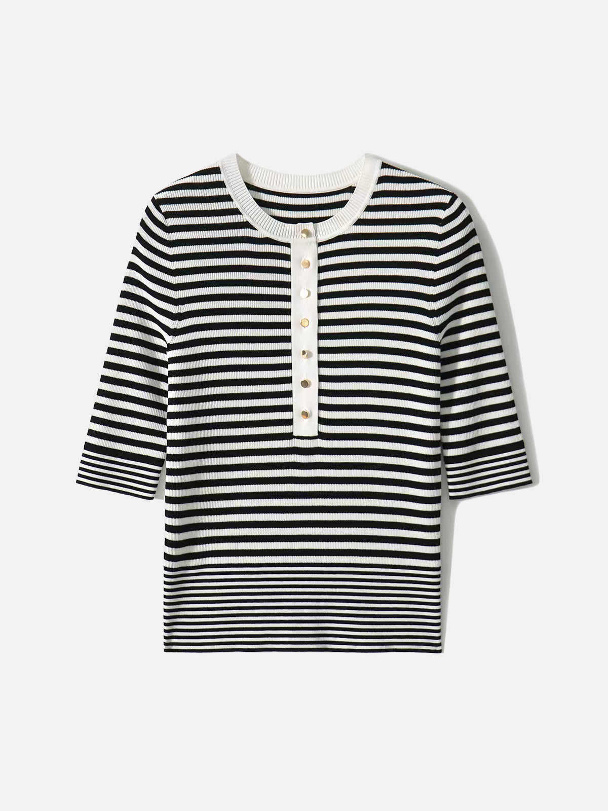 人気のポロカラー×ボーダー柄が今シーズンに上品な半袖ニット。