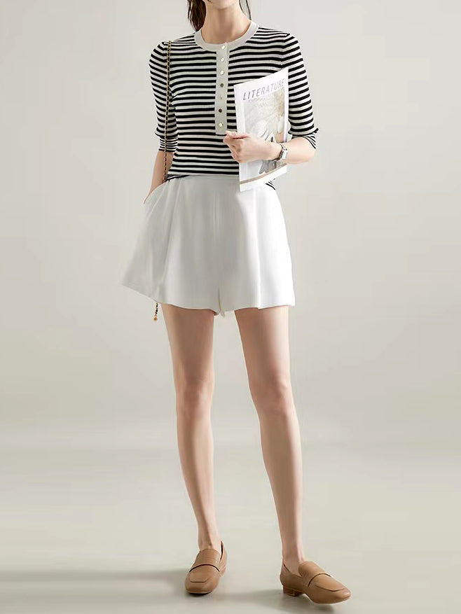 夏のに欠かせないニットトップスは大人カジュアルにはマストな1枚。