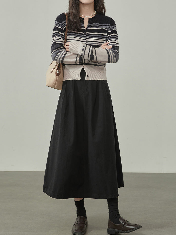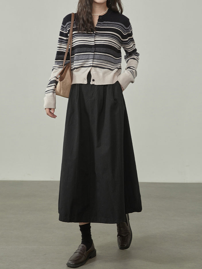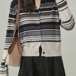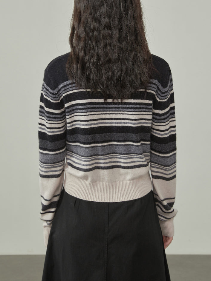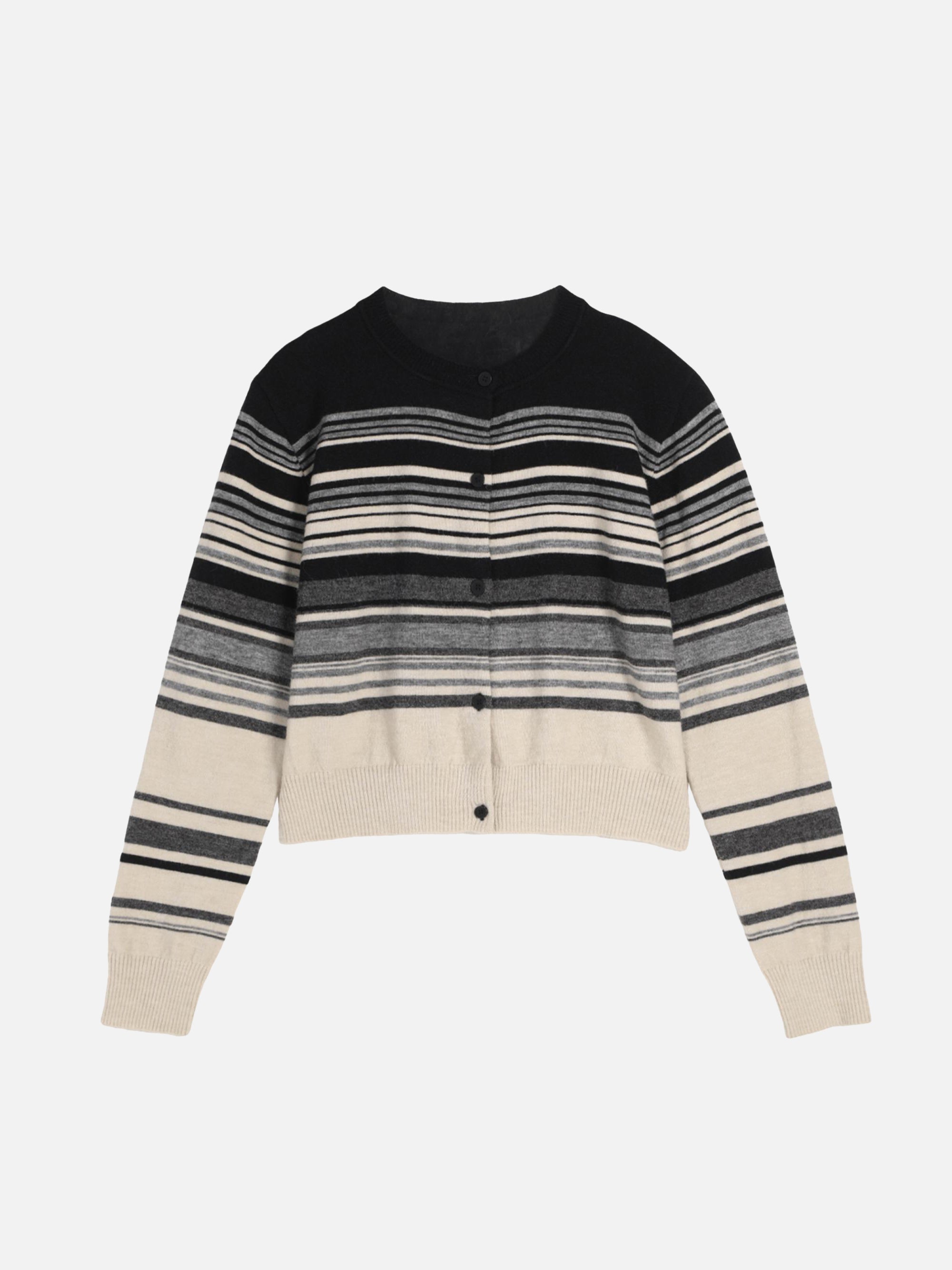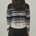 リズムデザインのボーダー柄が印象的なカーディガン。