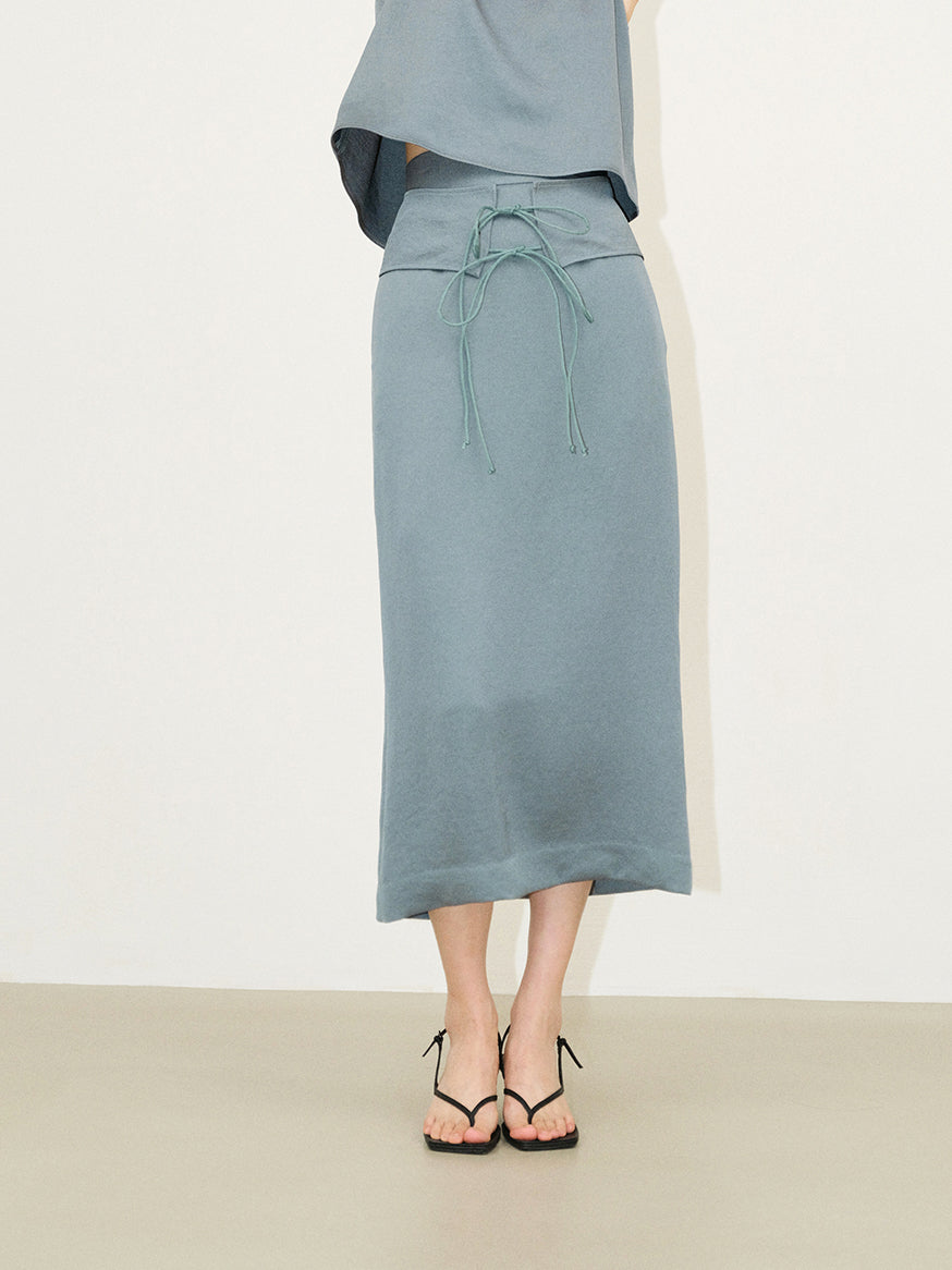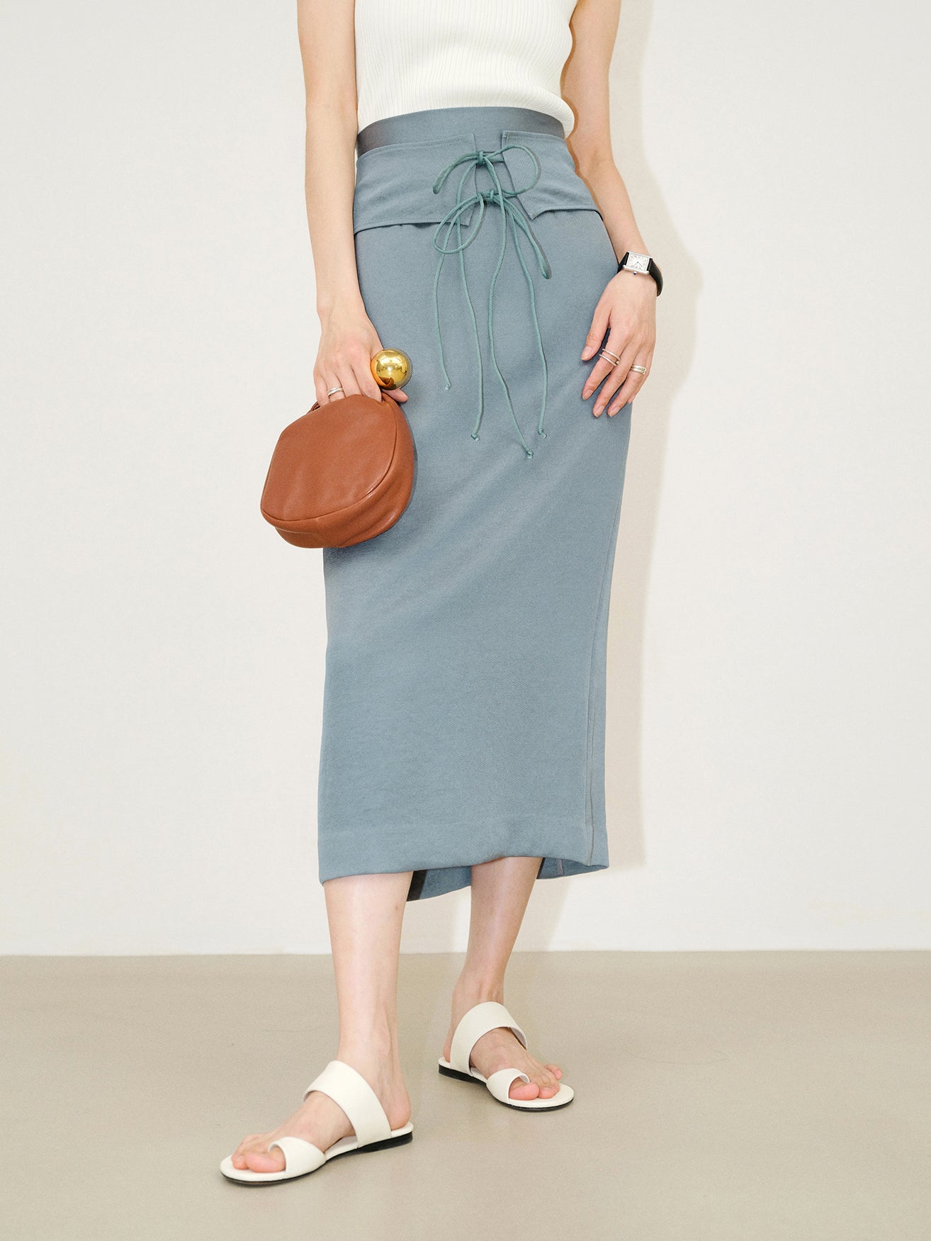 フロントのレースアップデザインがトレンド感のあるナロースカート。
