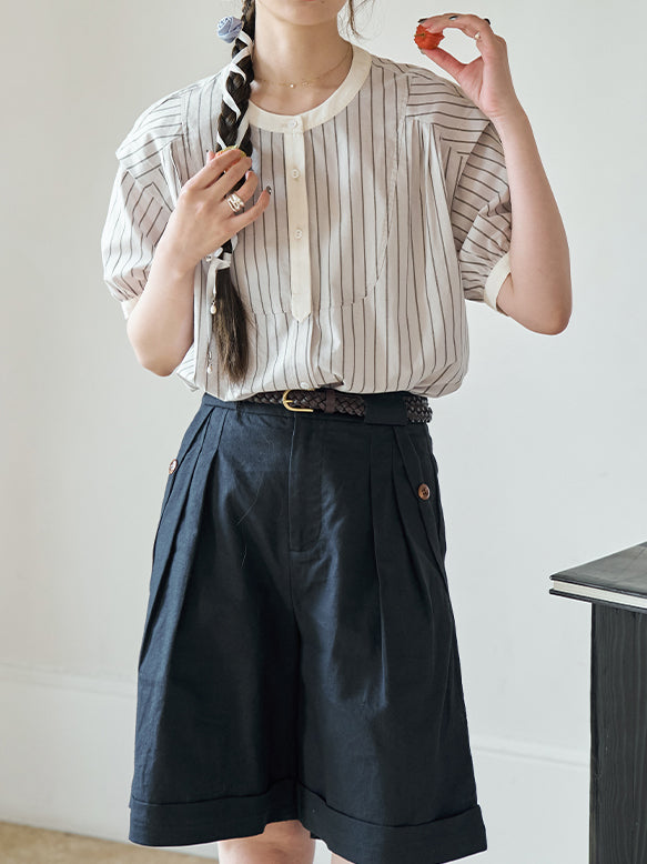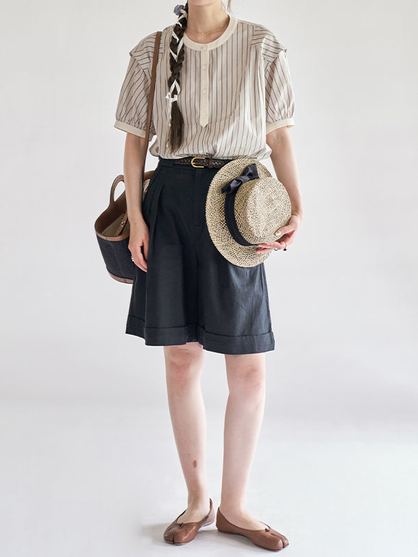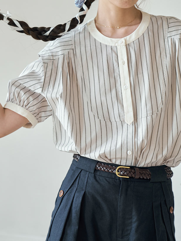Cleric puff sleeve striped blouse