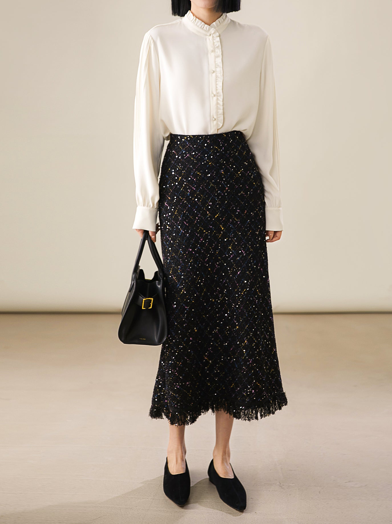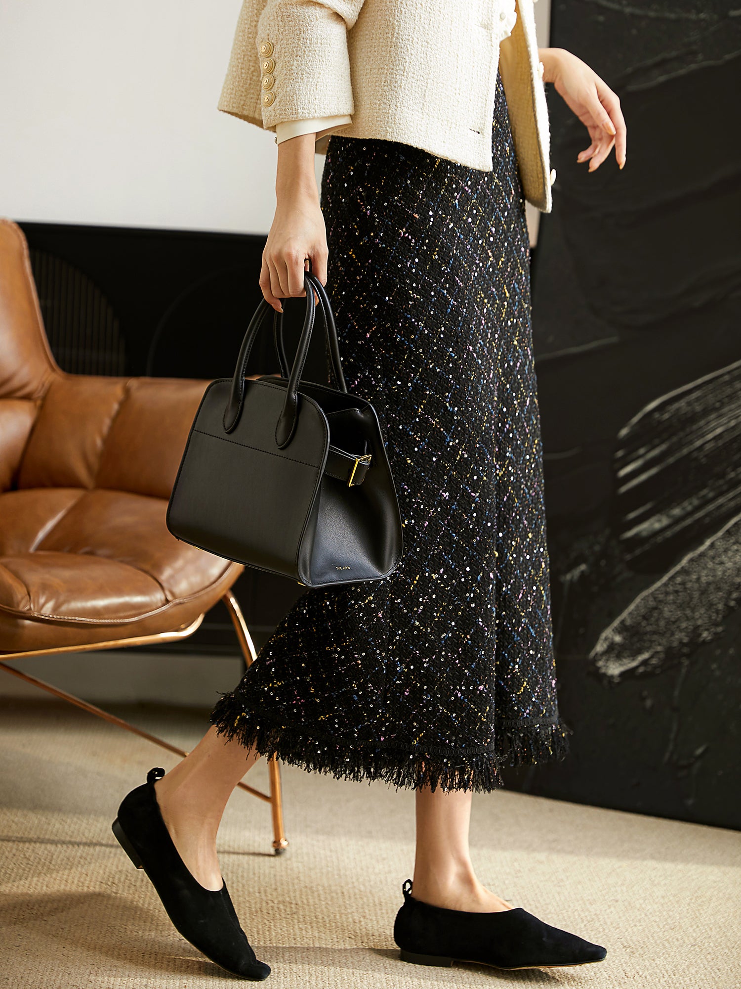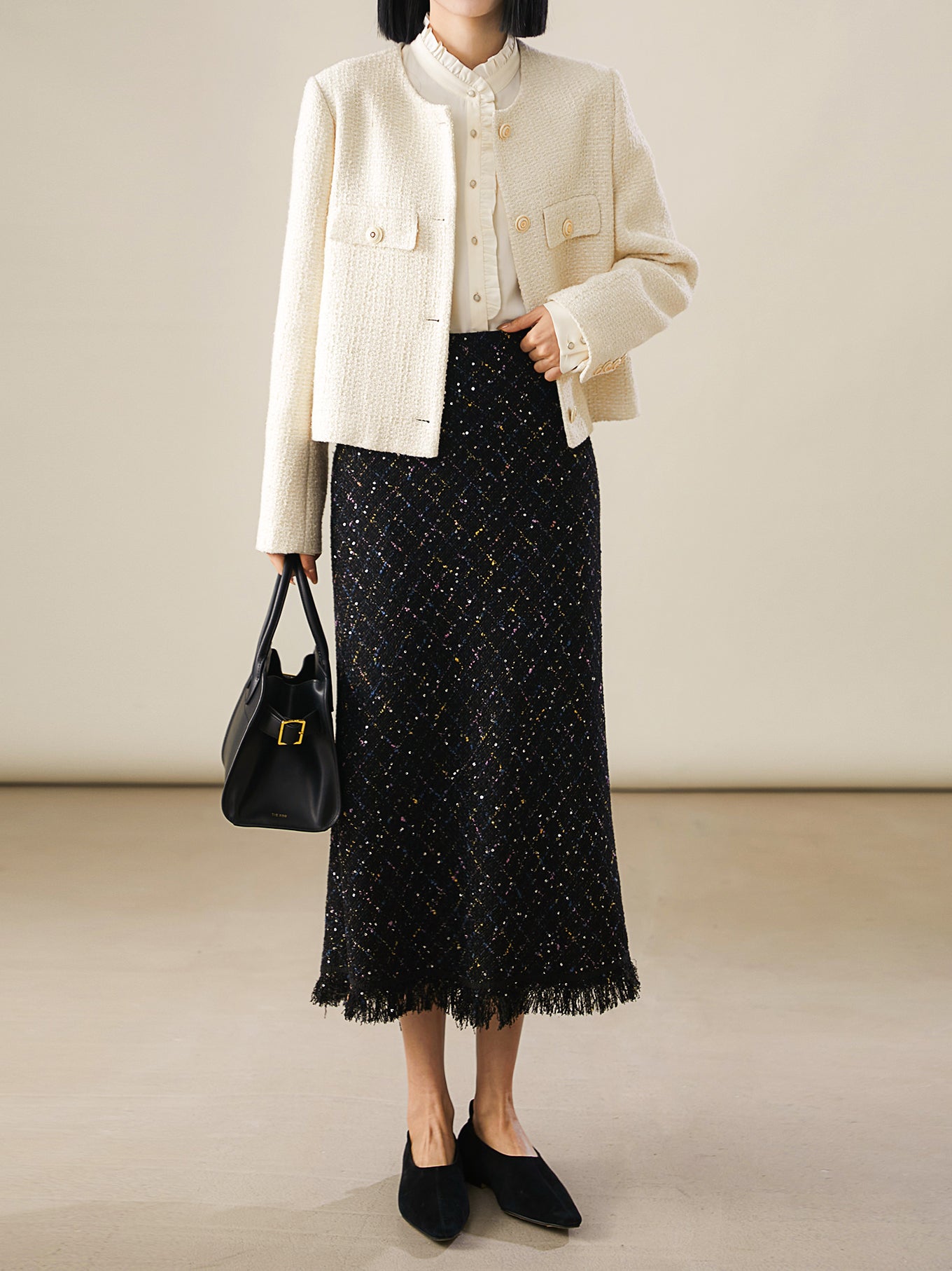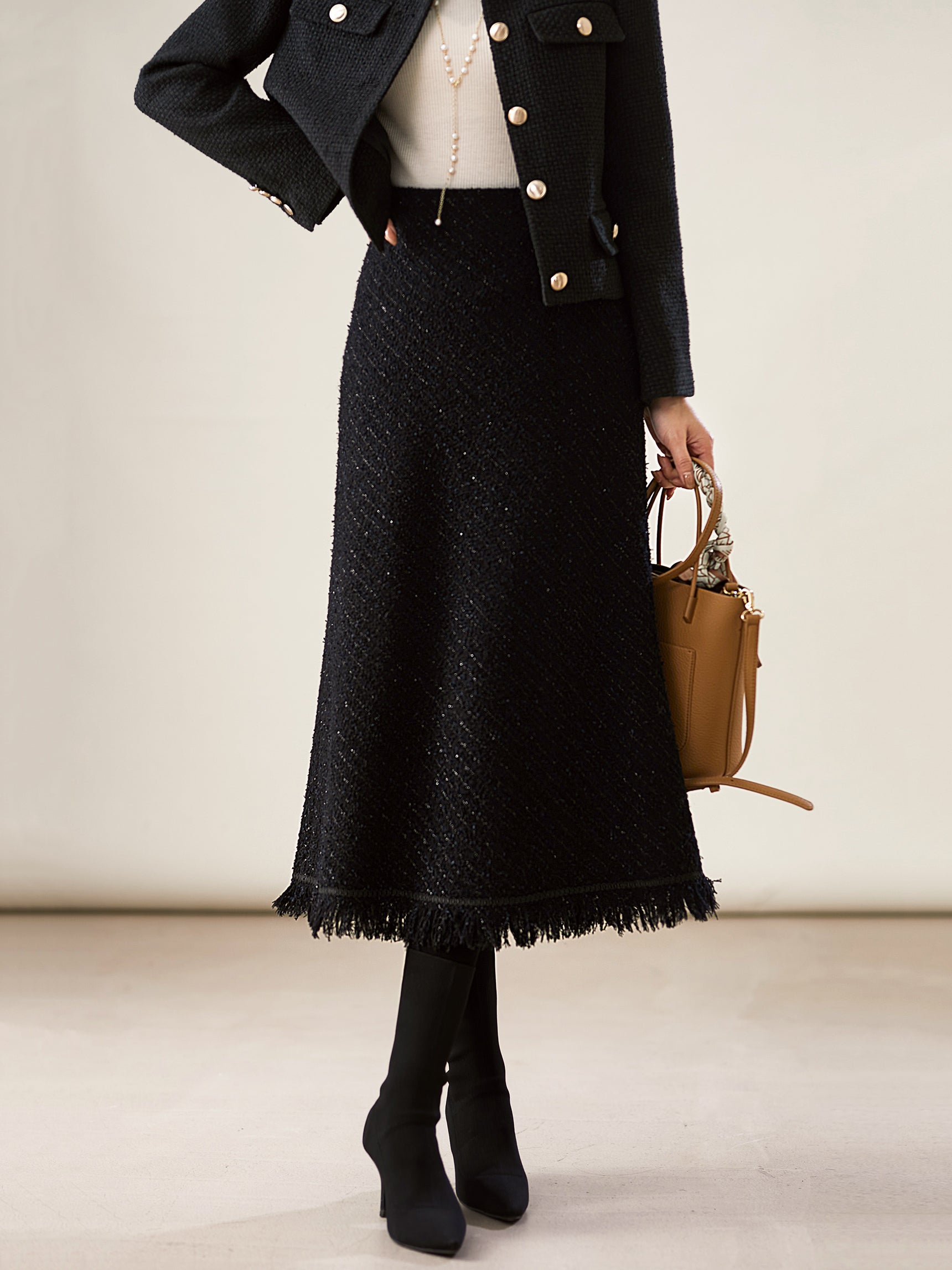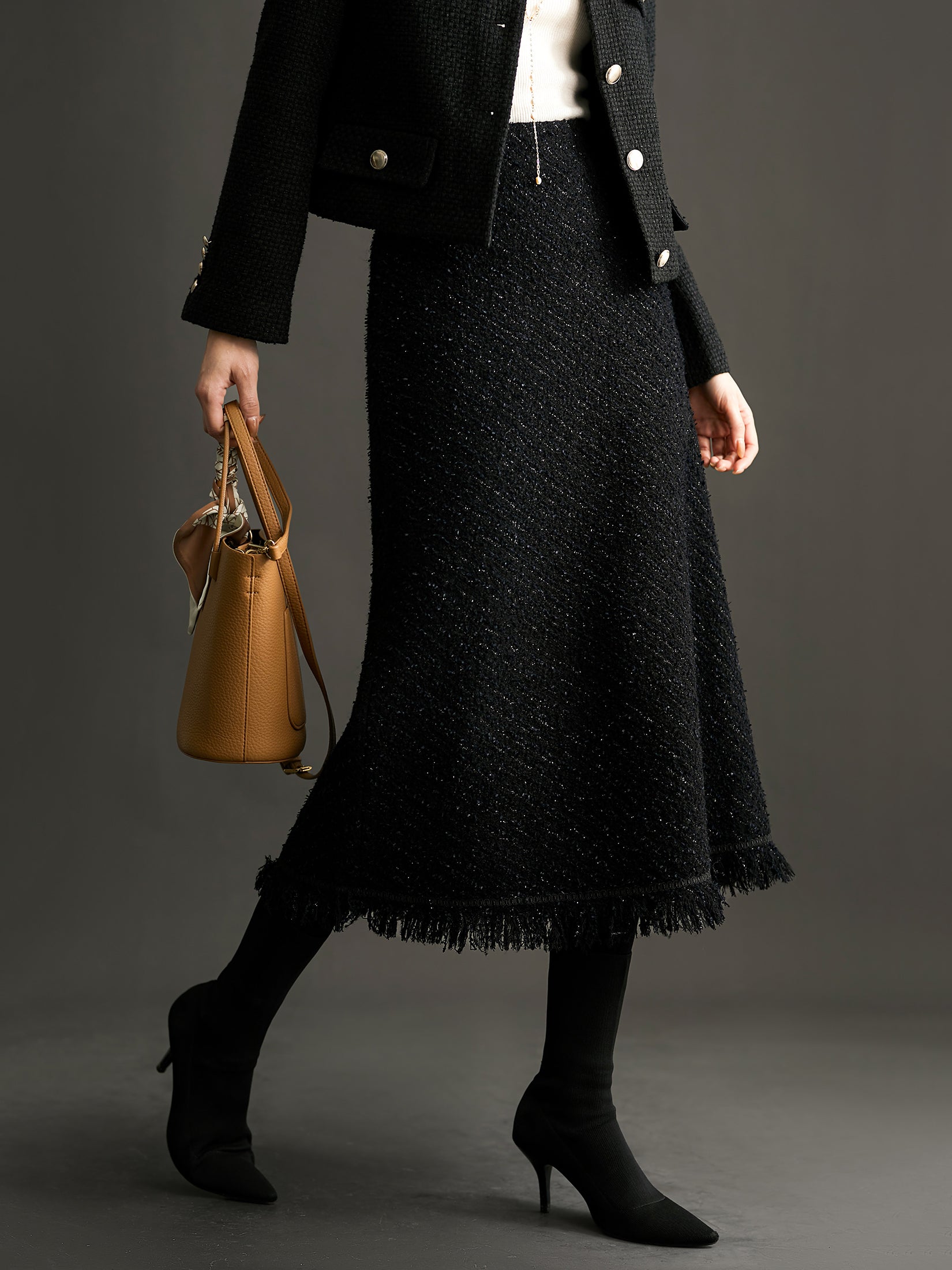 The luxurious tweed material makes it look great on its own, making it a statement skirt you'll want to wear on special occasions!