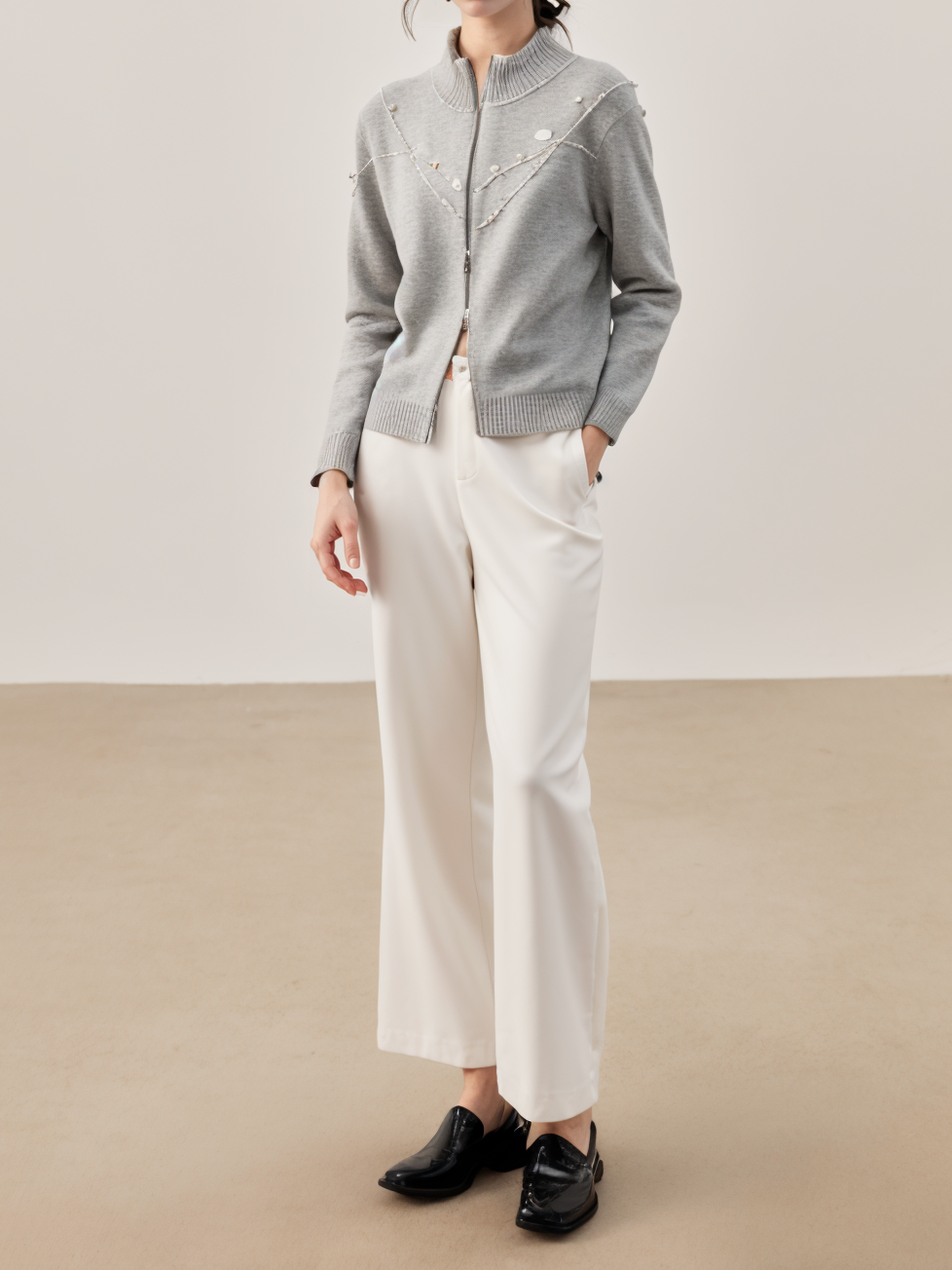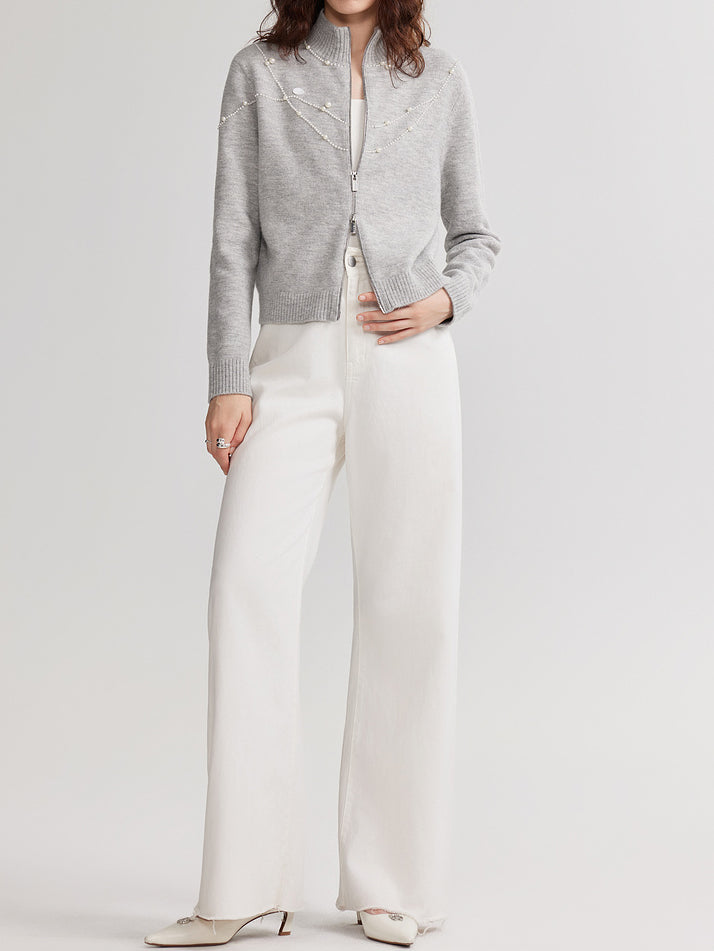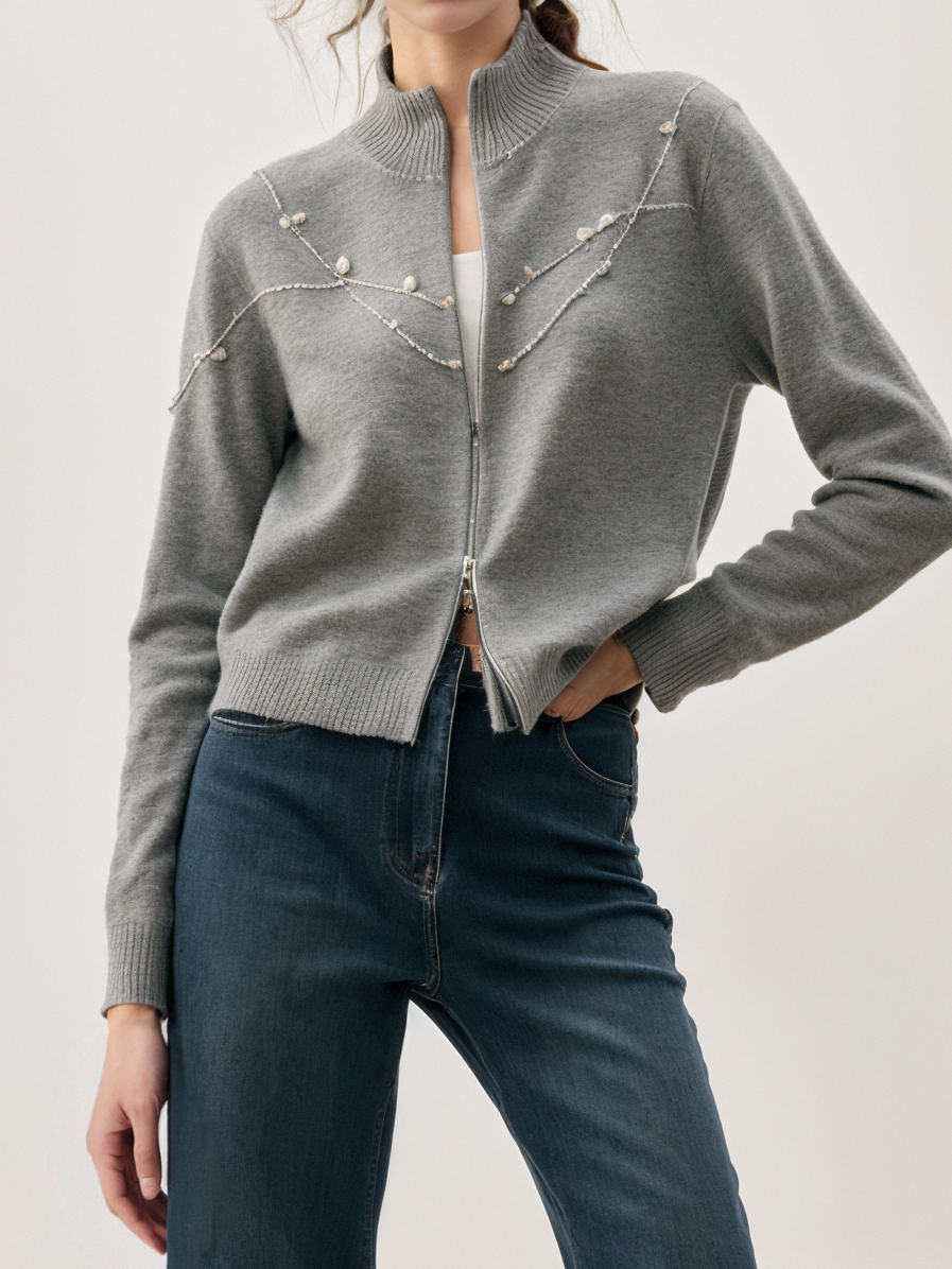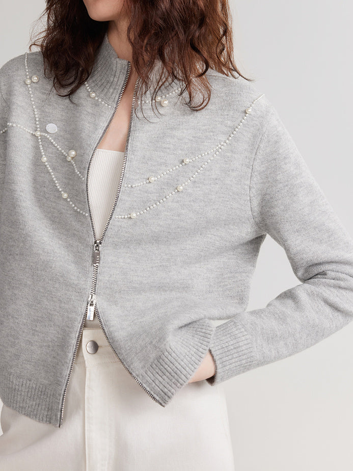 [ A gorgeous knit cardigan with pearls and jewels ]