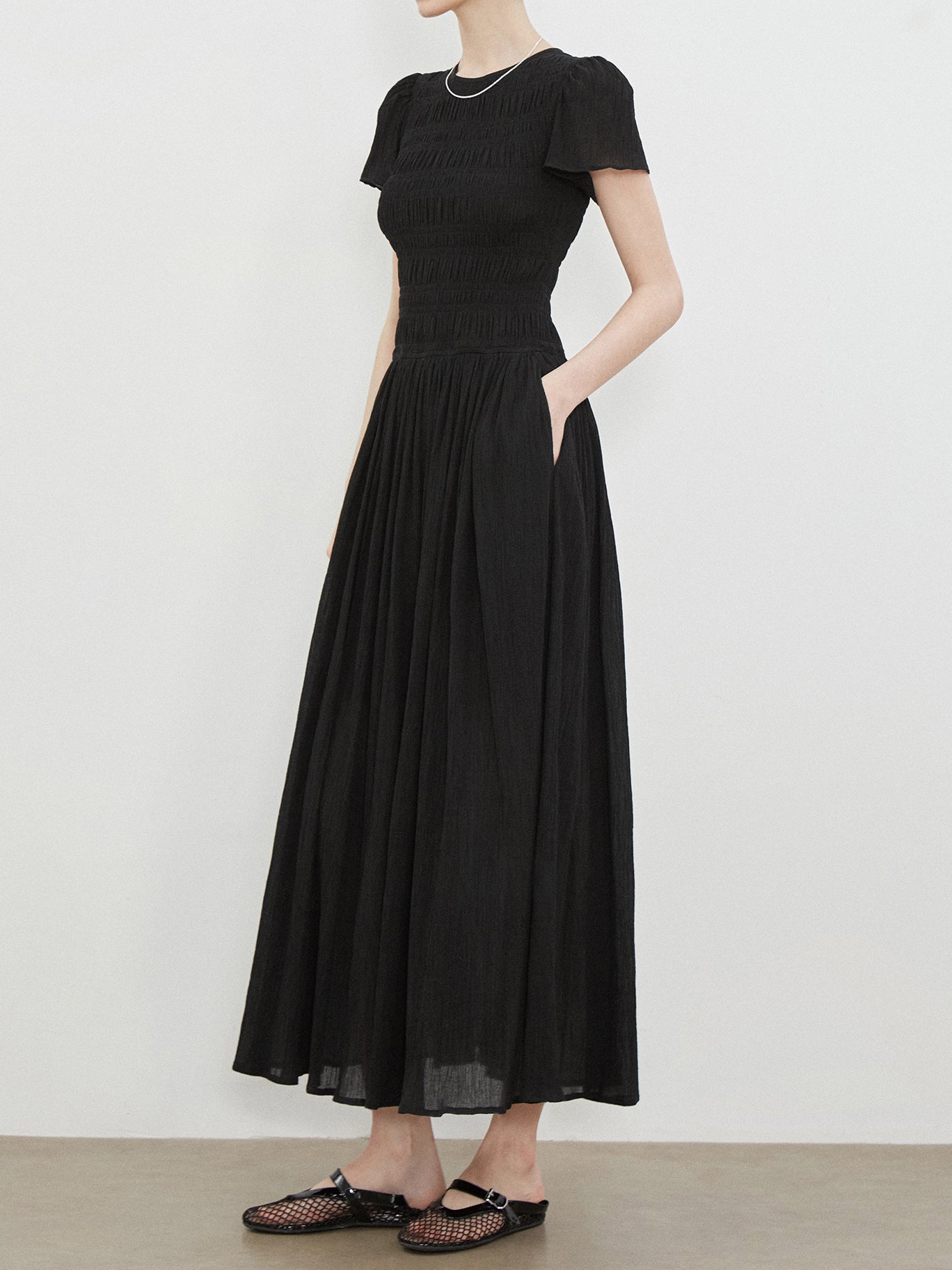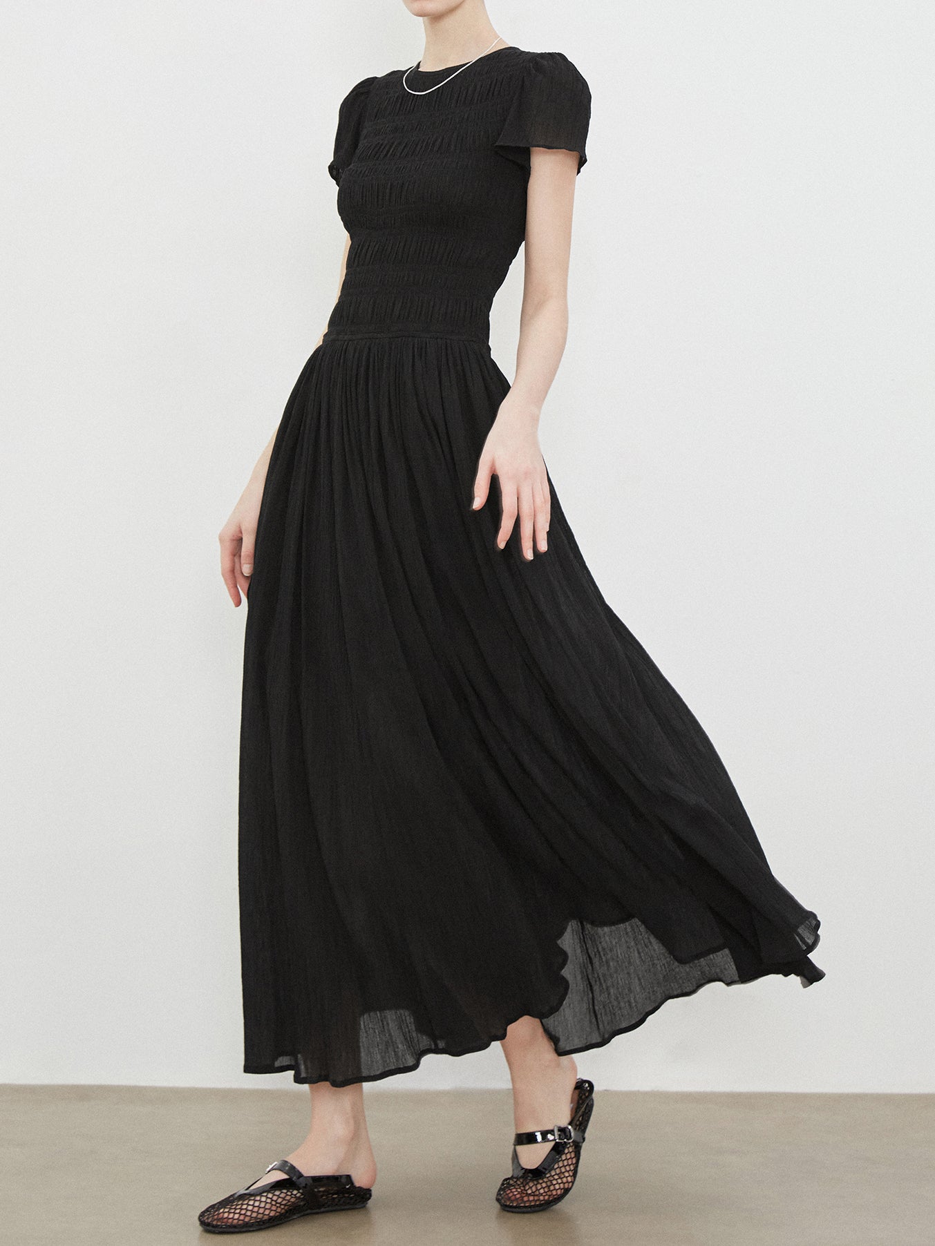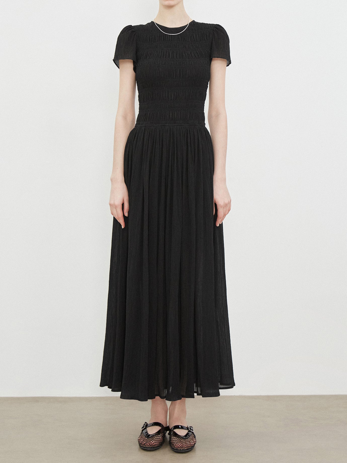 A dress with plenty of shirring on the body