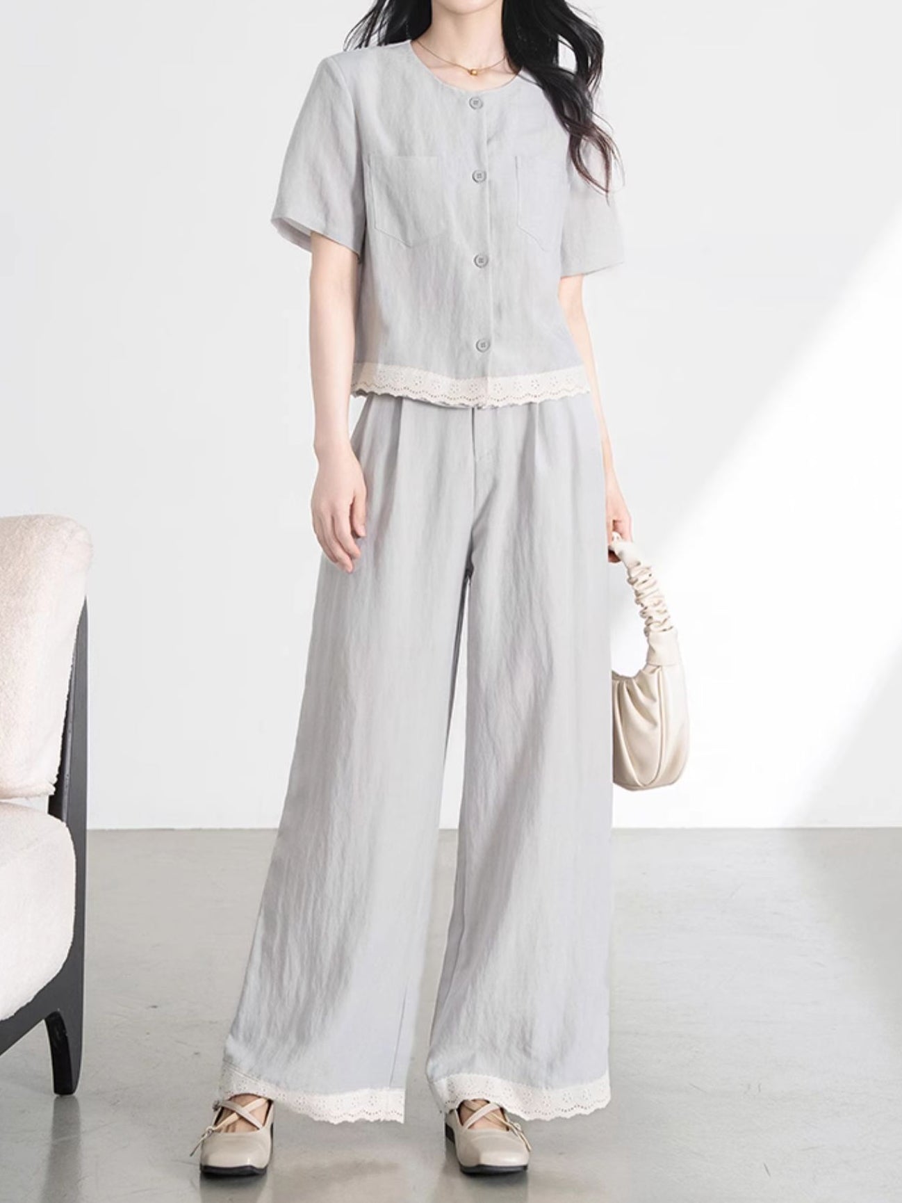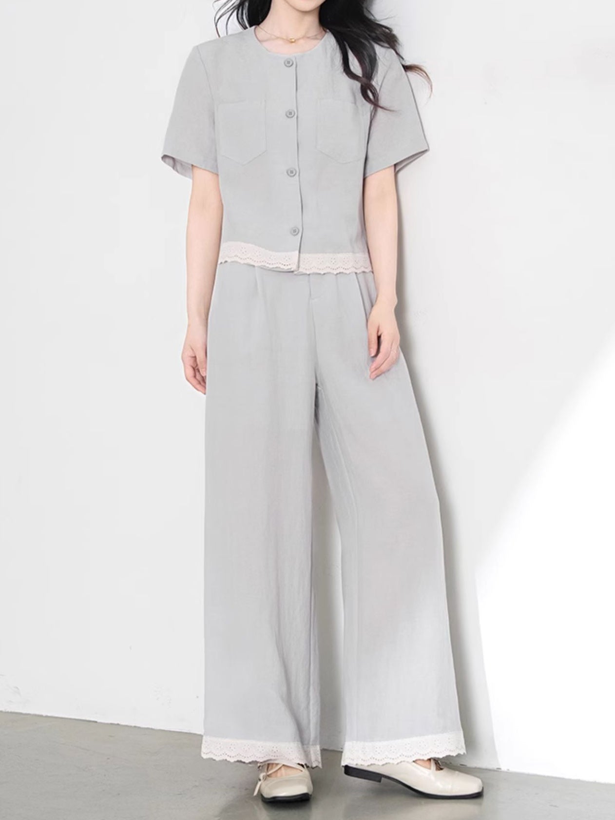 Asymmetrical Button Design Vest + Wide Pants Set (3 Colors)
