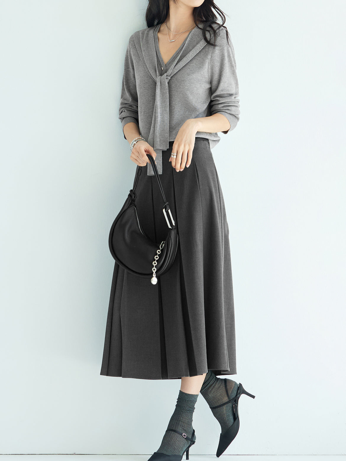 -It can be worn in a variety of ways, such as pairing it with a pleated skirt for a classic look or with pants for a work style.