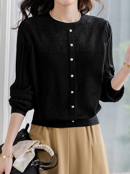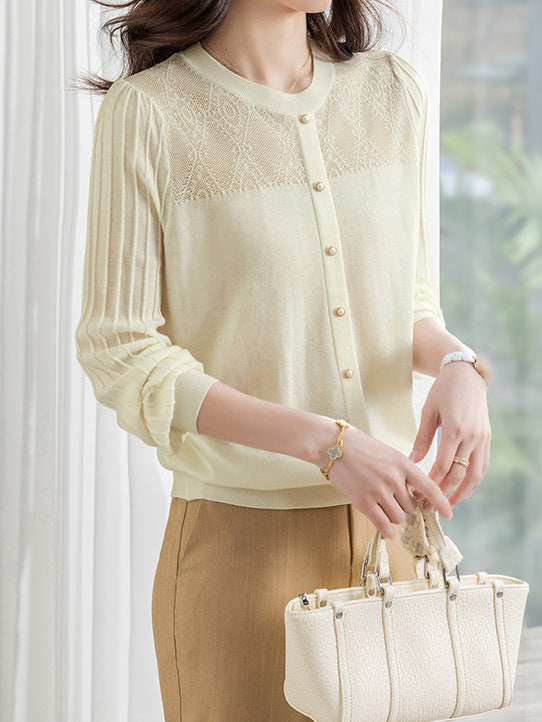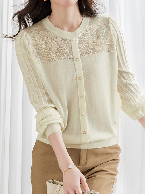 ☆The décolleté area is made of sheer knit fabric, giving it a light and elegant impression .